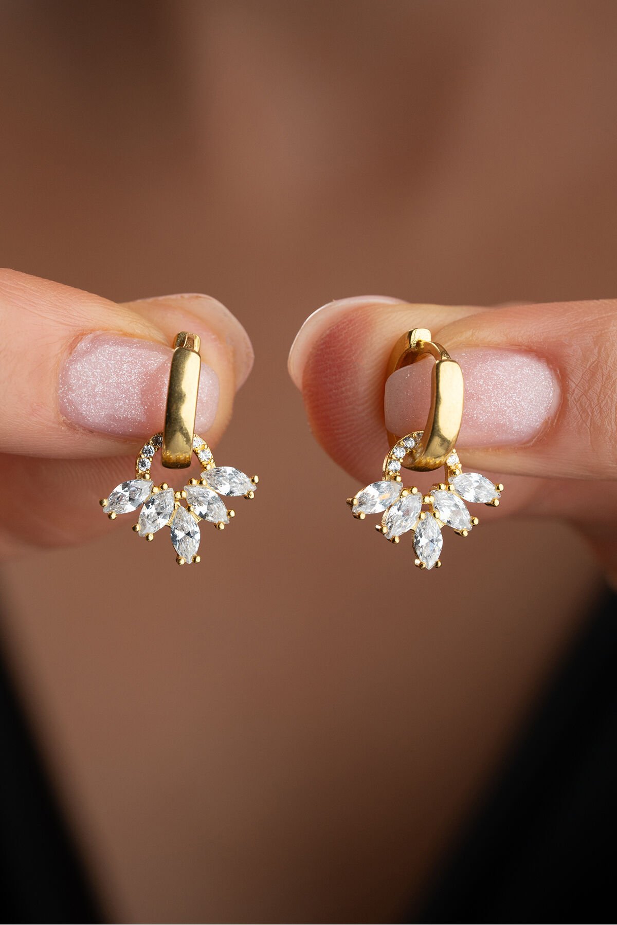 925 Ayar Gümüş Mekik Taşlı Çiçek Küpe