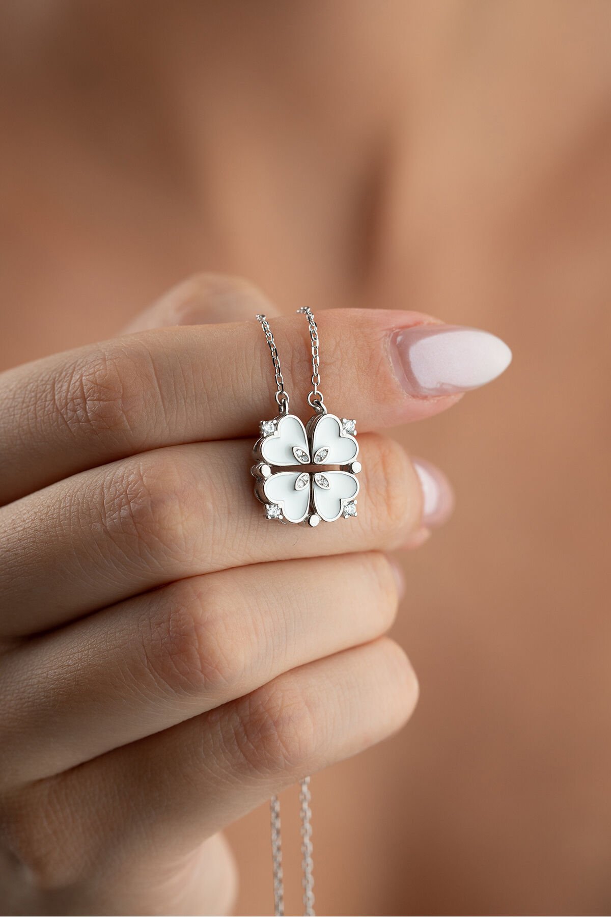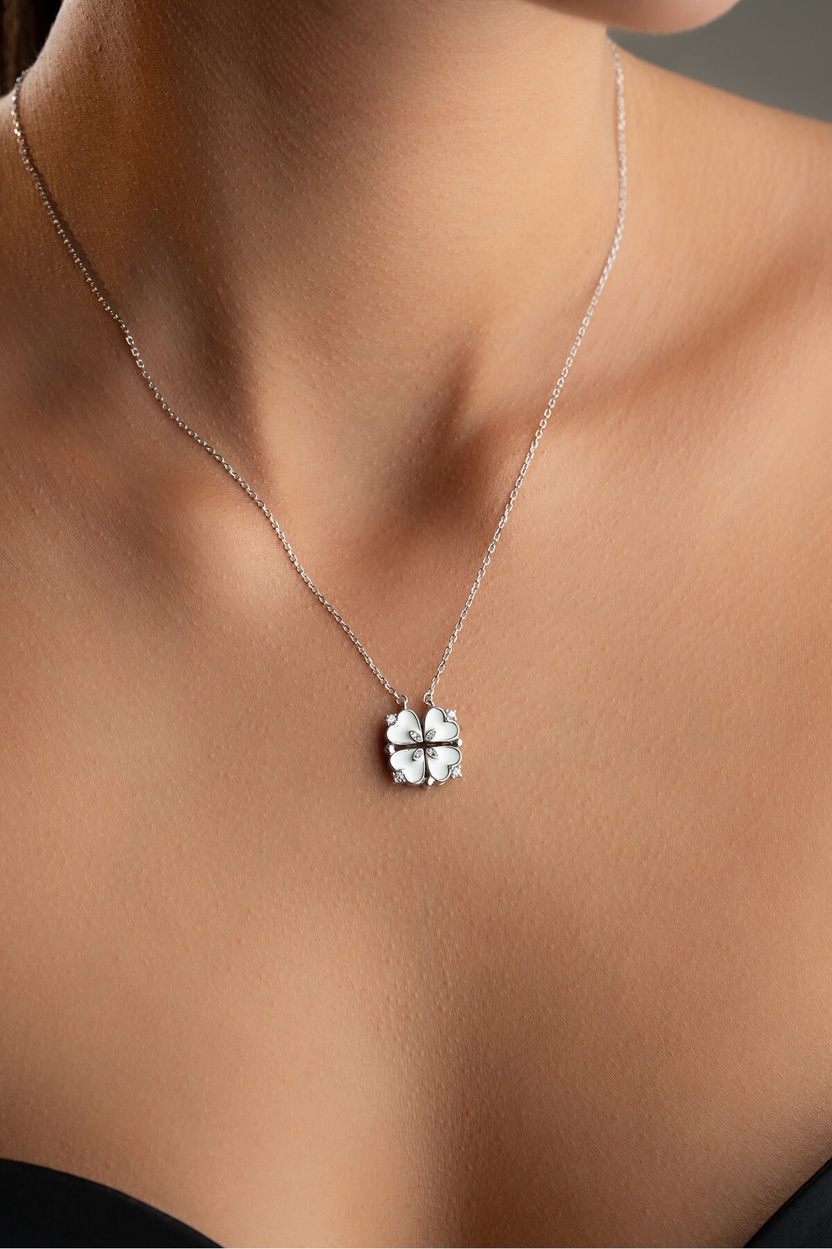 925 Ayar Gümüş Mıknatıslı Yonca Kolye