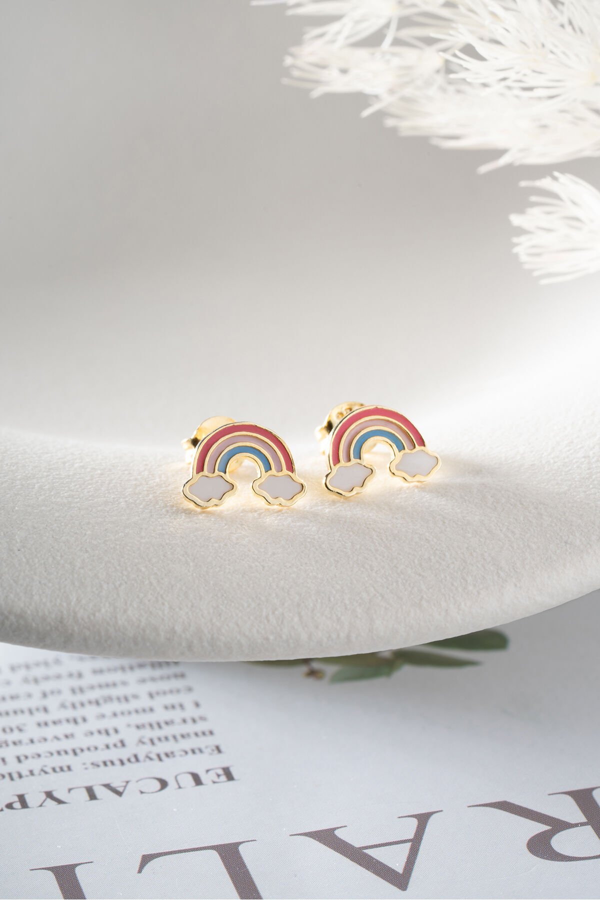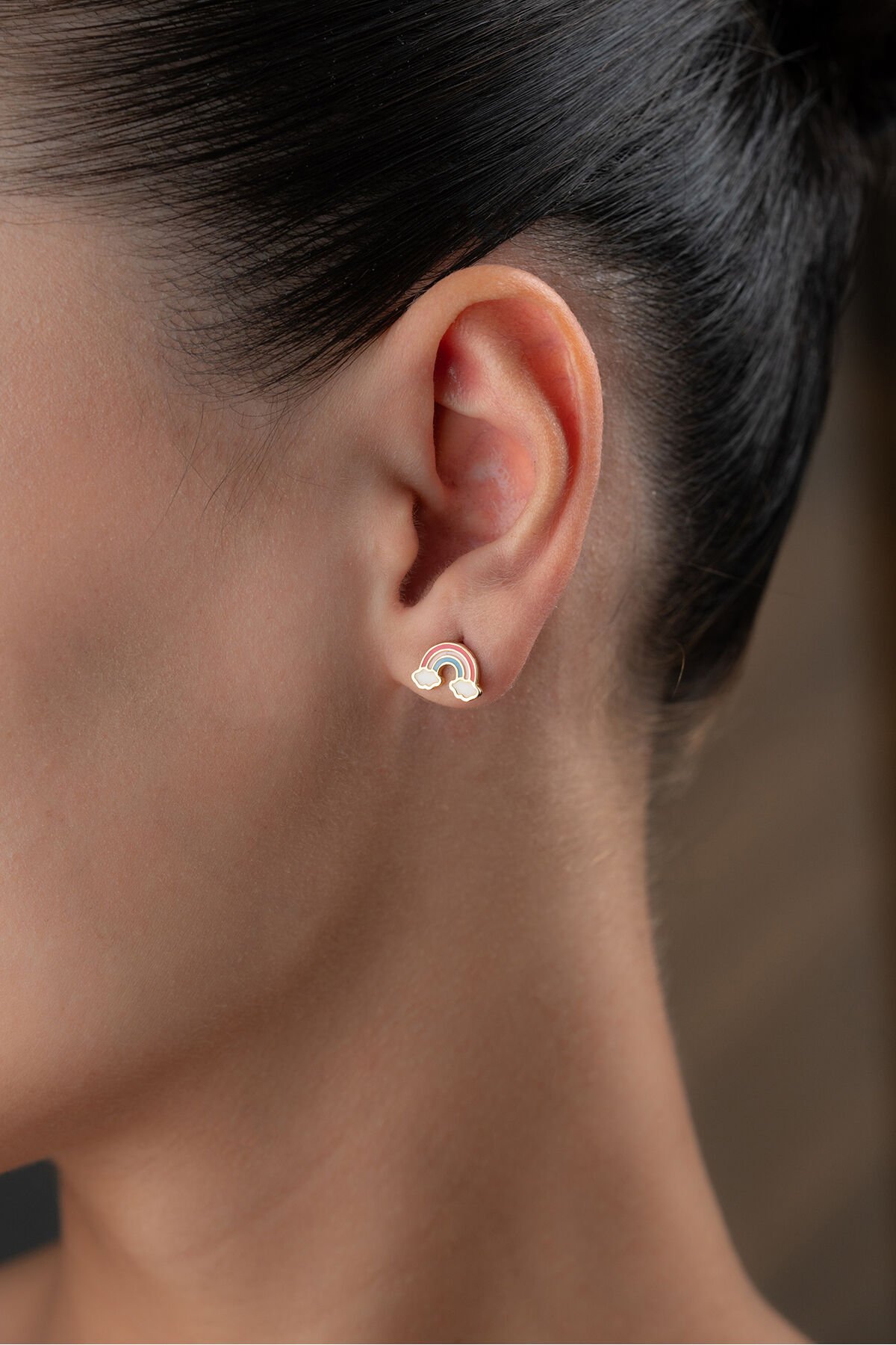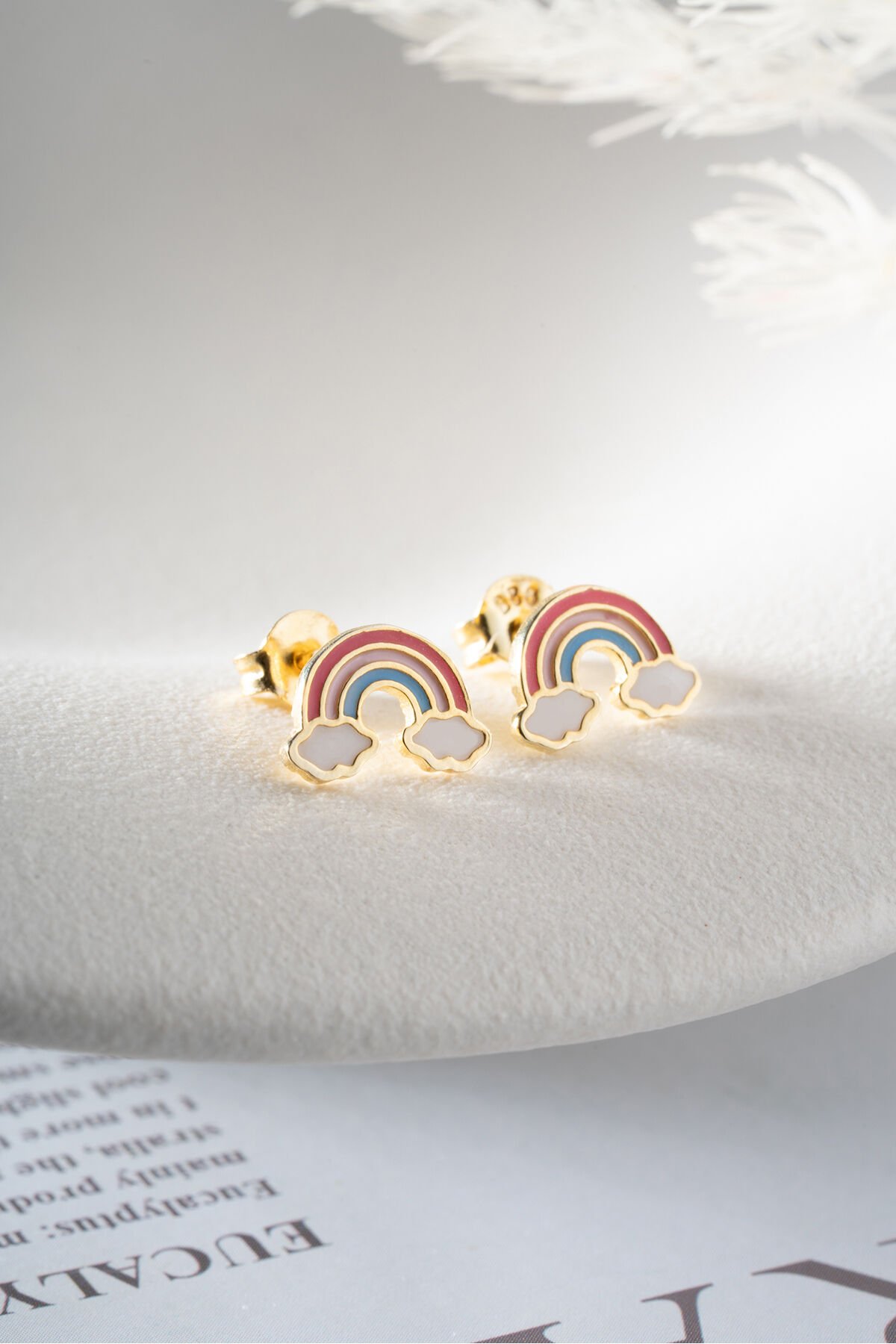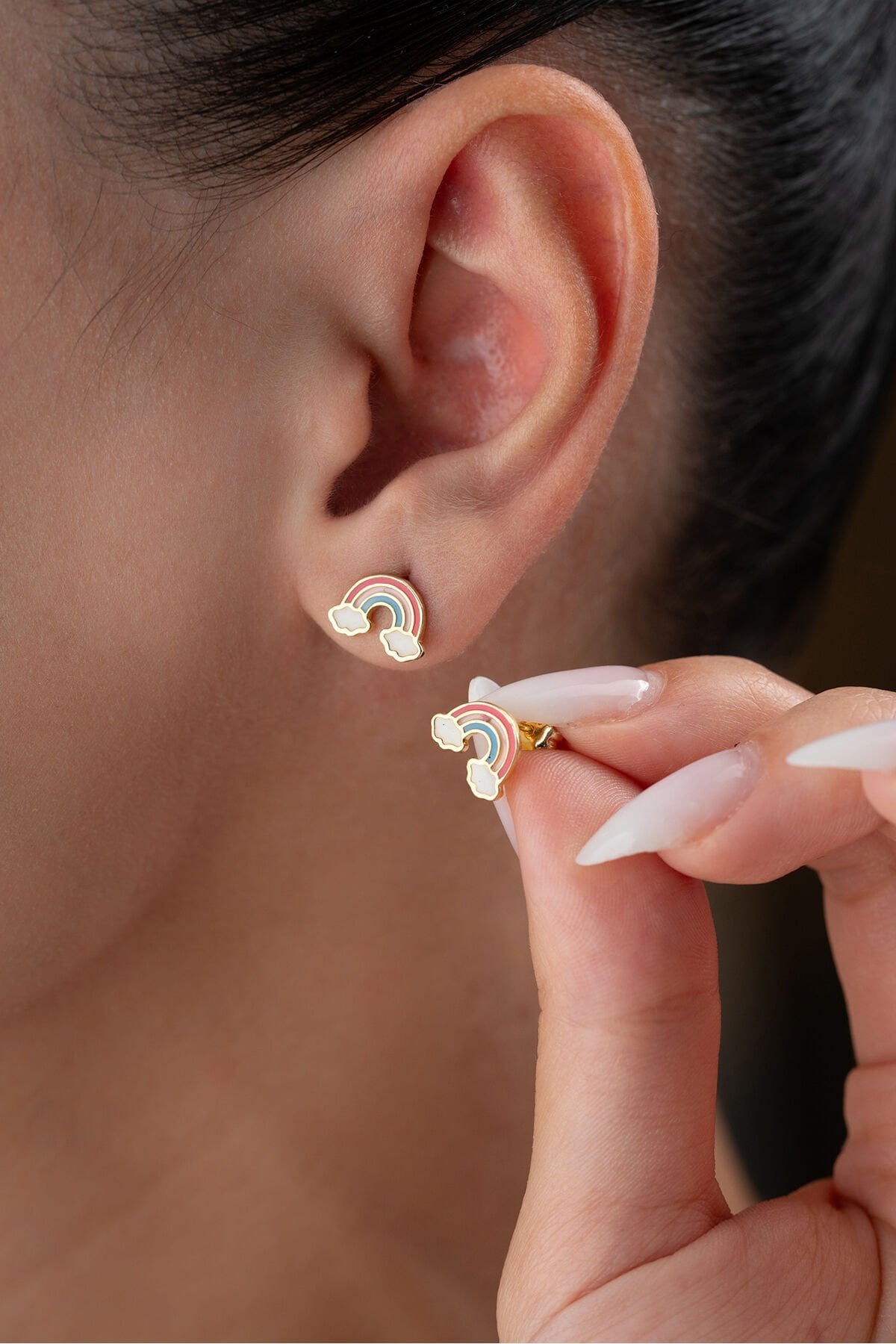 925 Ayar Gümüş Mineli Gökkuşağı Çivili Çocuk Küpe