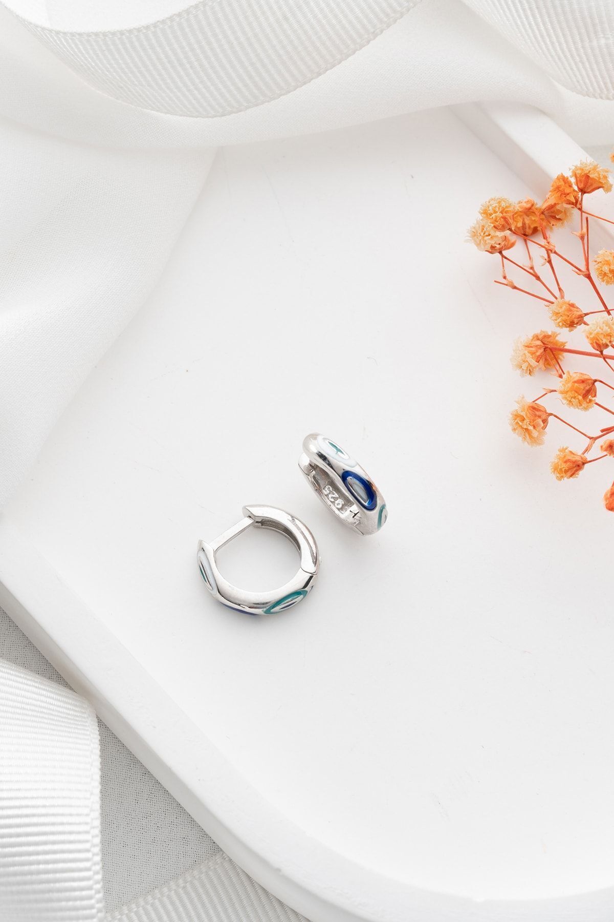 925 Ayar Gümüş Mineli Halka küpe