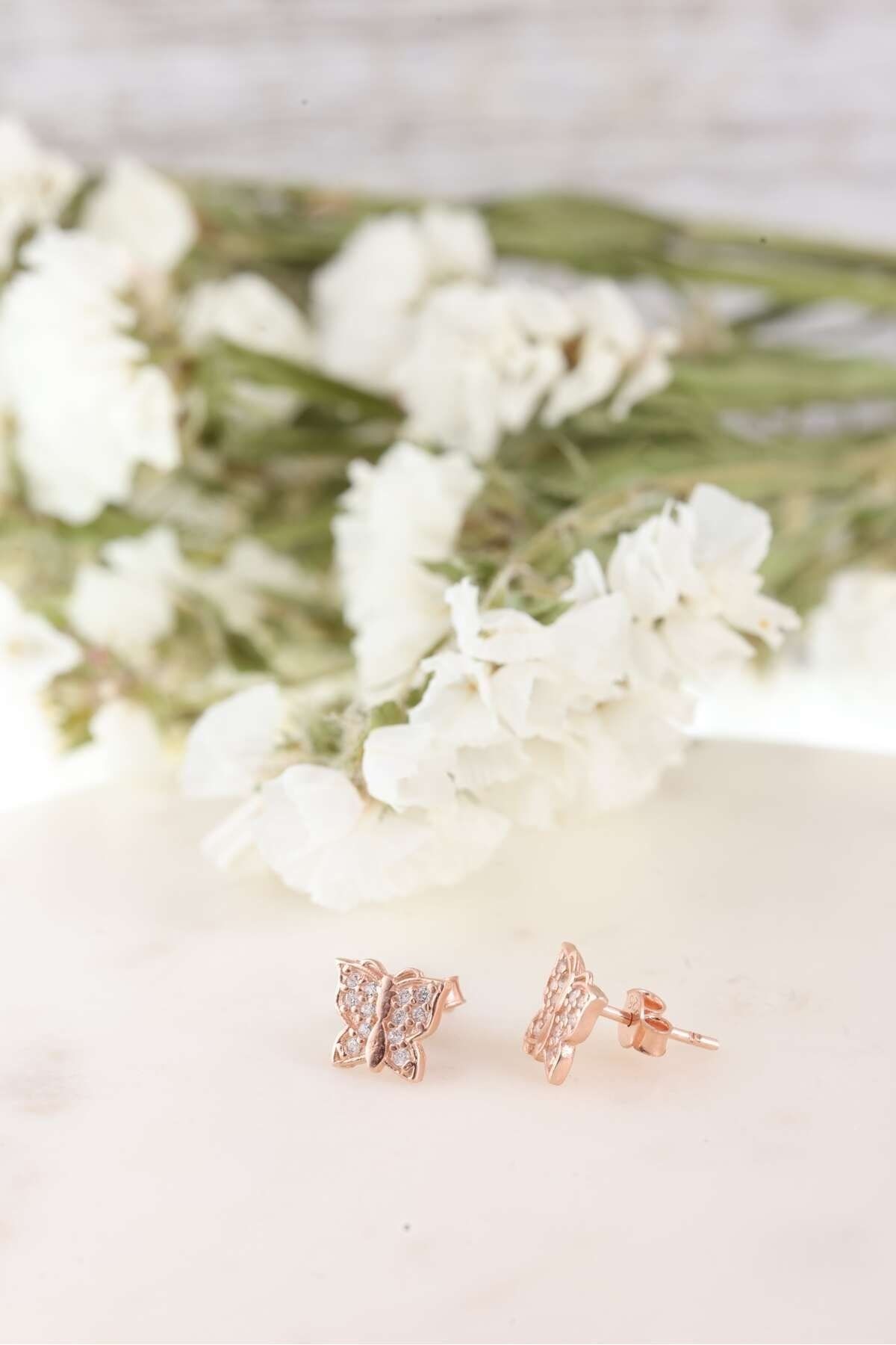 925 Ayar Gümüş Minik Zirkon Taşlı Kelebek Küpe