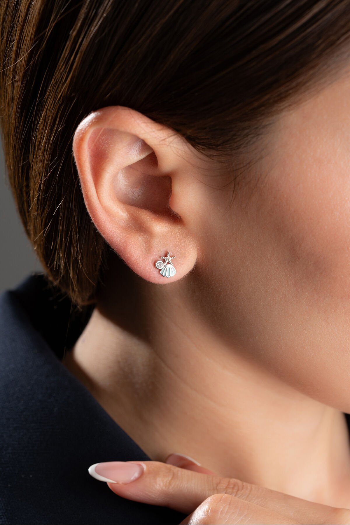 925 Ayar Gümüş Minimal Çivili Deniz Kabuğu Küpe
