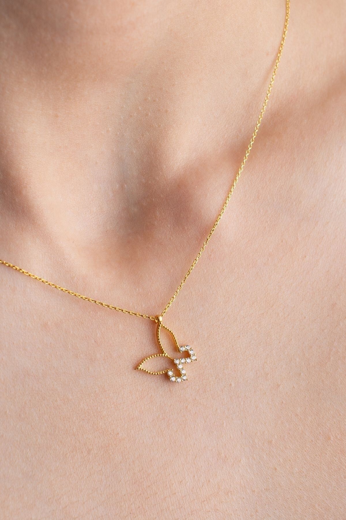 925 Ayar Gümüş Minimal Gold Kelebek Kolye