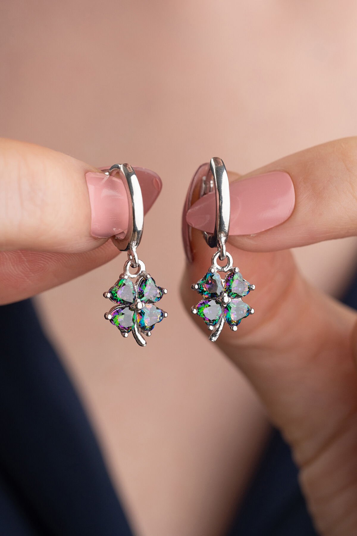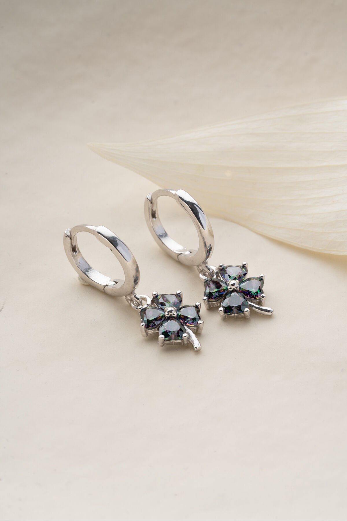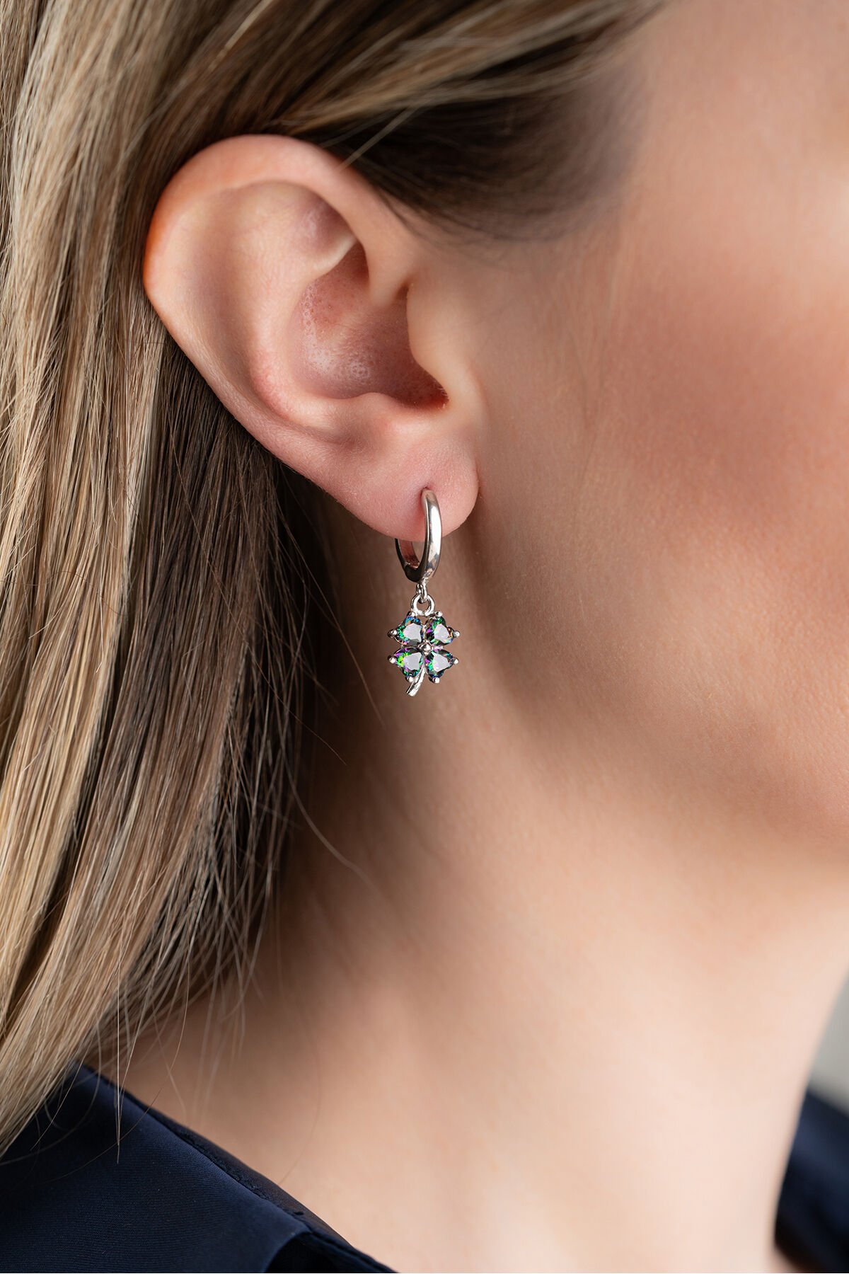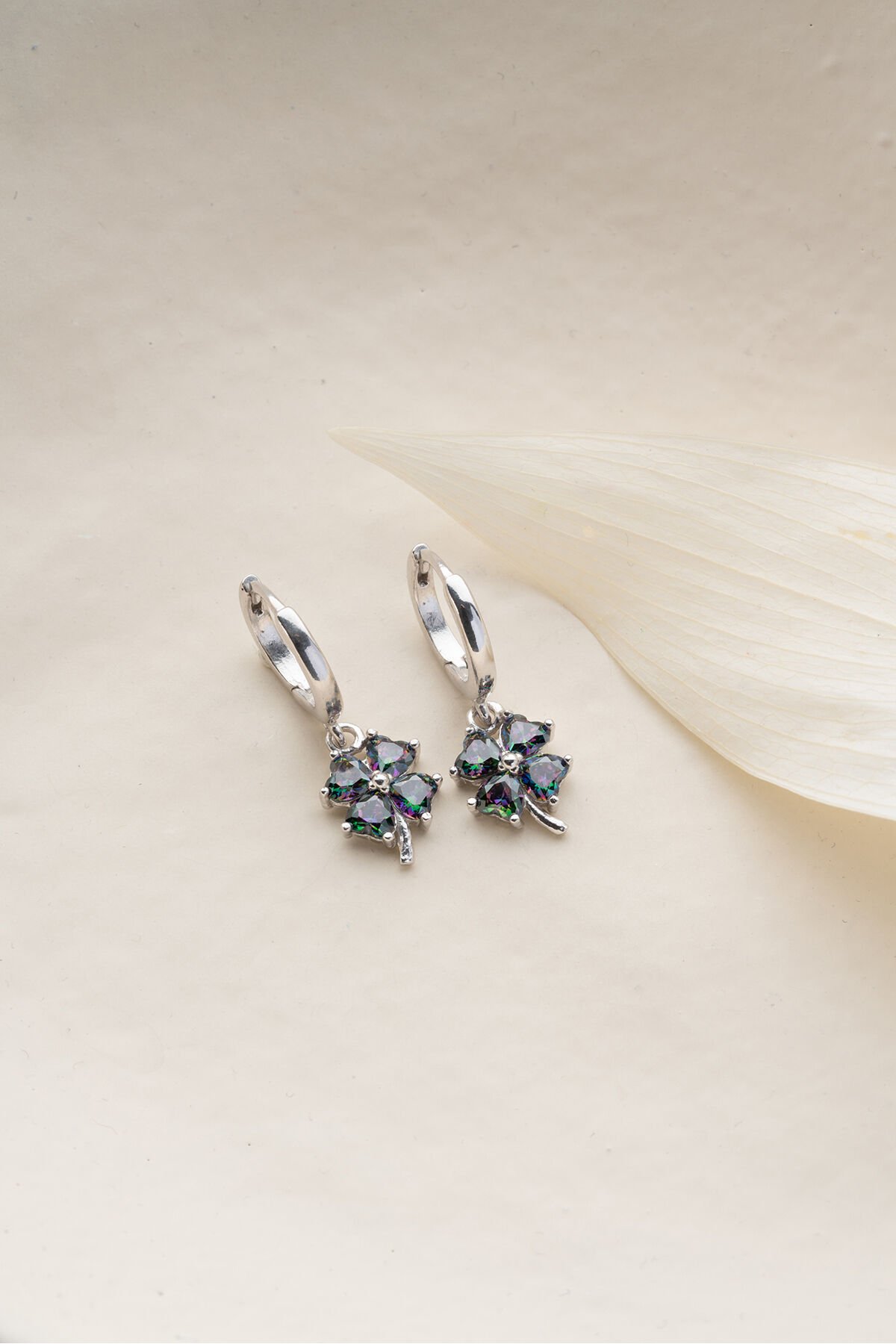 925 Ayar Gümüş Mistik topaz Yonca Küpe