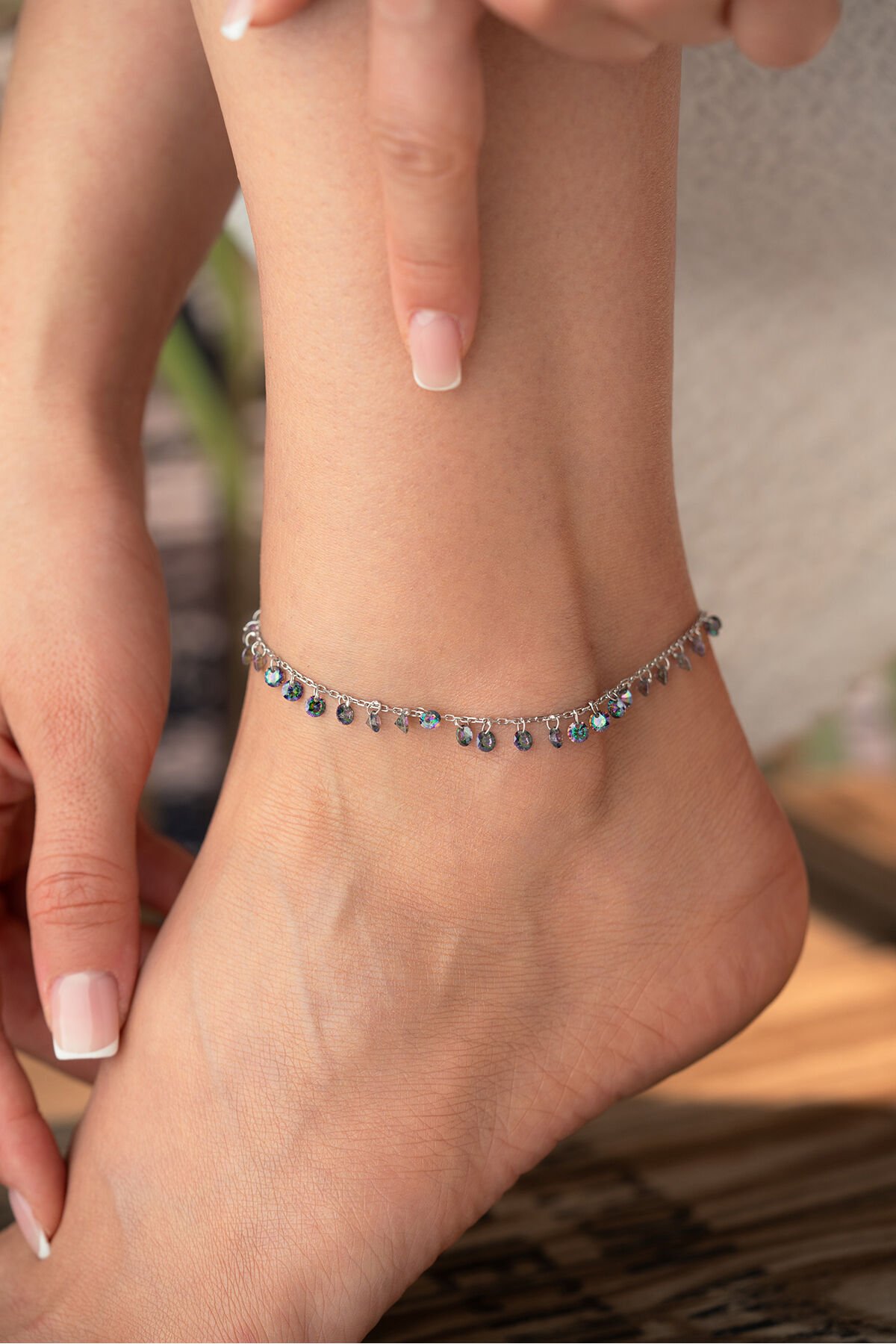 925 Ayar Gümüş Mistiktopaz Taşlı Salaş Halhal