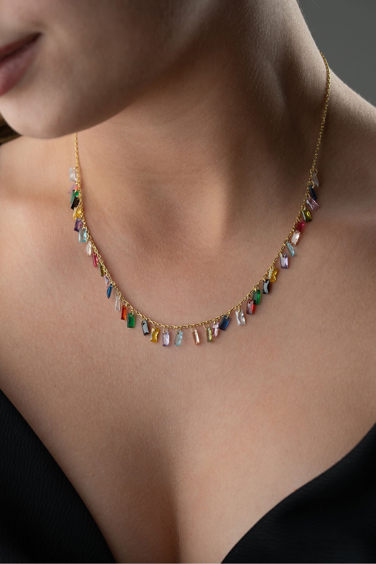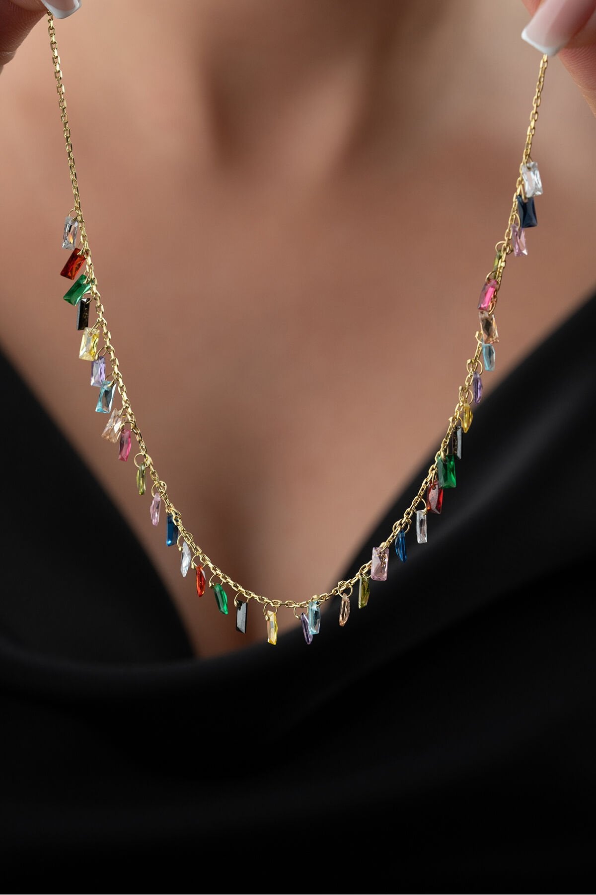 925 Ayar Gümüş Mix Baget Taşlı Kolye