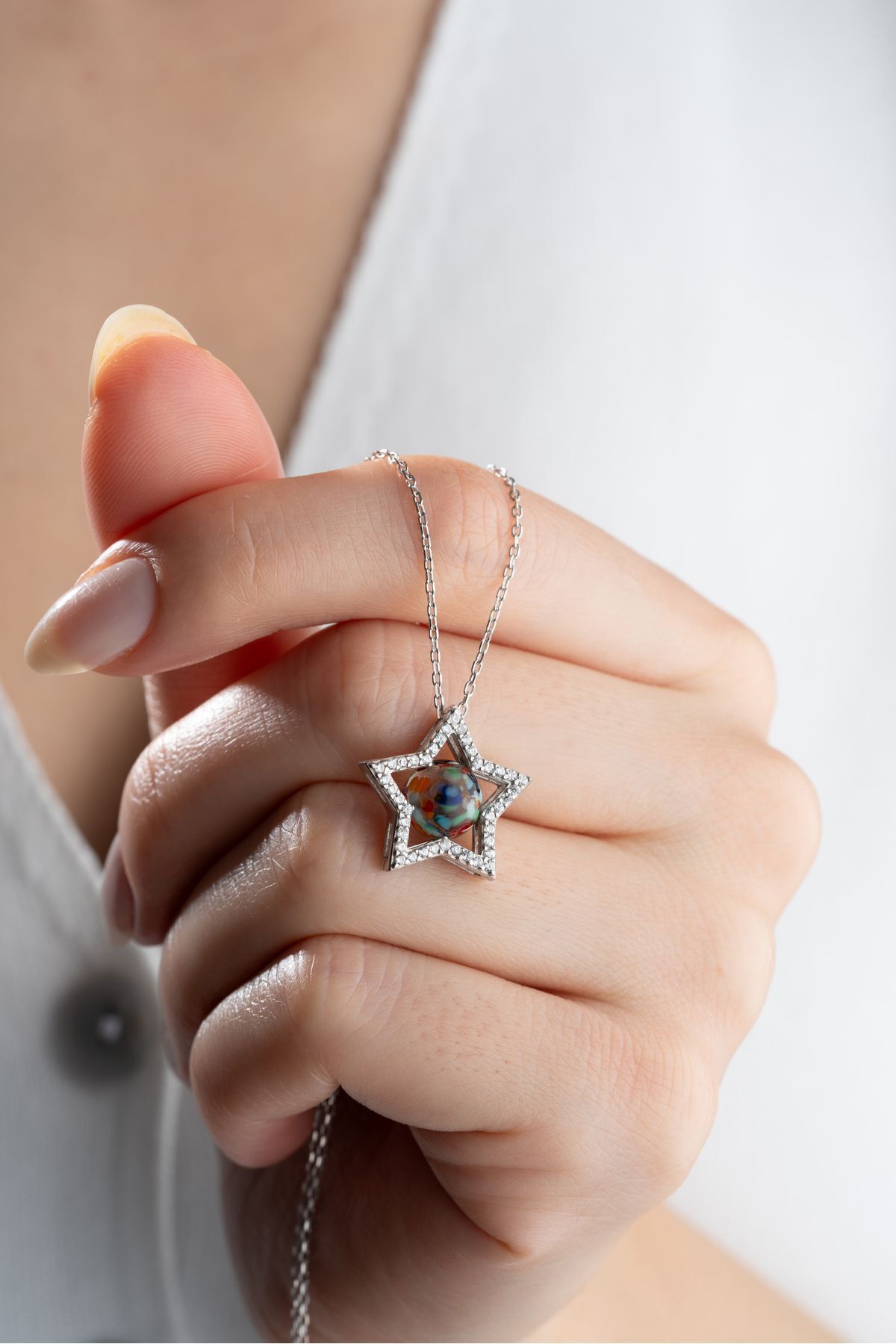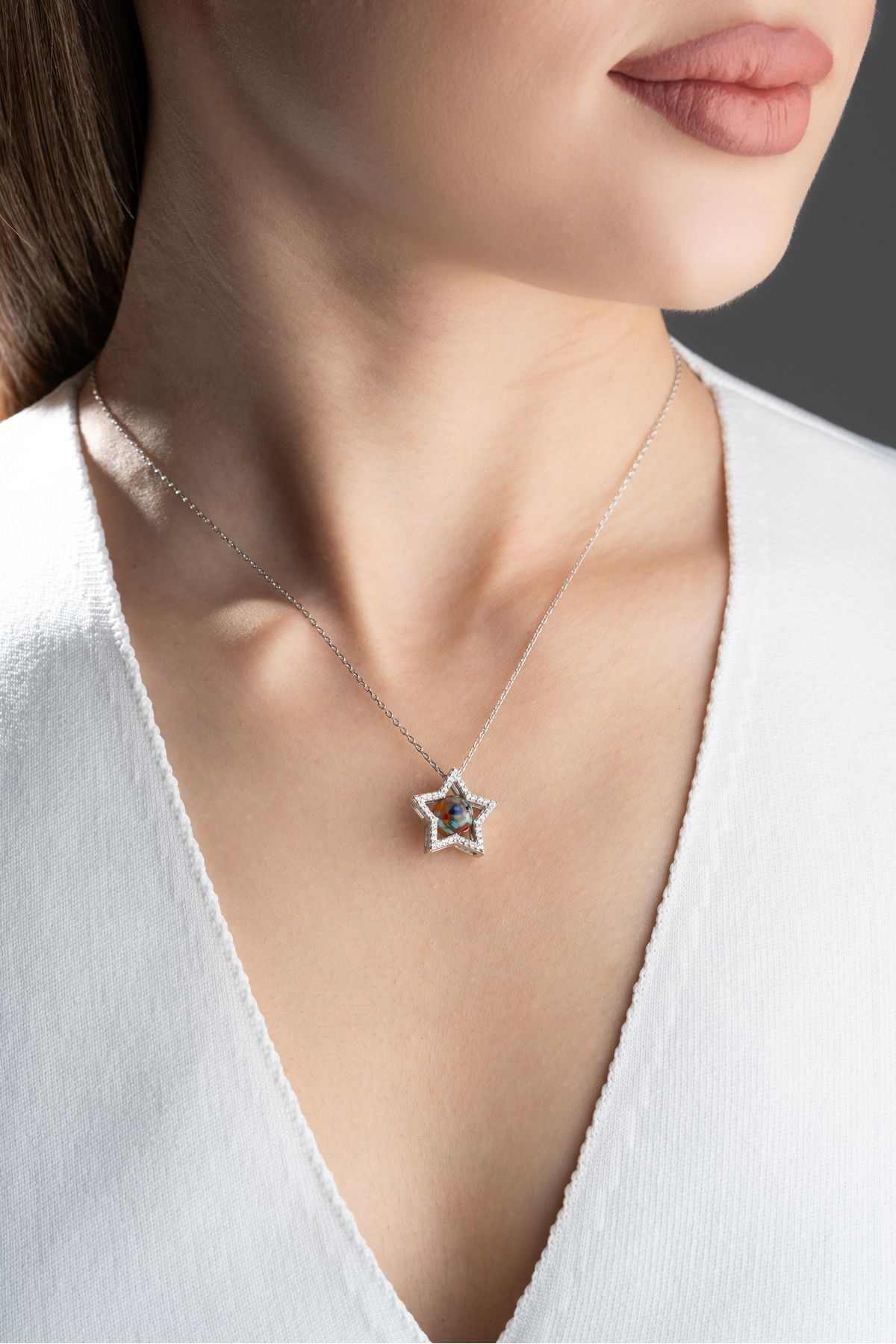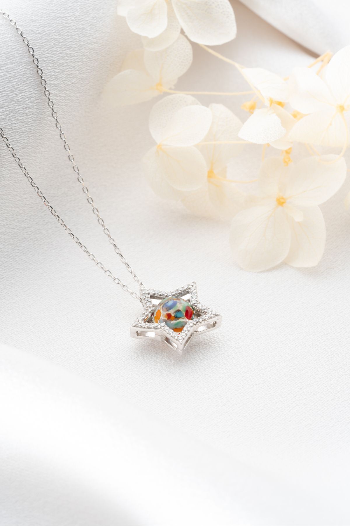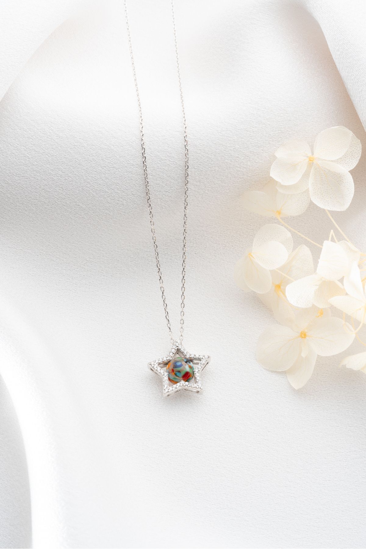 925 Ayar Gümüş Mix Taşlı Yıldız Kolye