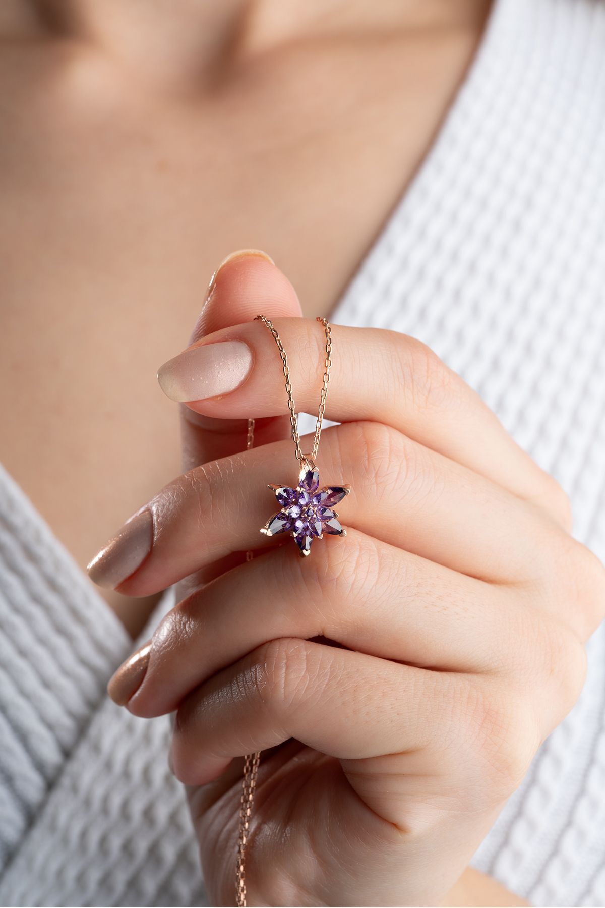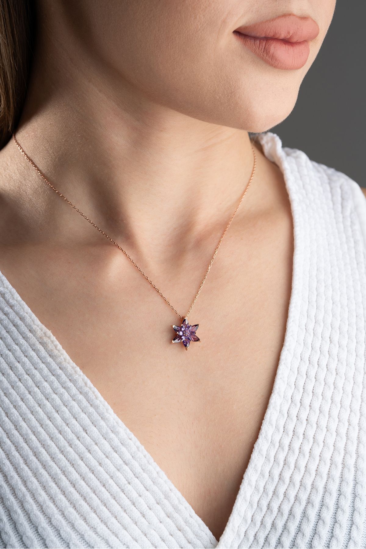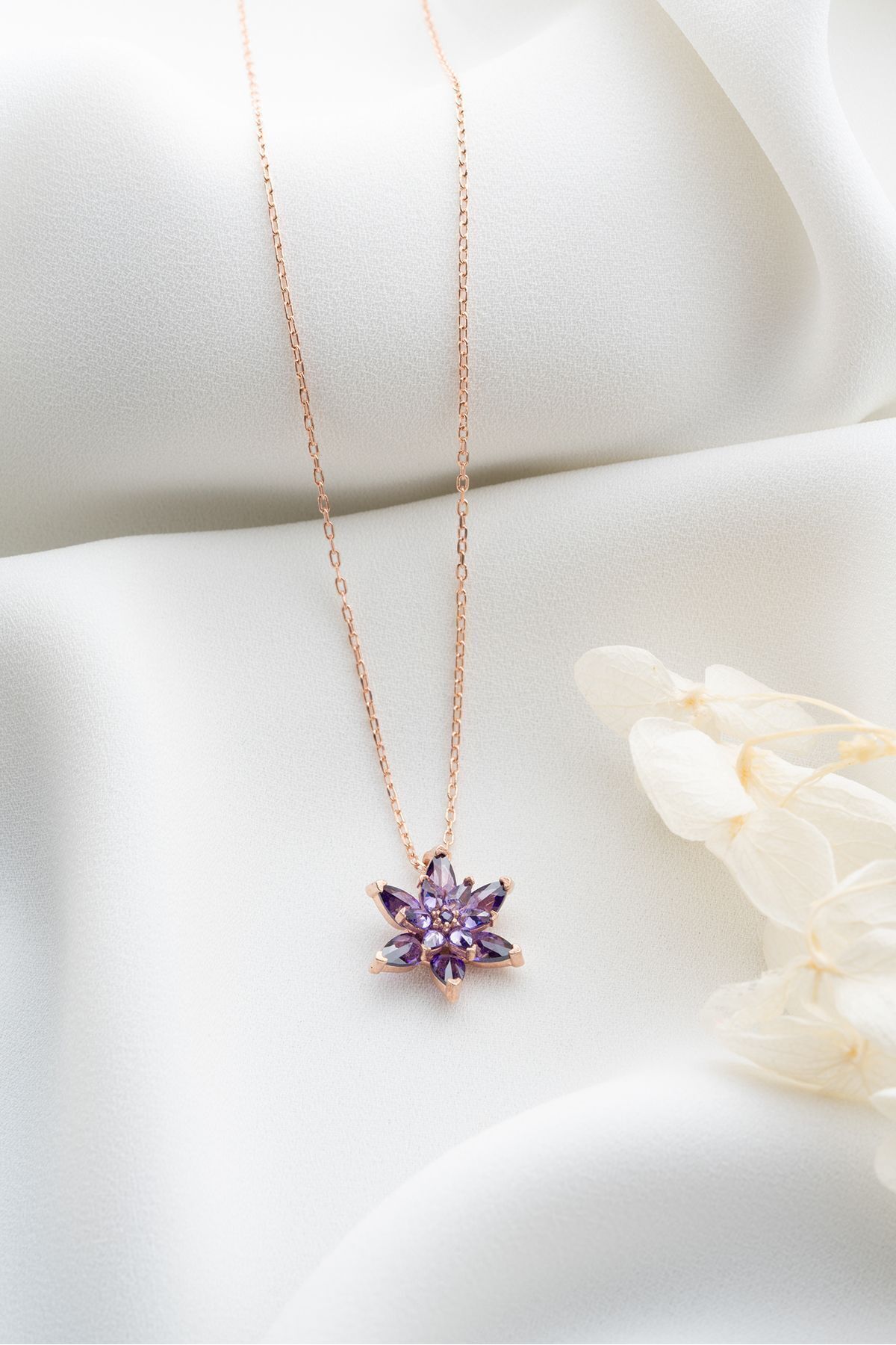 925 Ayar Gümüş Mor Lotus Çiçeği Kolye