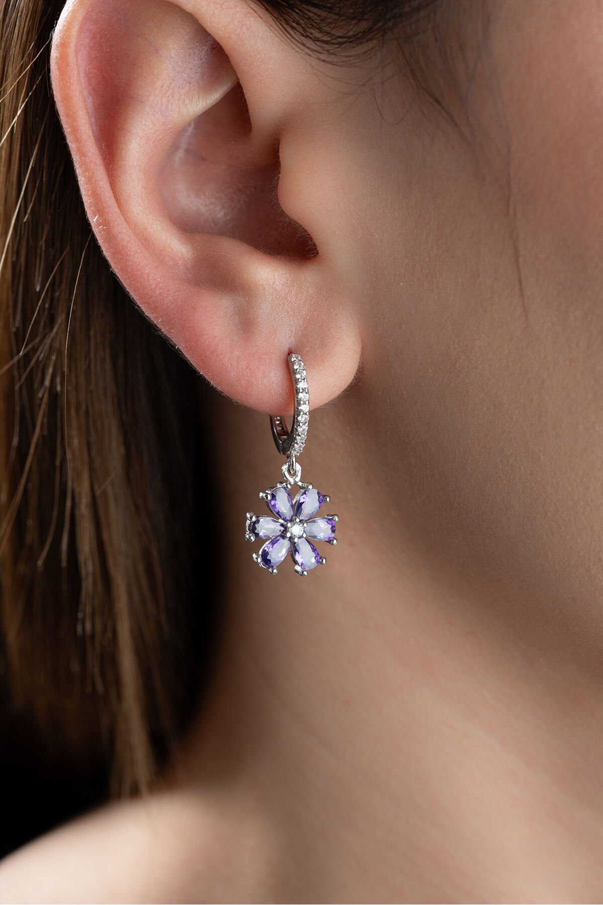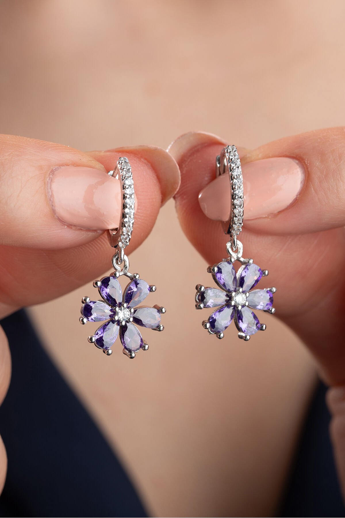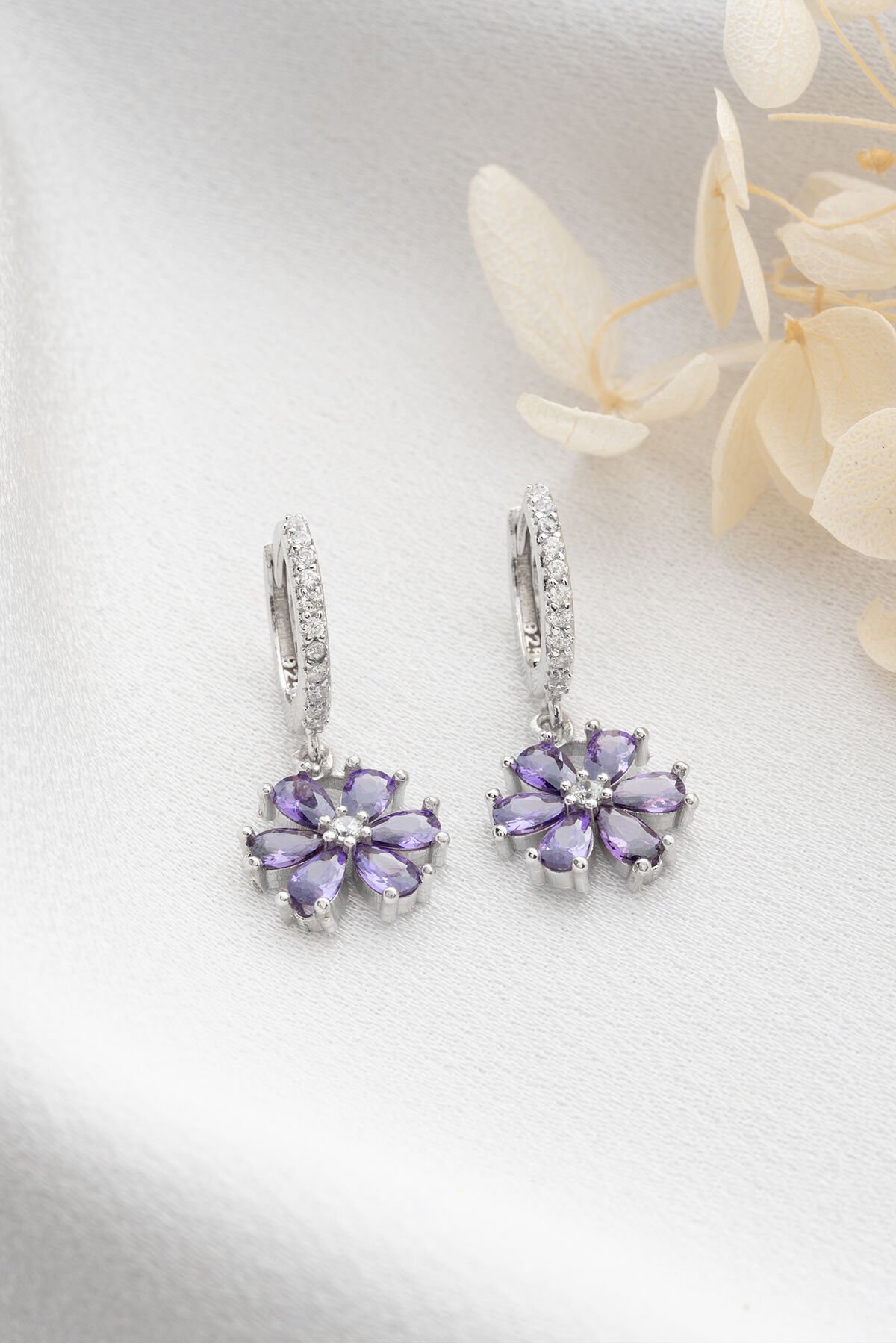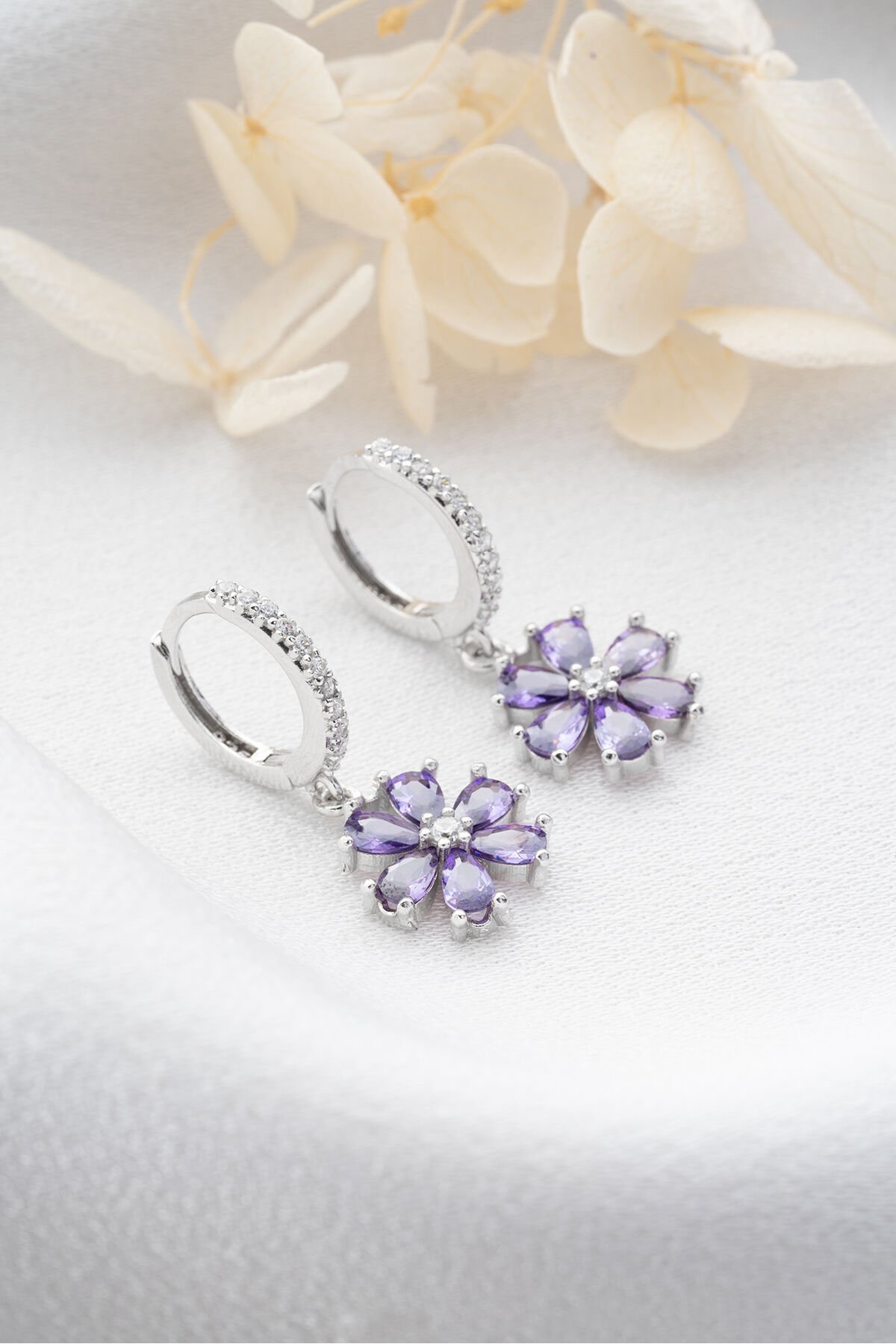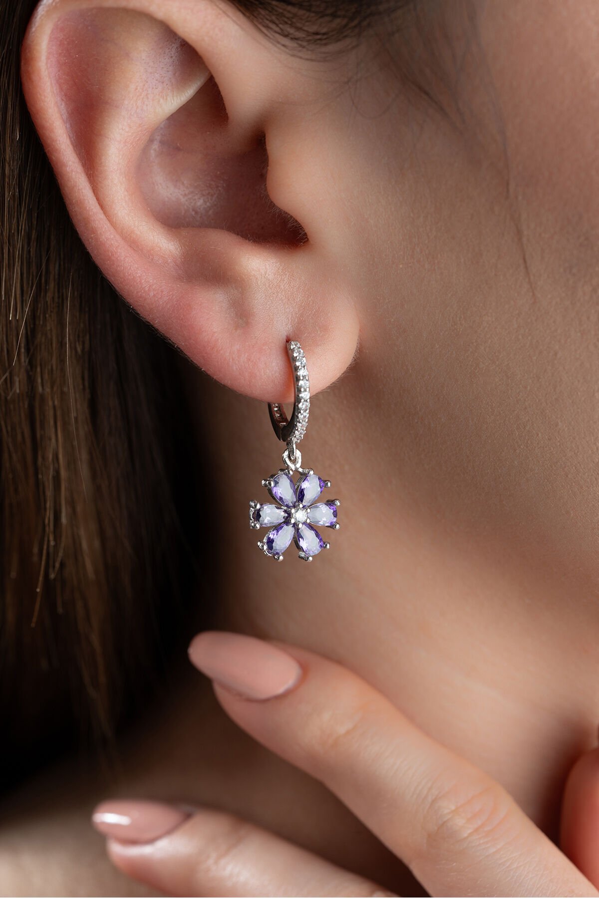 925 Ayar Gümüş Mor Lotus Çiçeği Küpe