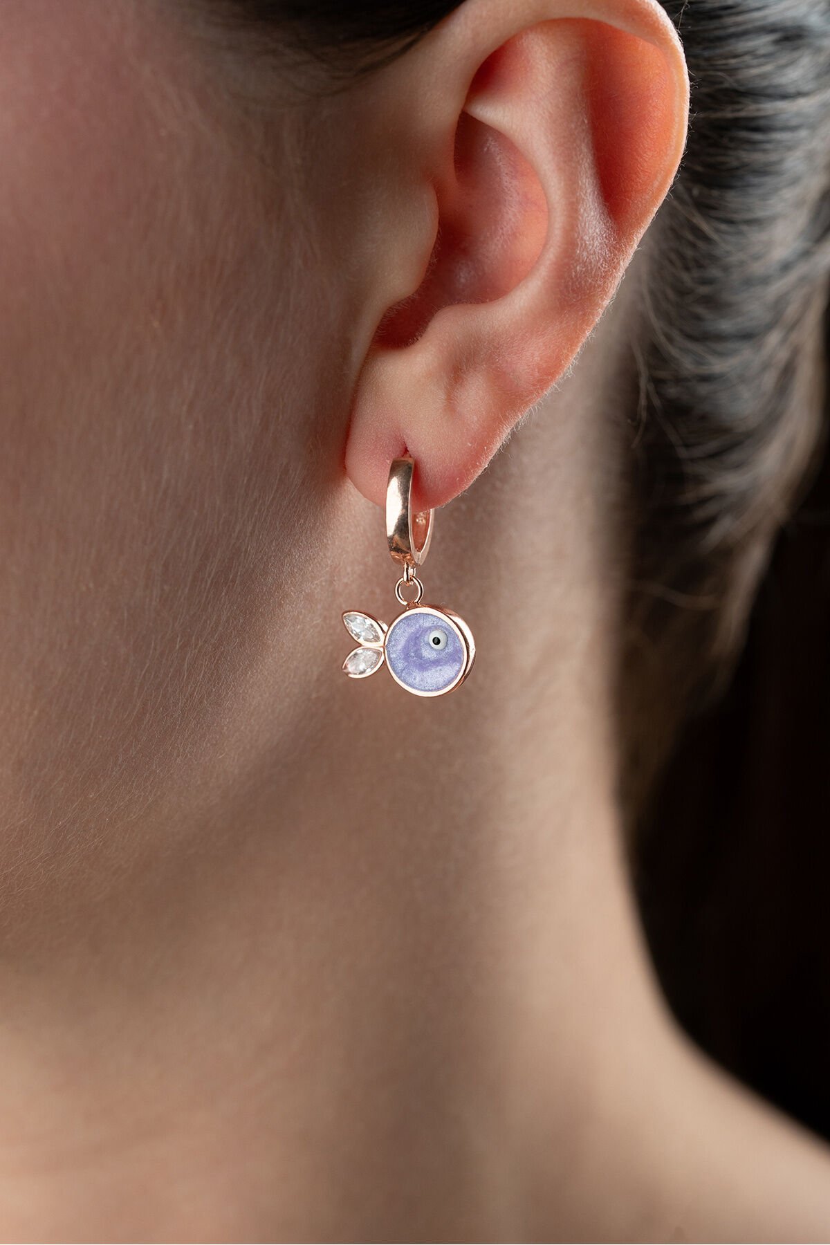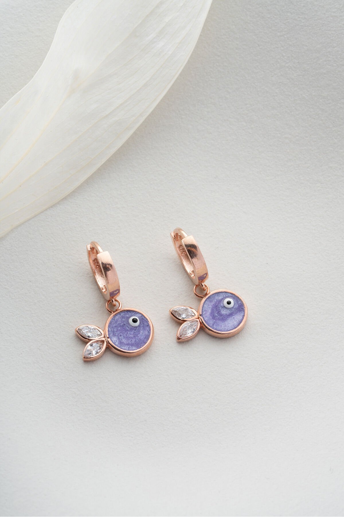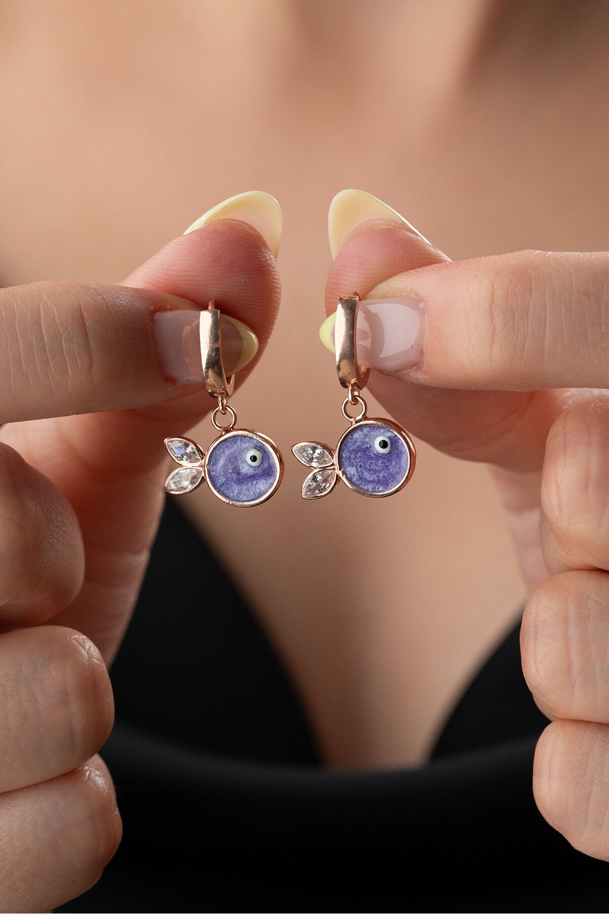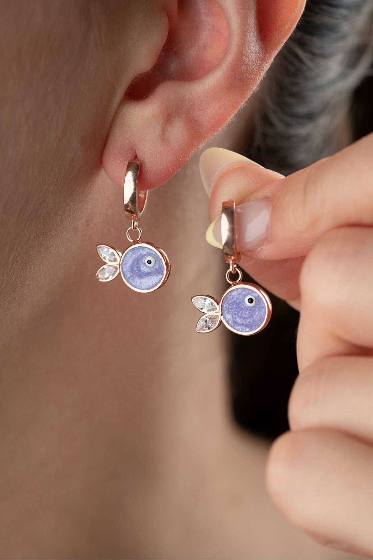 925 Ayar Gümüş Mor Mineli Balık Küpe