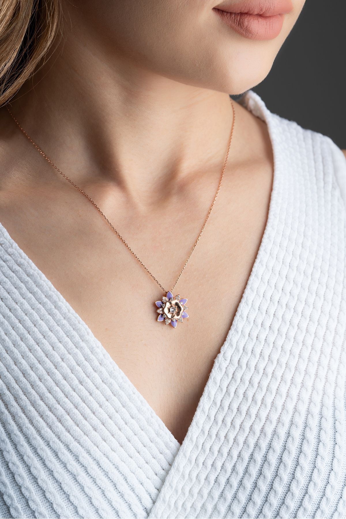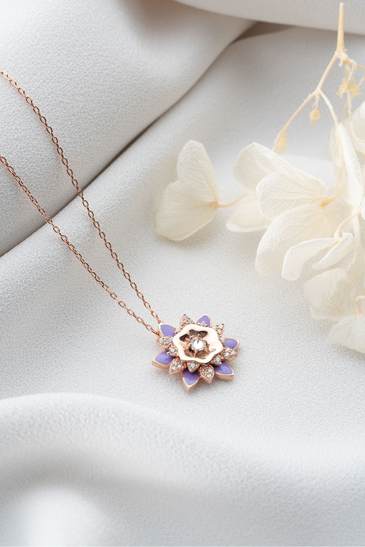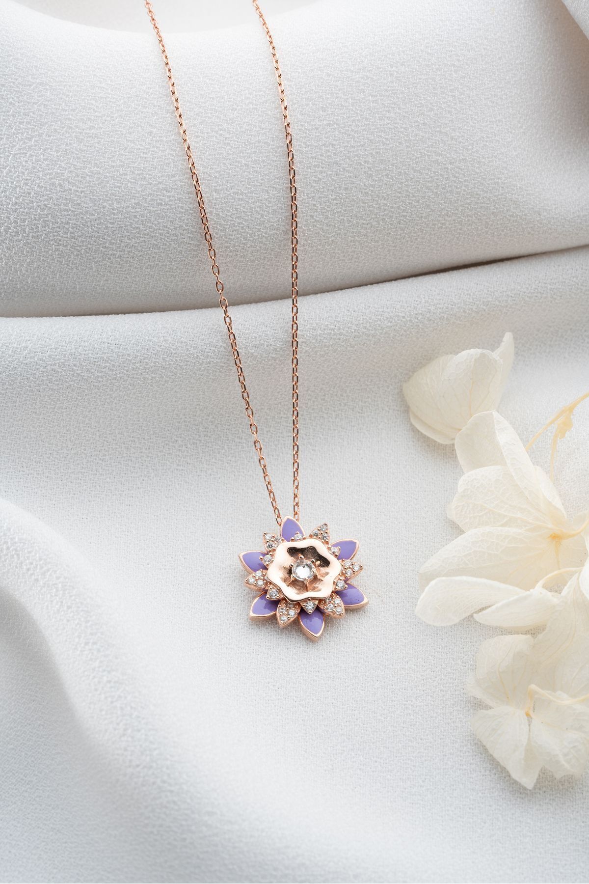 925 Ayar Gümüş Mor Mineli Lotus Çiçeği Kolye