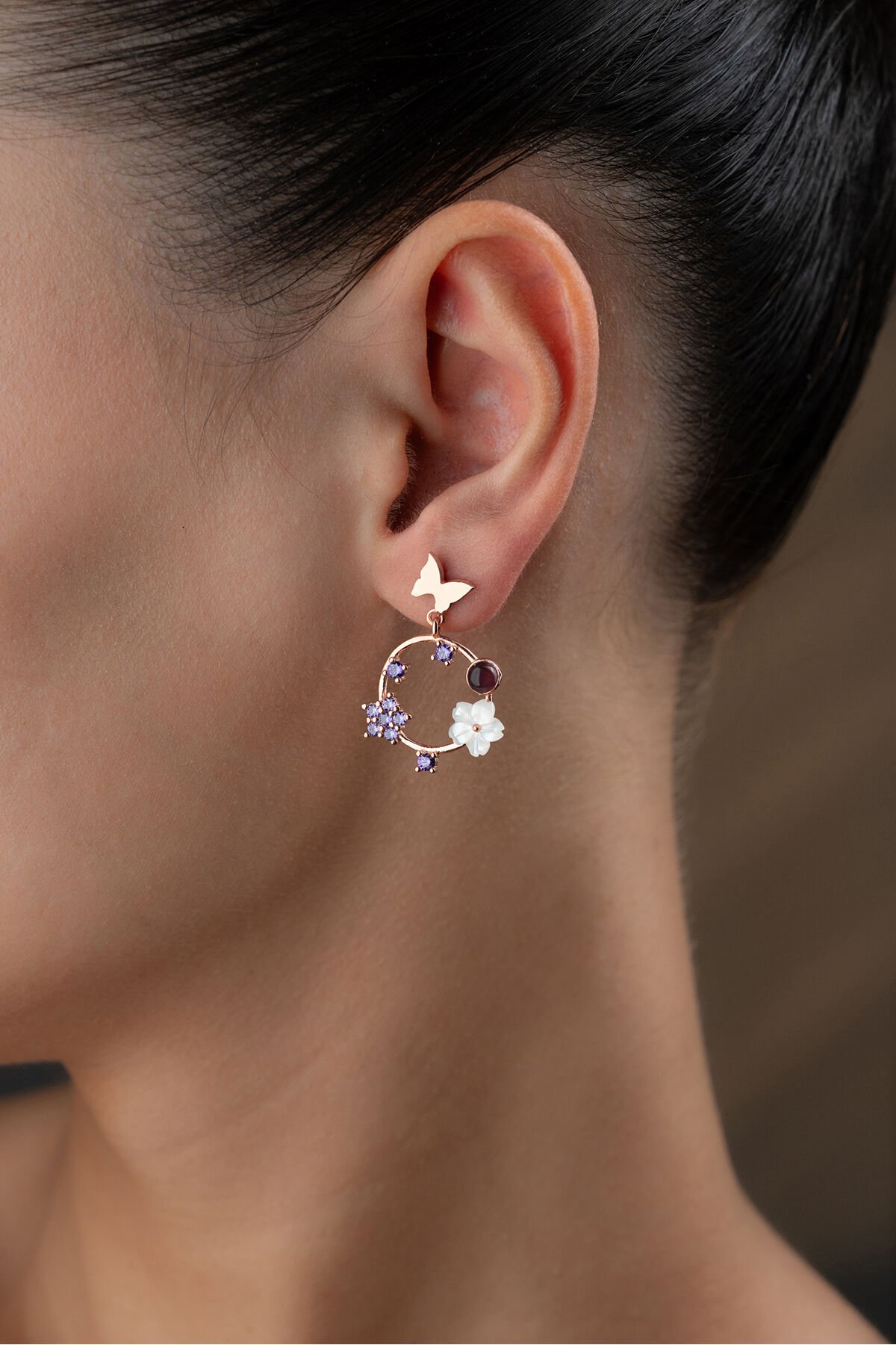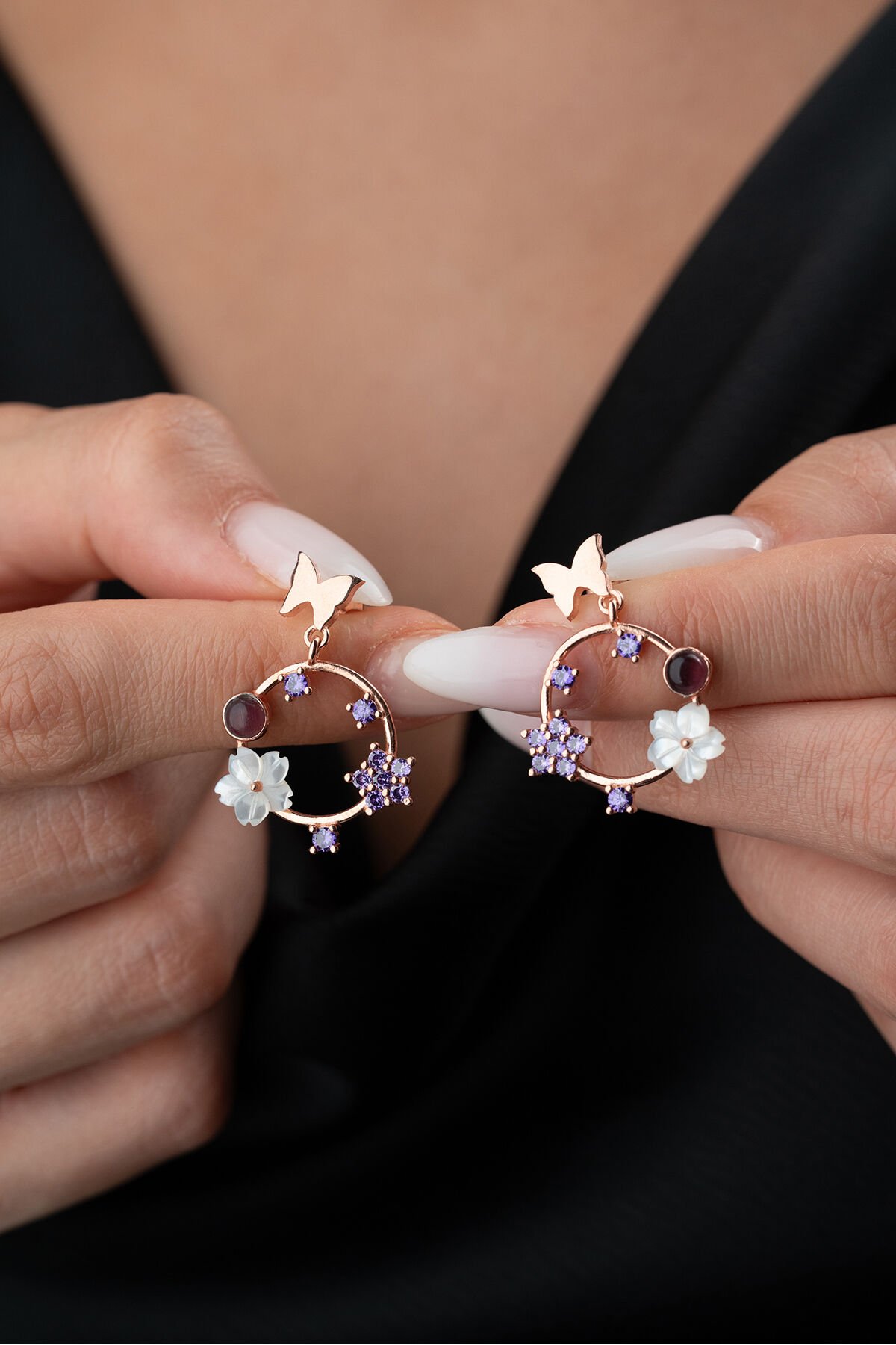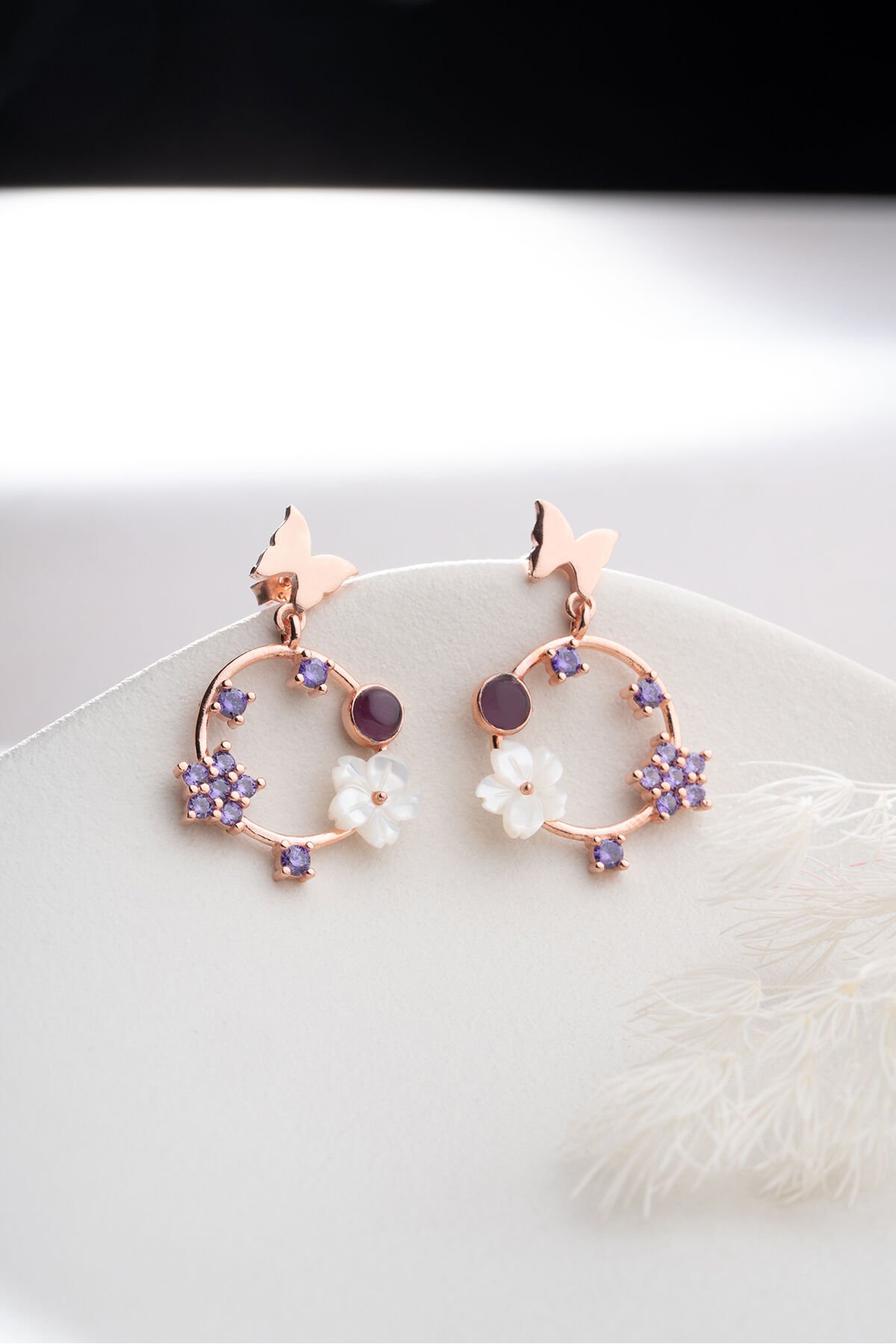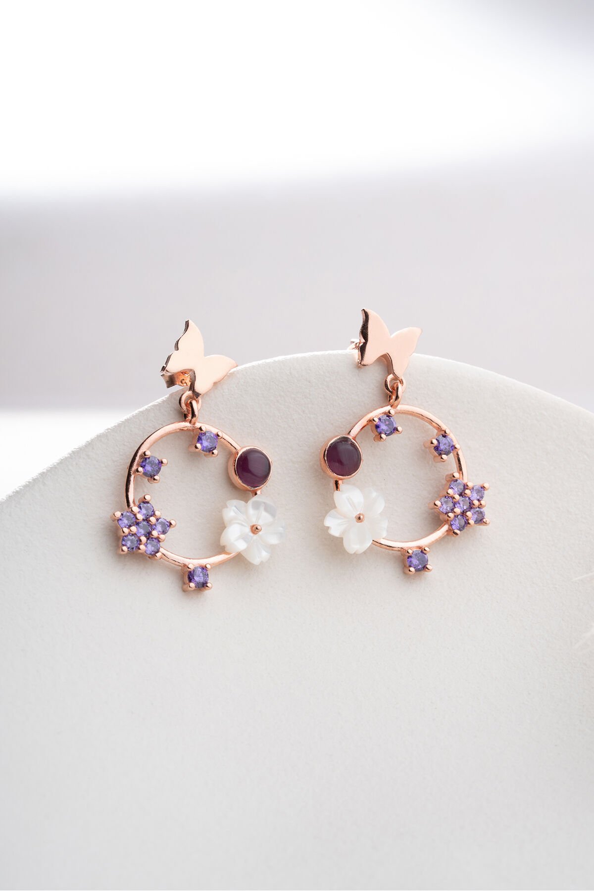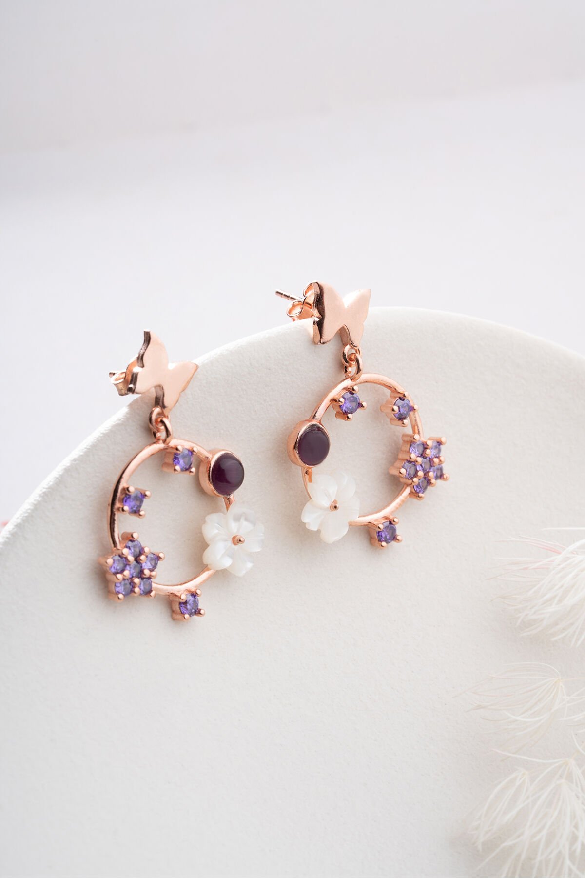 925 Ayar Gümüş Mor Taşlı Sedefli Küpe