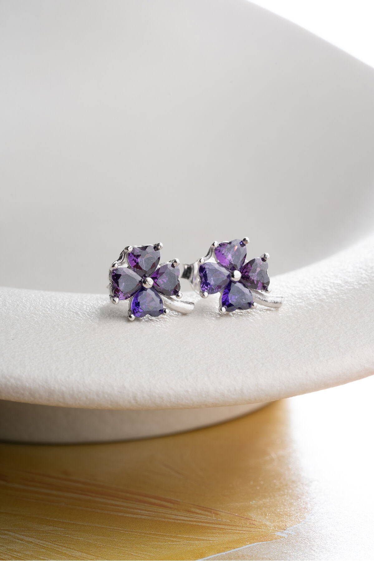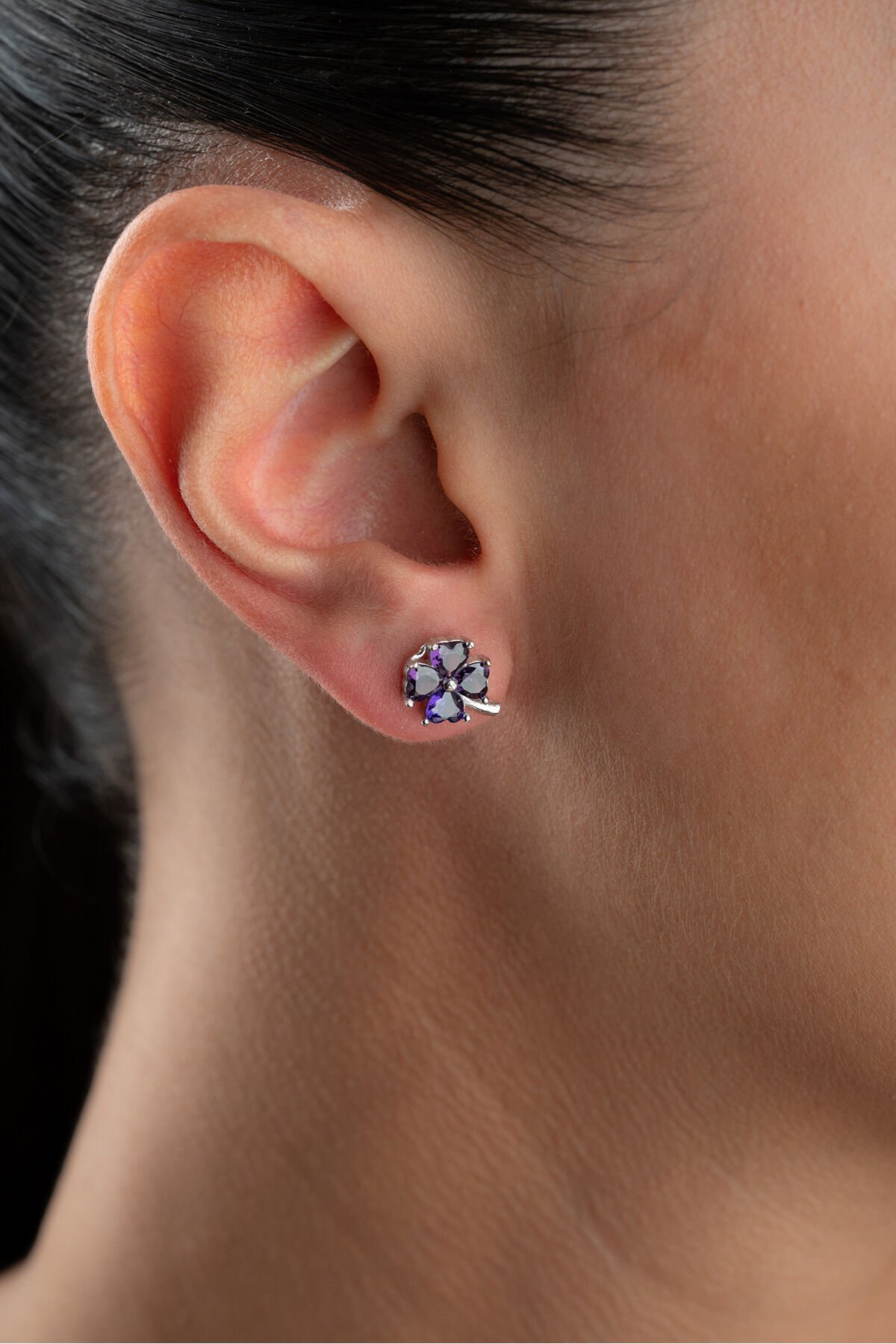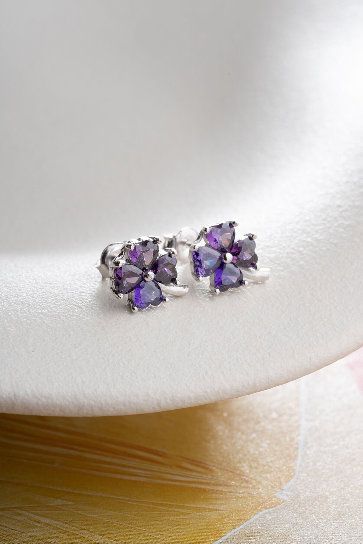 925 Ayar Gümüş Mor Taşlı Yonca Küpe