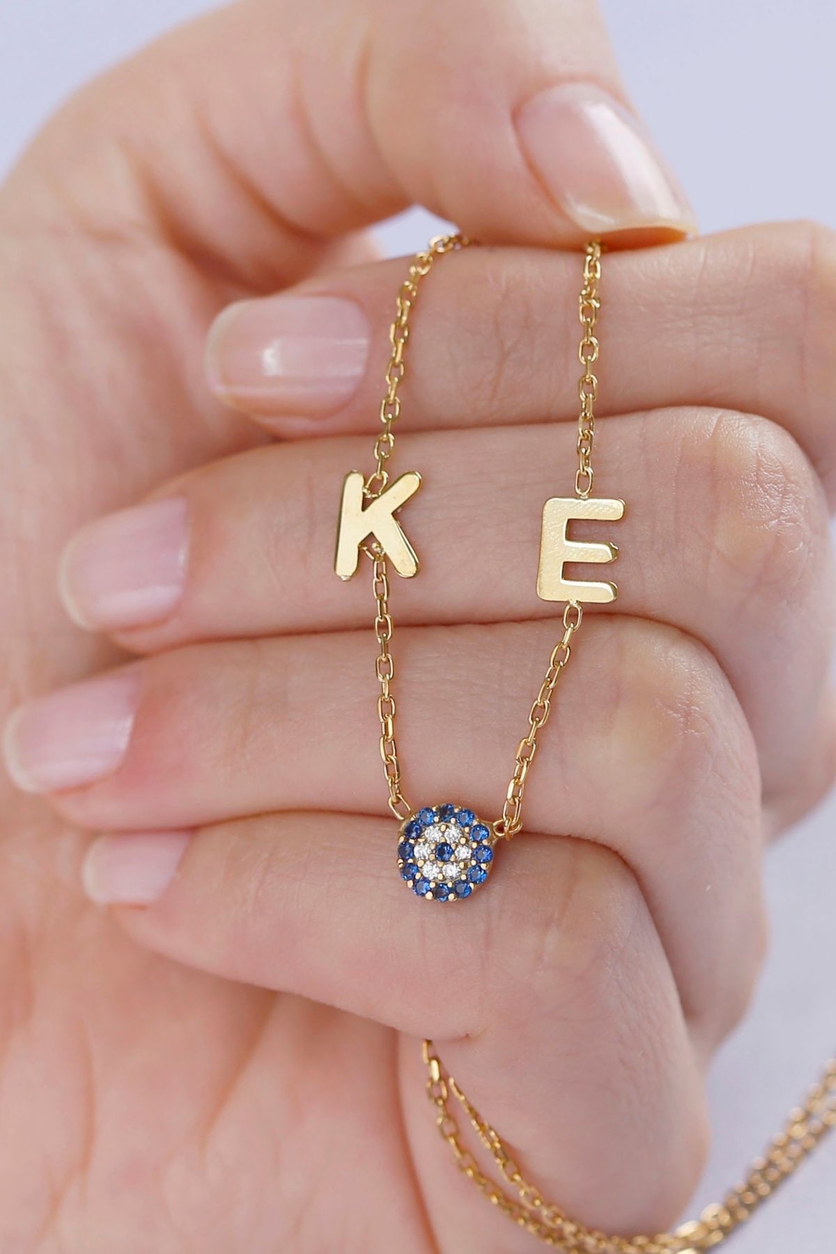 925 Ayar Gümüş Nazar Boncuklu Harfli Kolye