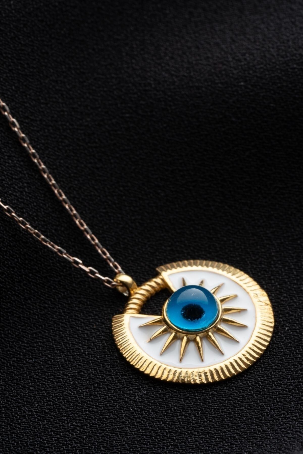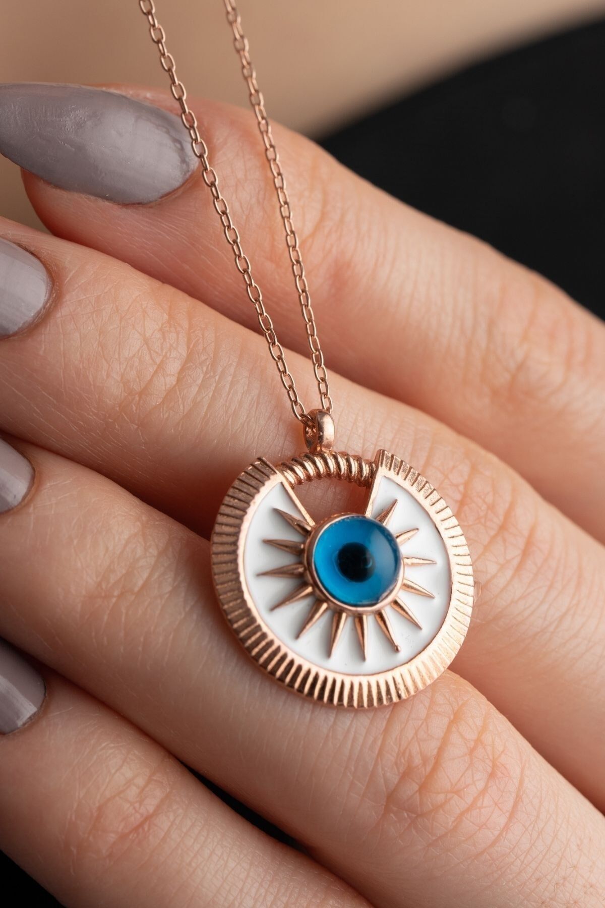 - 925 ayar gümüş malzeme kullanılarak üretilmiş, uzun ömürlü ve kaliteli bir aksesuar deneyimi sunar; - Zarif tasarımıyla dikkat çeken nazar gözlü pusula kolye, hem günlük kullanım hem de özel günlerde şıklığınızı tamamlar; - Göz alıcı detaylarıyla dikkat çeken bu kolye, modern ve klasik tarzları harmanlayarak her tür kıyafetle uyum sağlar; - Gümüş rengi sayesinde farklı renklerle kolayca kombinlenebilir ve her ortamda göz kamaştırıcı bir görünüm sunar;