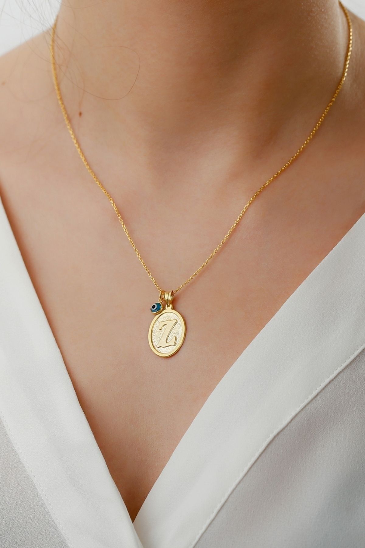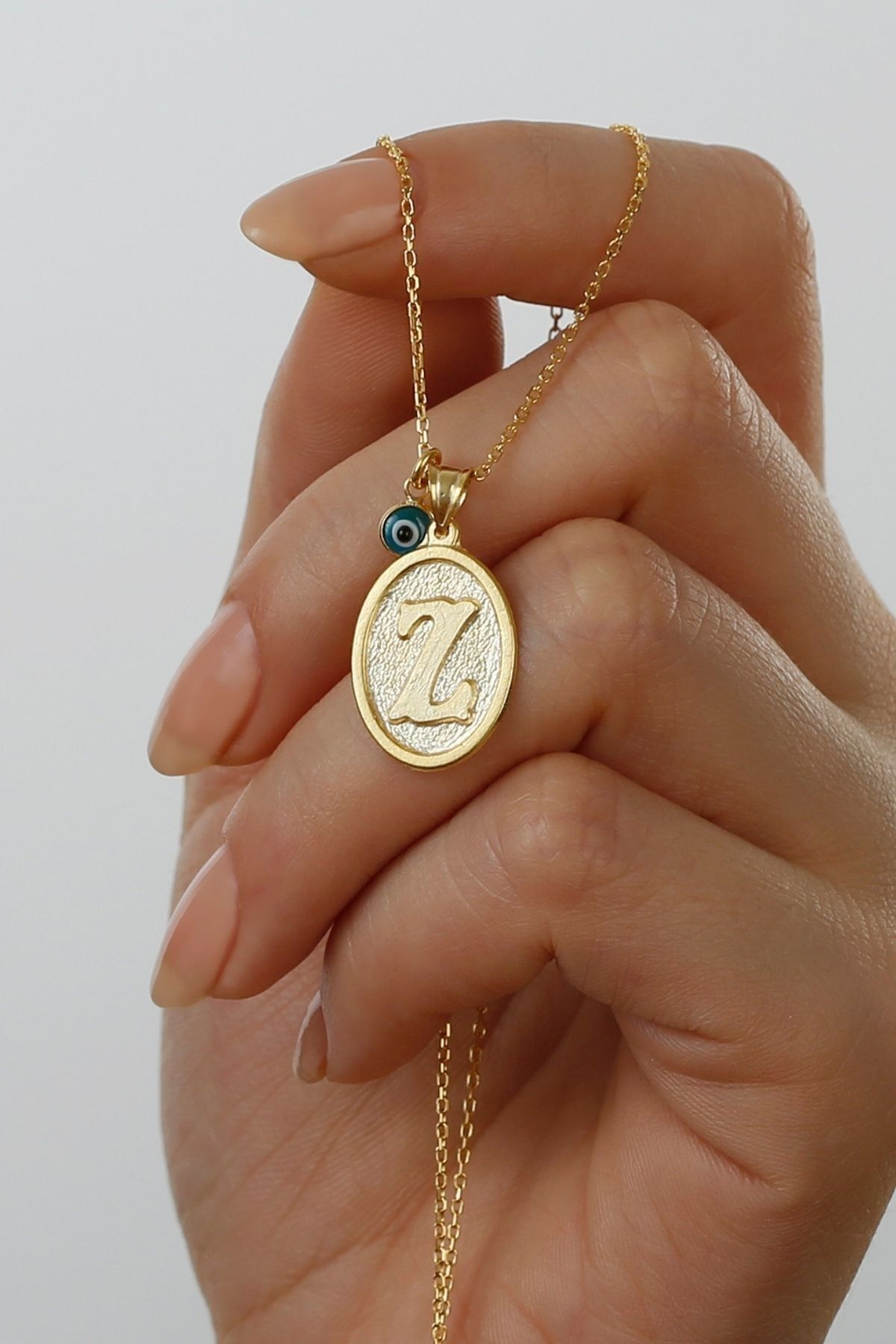 925 Ayar Gümüş Nazarlı Harf Kolye