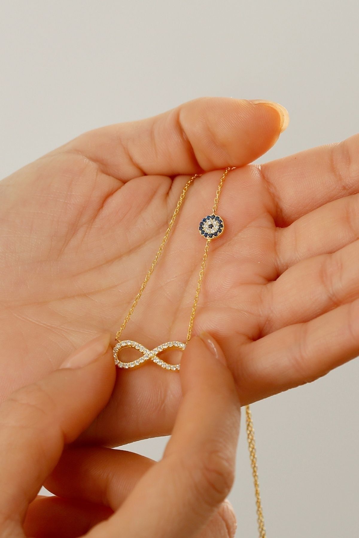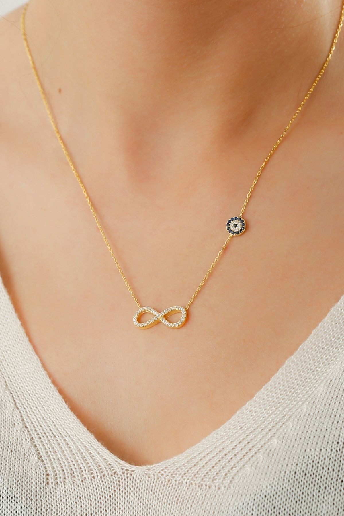 925 Ayar Gümüş Nazarlı Sonsuzluk Kolye