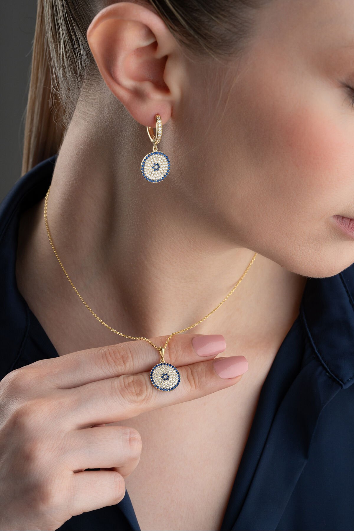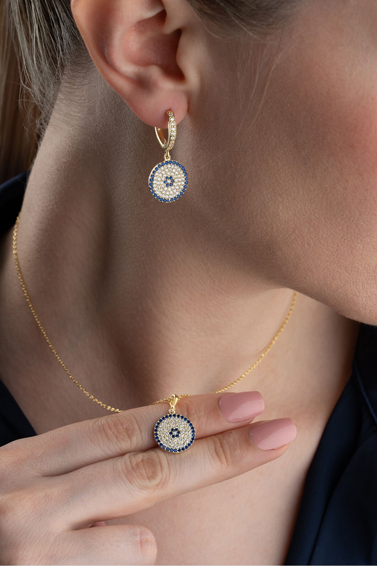 925 Ayar Gümüş Nazarlı Takı Seti