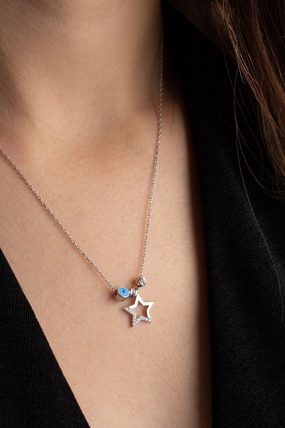 925 Ayar Gümüş Nazarlı Yıldız Kolye