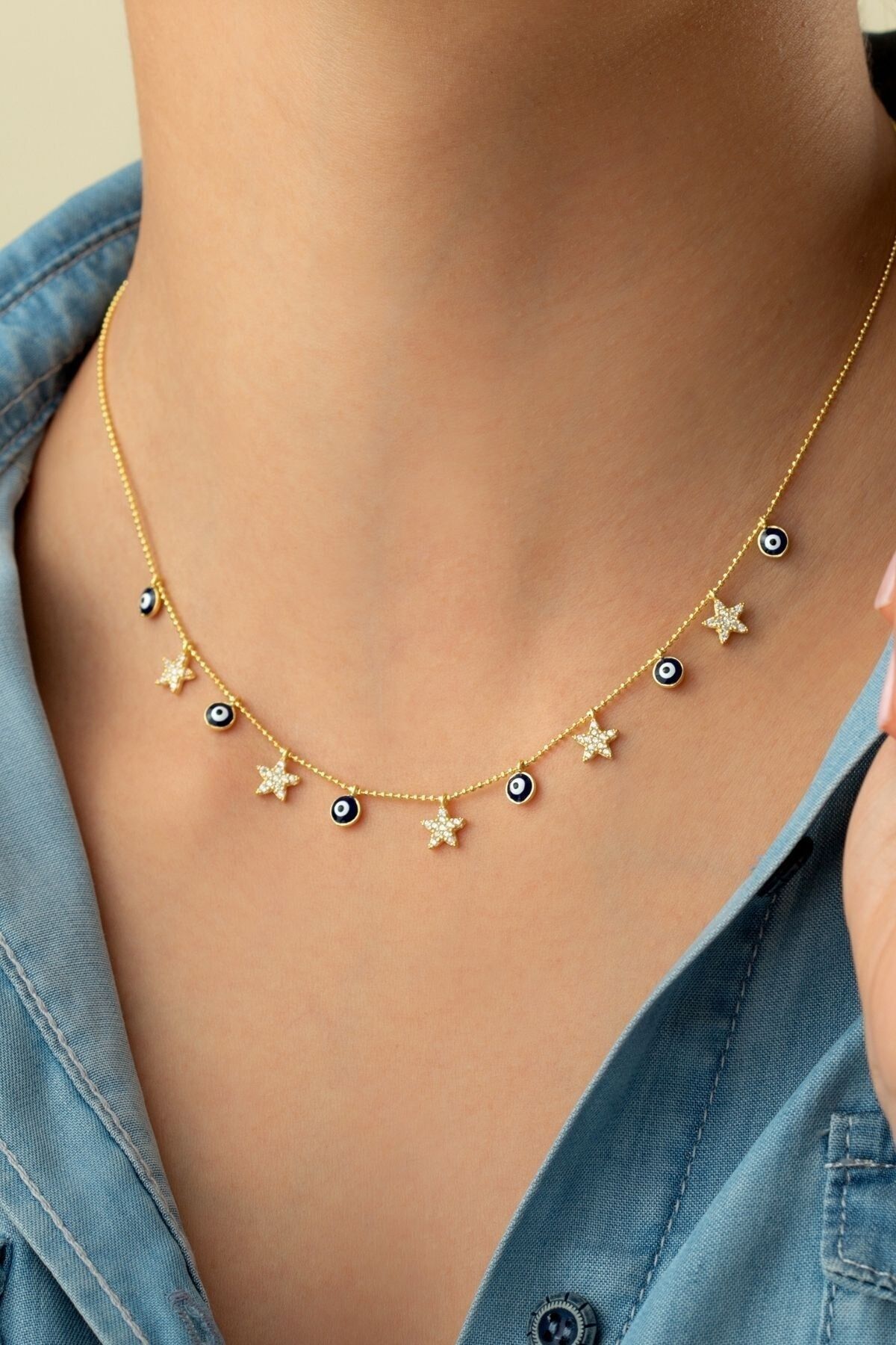 925 Ayar Gümüş Nazarlı Yıldız Şans Kolyesi