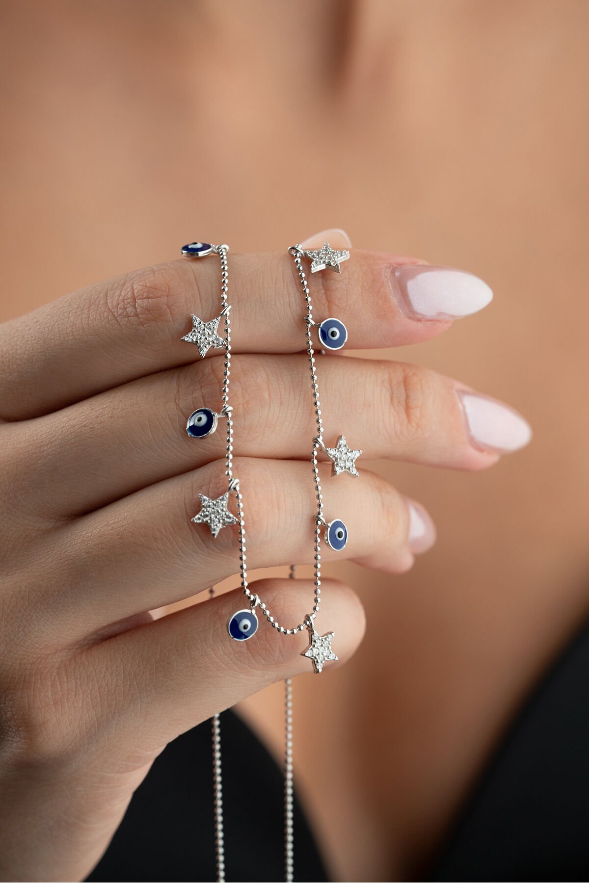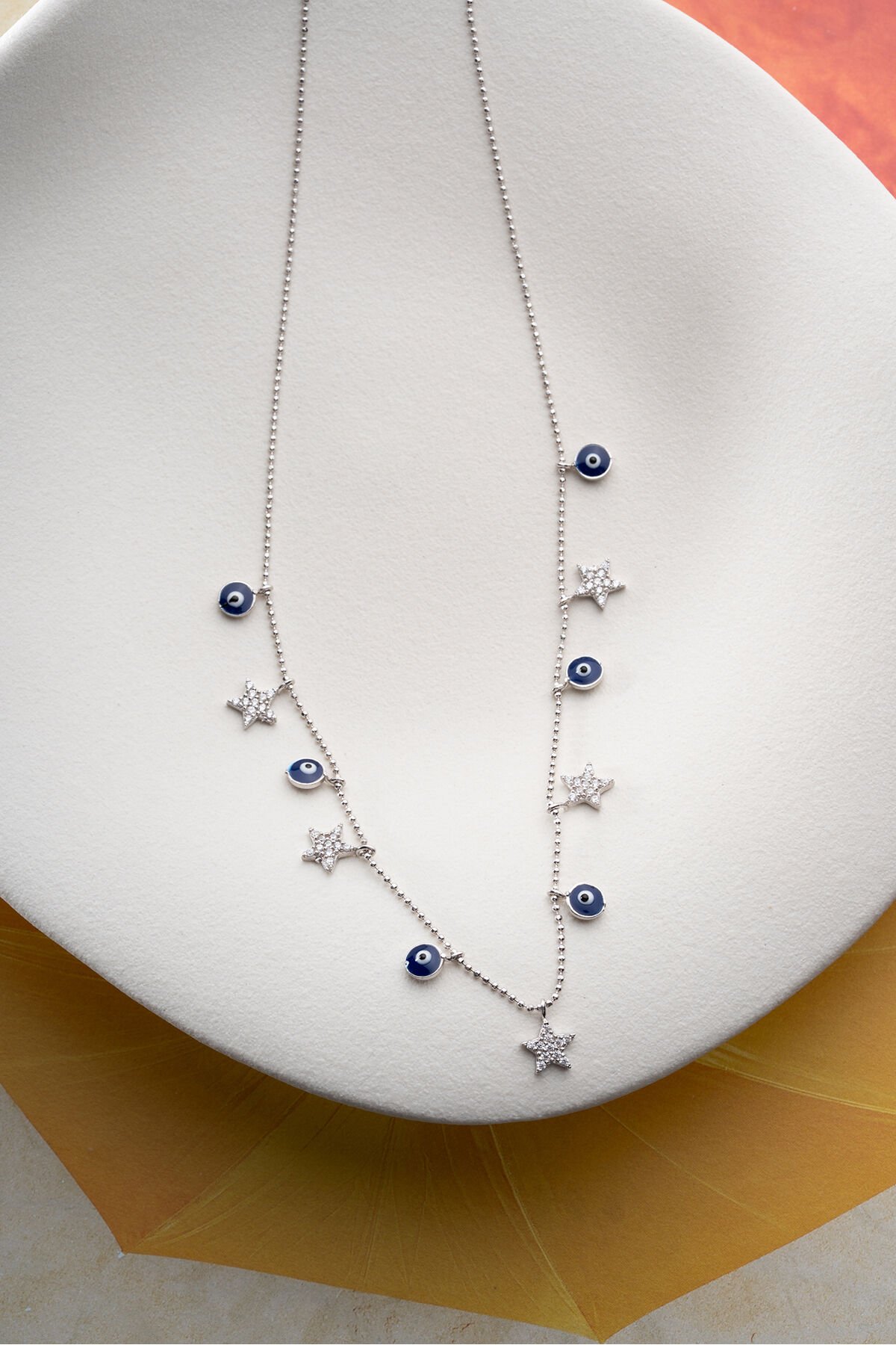 925 Ayar Gümüş Nazarlı Yıldızlı Şans Bereket Kolye