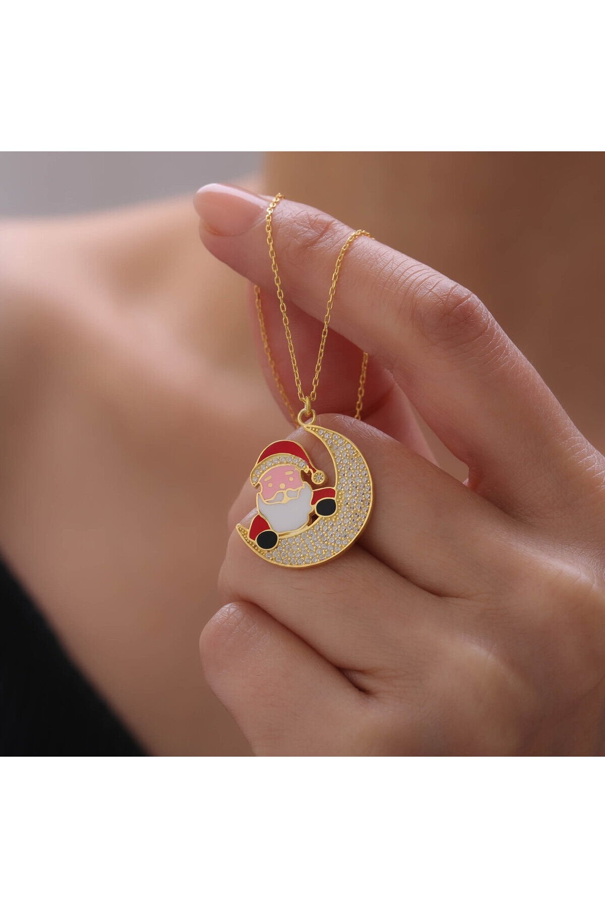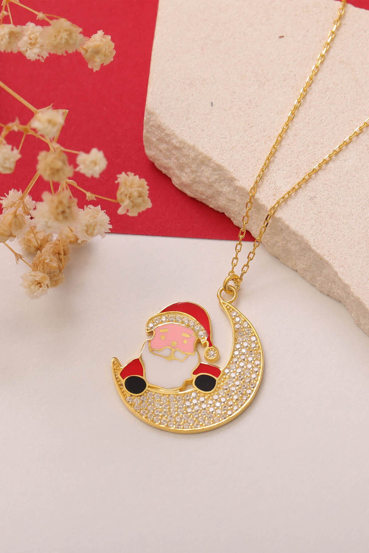 925 Ayar Gümüş Noel Baba Hilal Kolye