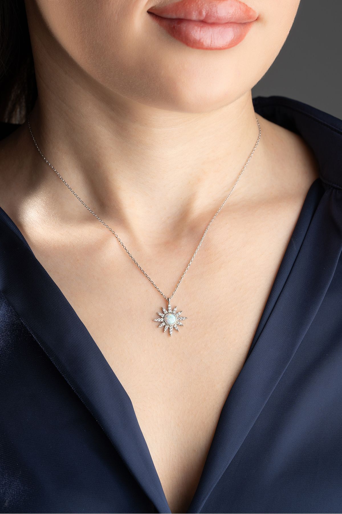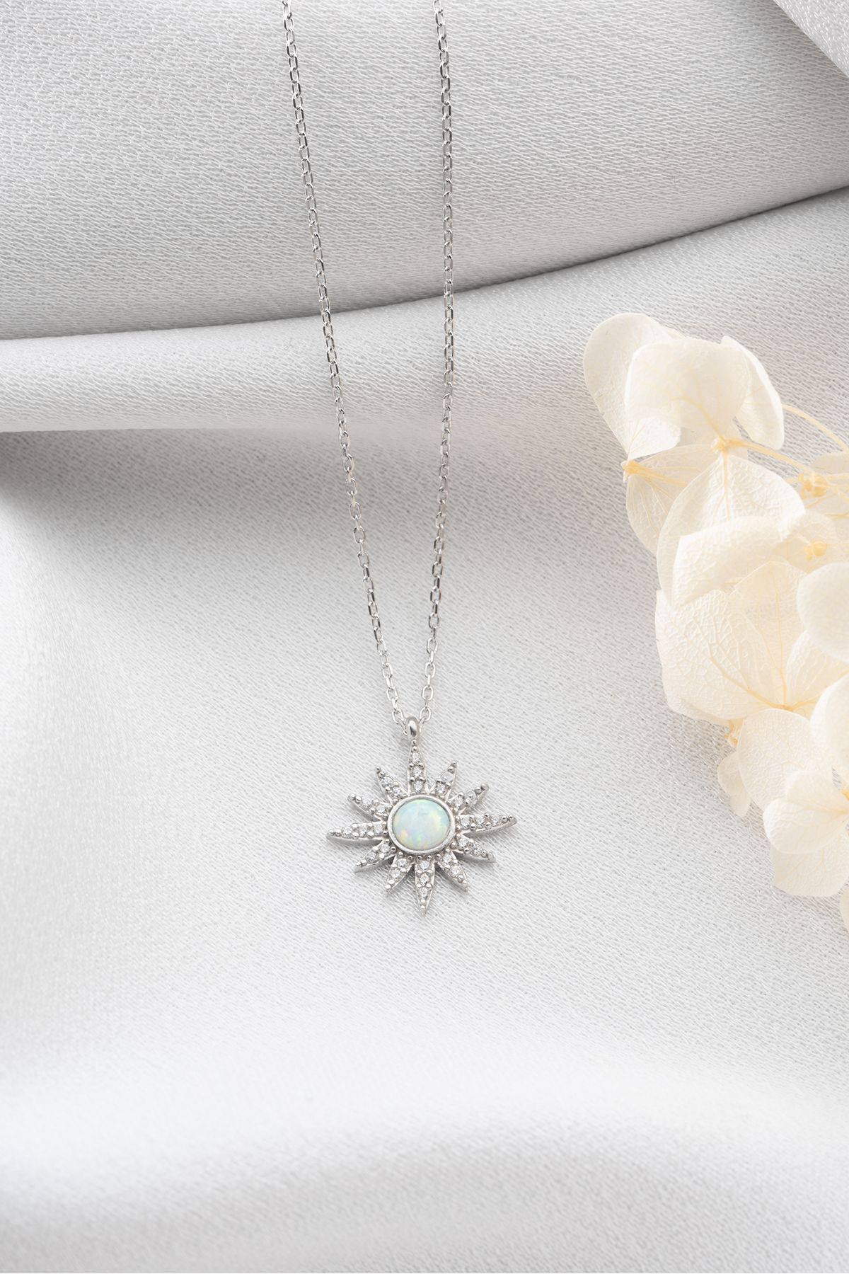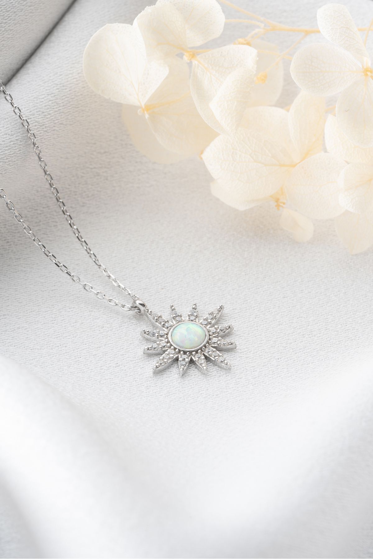 925 Ayar Gümüş Opal Taşlı Güneş Gümüş Kolye