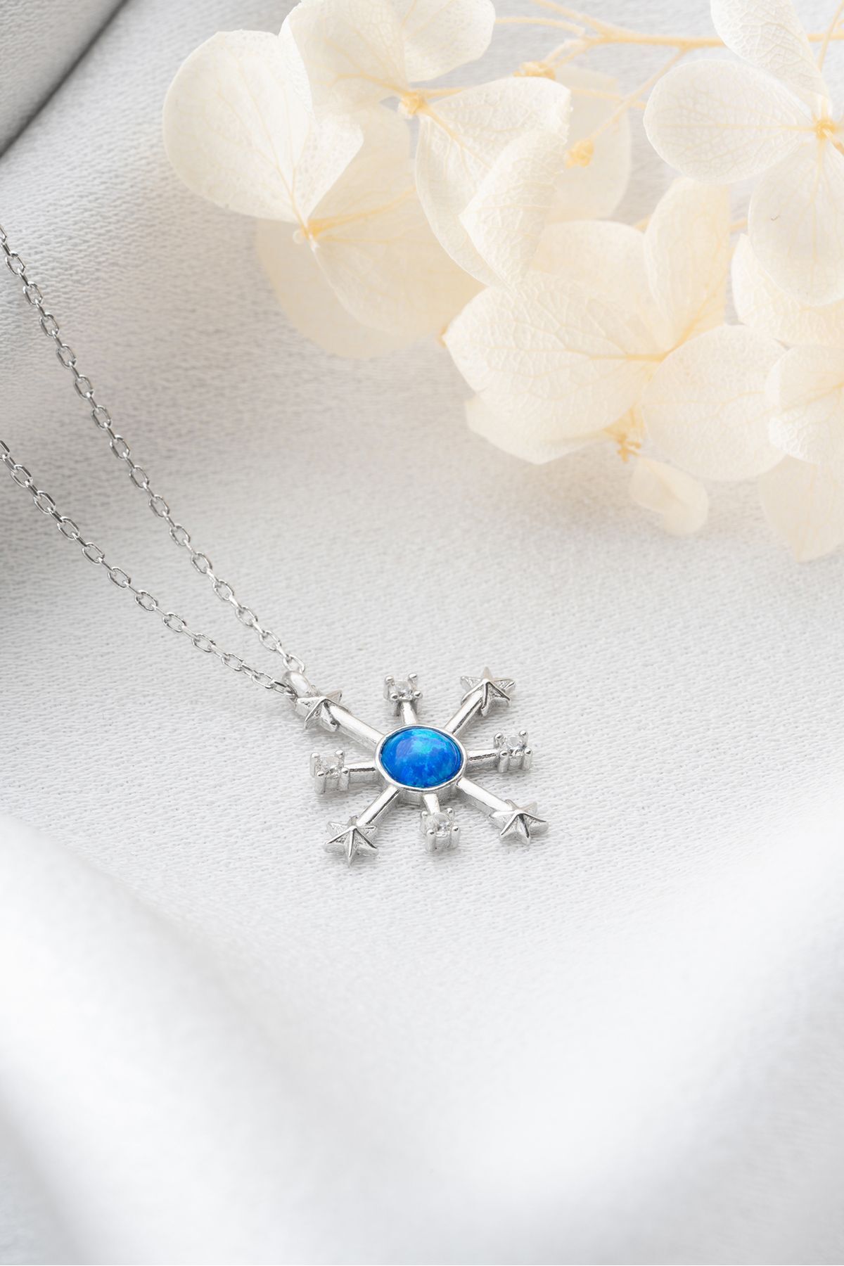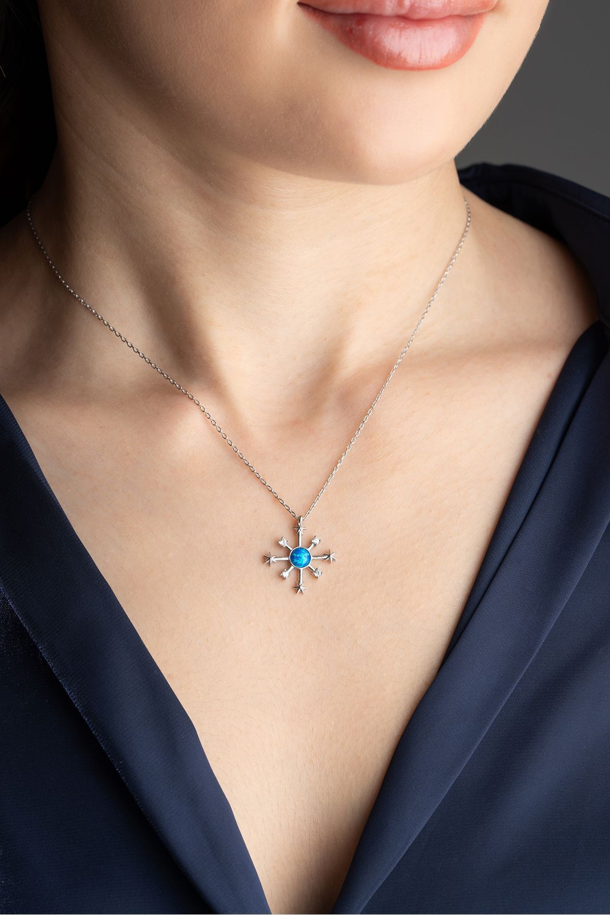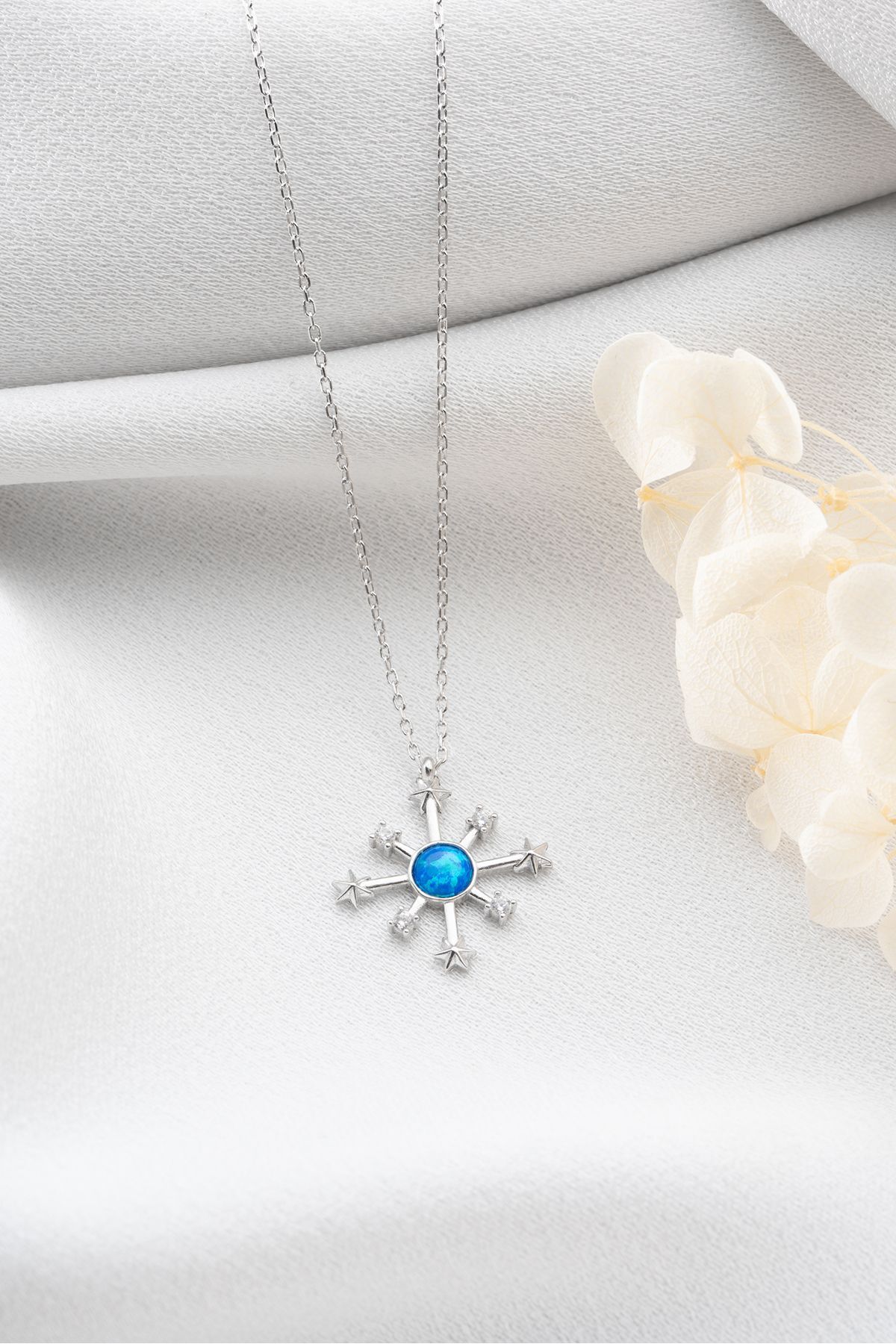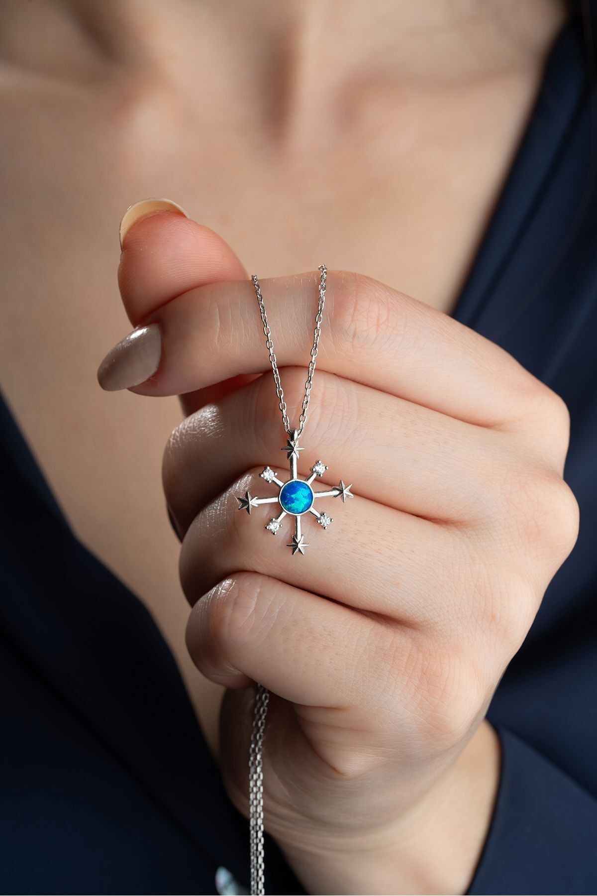 925 Ayar Gümüş Opal Taşlı Kutup Yıldızı Kolye