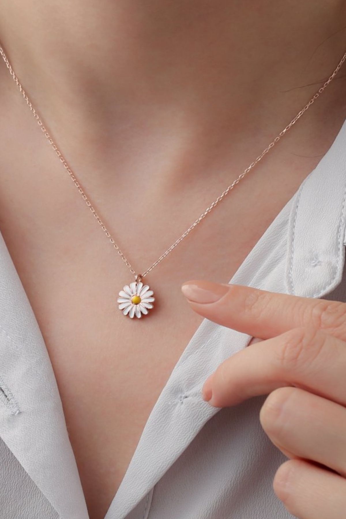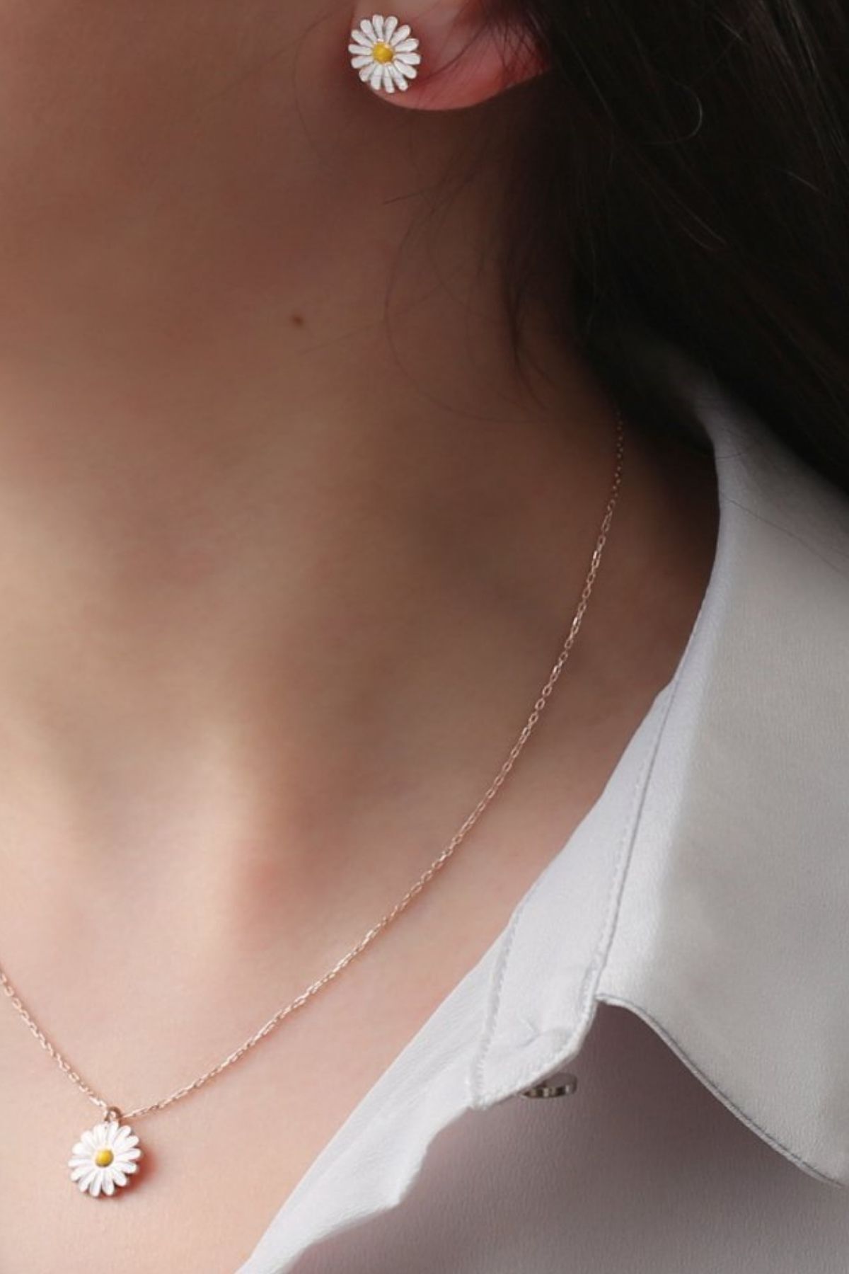 925 Ayar Gümüş Papatya Kolye Küpe Set
