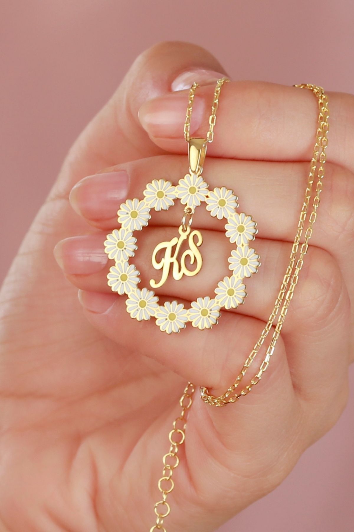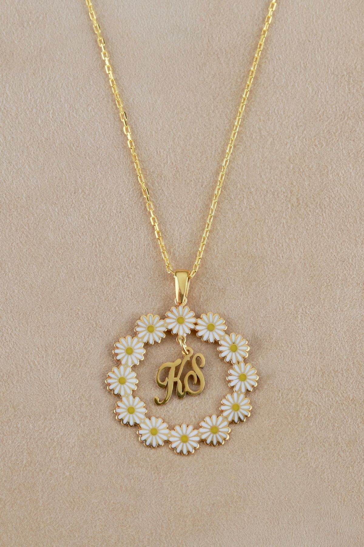 925 Ayar Gümüş Papatyalı Sallanan Harfli Kolye