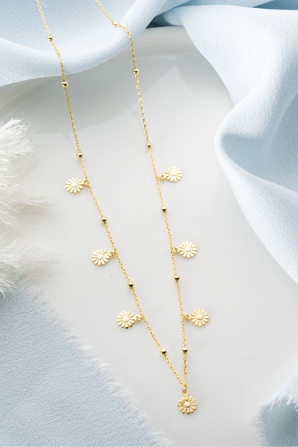 925 Ayar Gümüş Papatyalı Şans Kolye