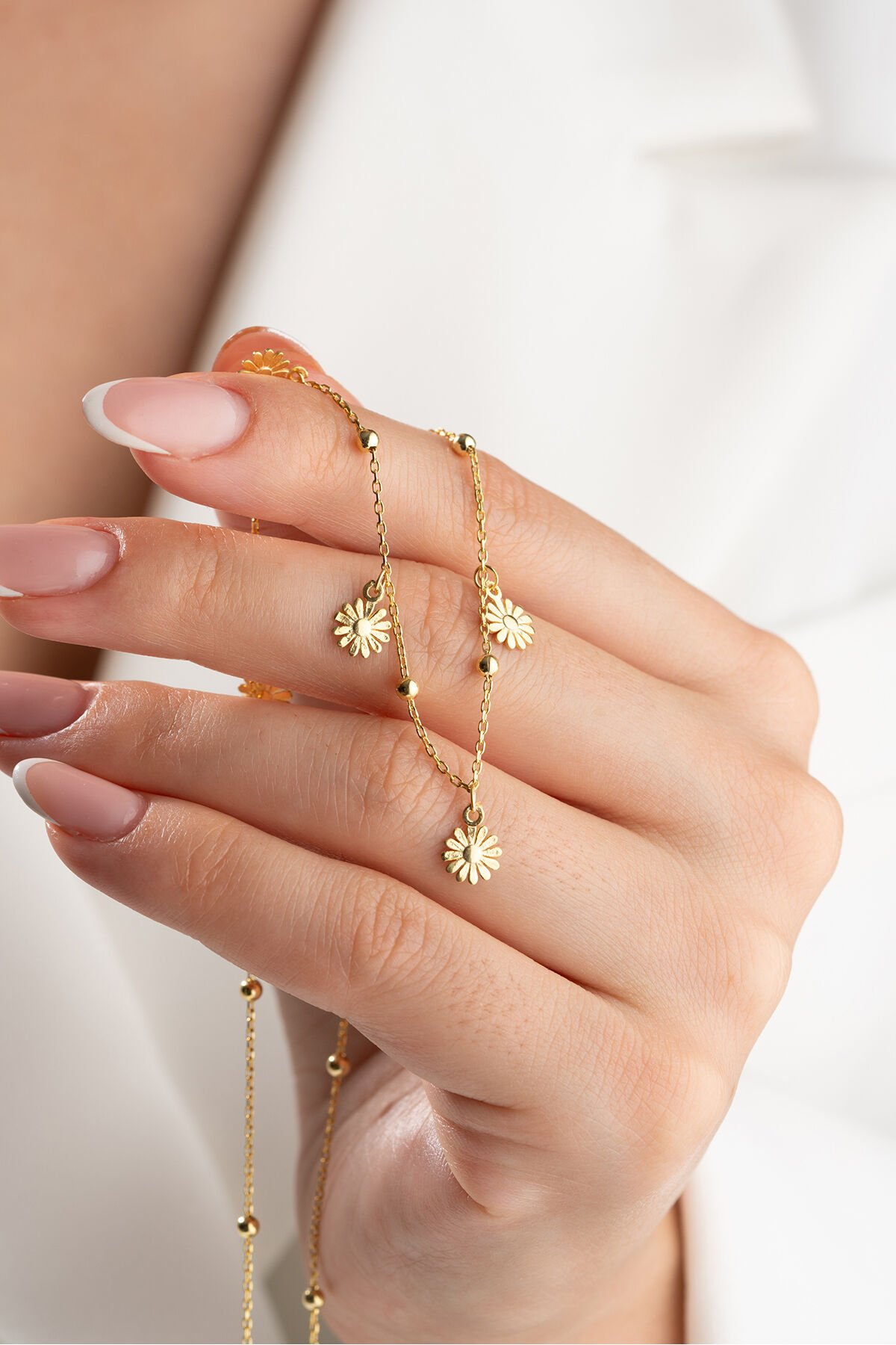 - 925 ayar gümüş malzemesiyle üretilmiş, uzun ömürlü ve kaliteli bir aksesuar deneyimi sunar; - Şans sembolü papatya motifleriyle süslenmiş, estetik ve zarif bir tasarıma sahiptir; - Taş kullanılmayan yapısıyla modern ve minimalist bir görünüm sağlar, günlük kullanım için idealdir; - Gümüş materyalin parlaklığı ve şıklığı, her türlü kıyafetle kolayca uyum sağlar;