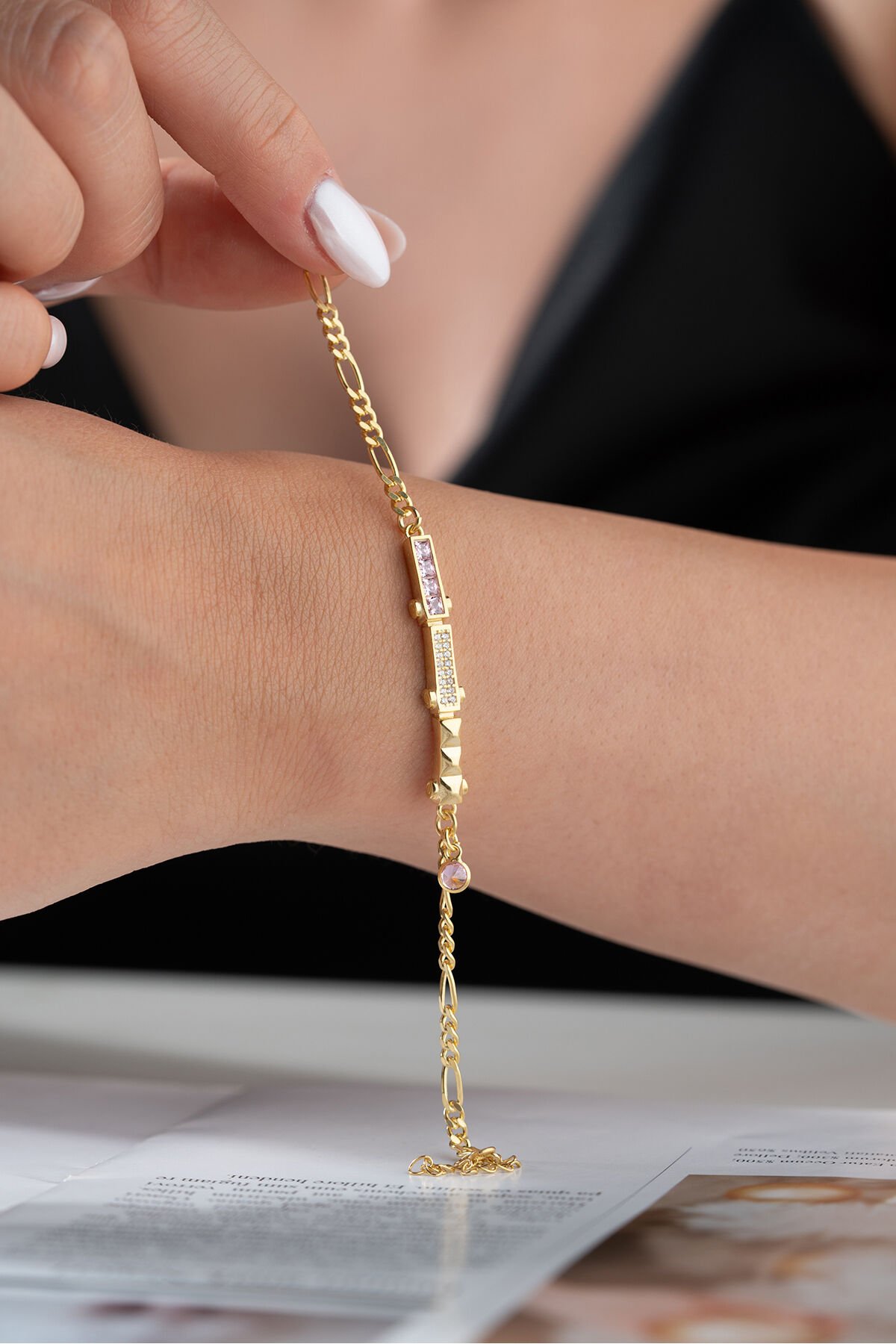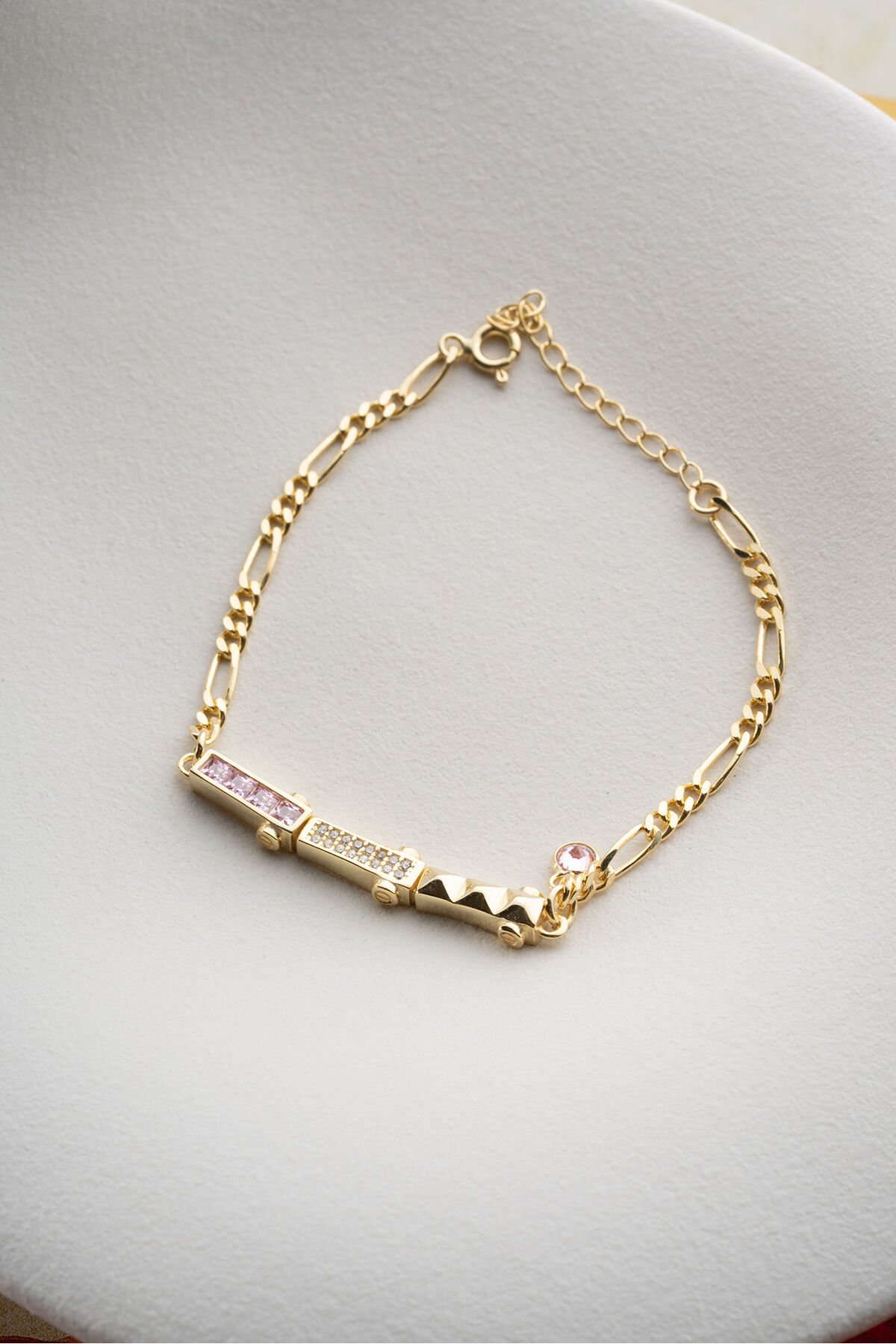 925 Ayar Gümüş Pembe Baget Taşlı Bileklik