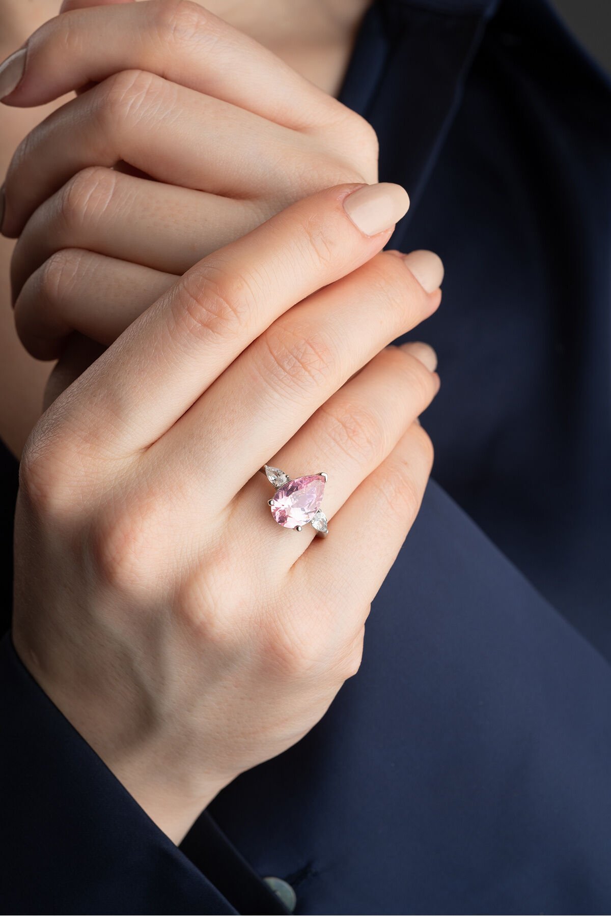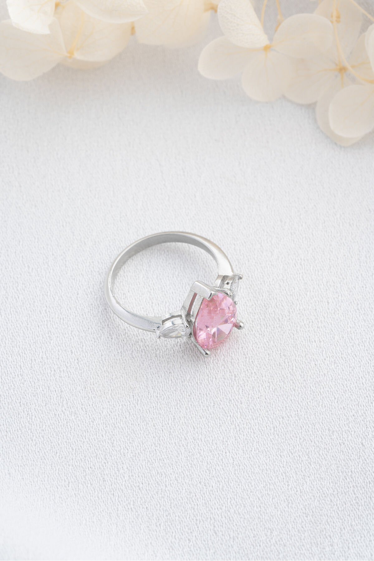 925 Ayar Gümüş Pembe Damla Taşlı Yüzük