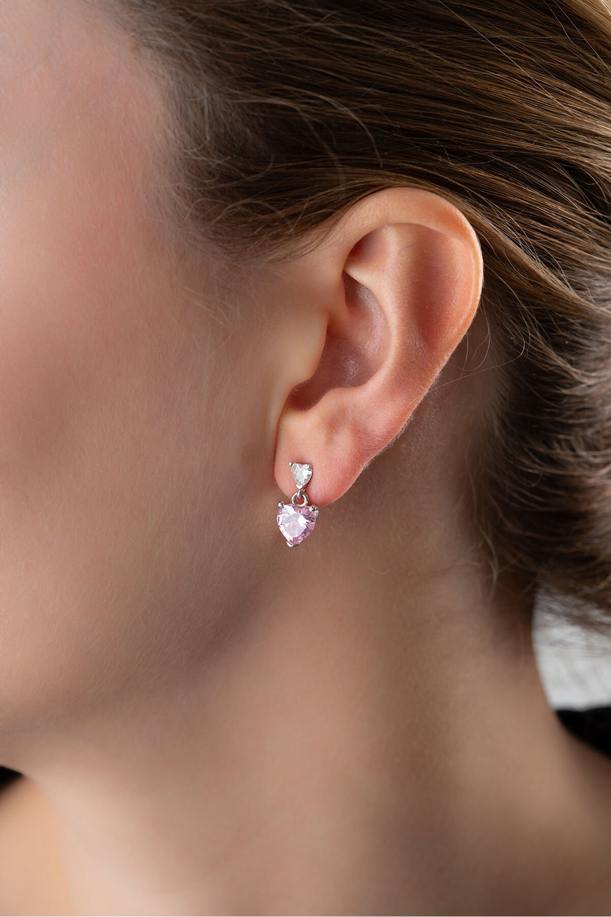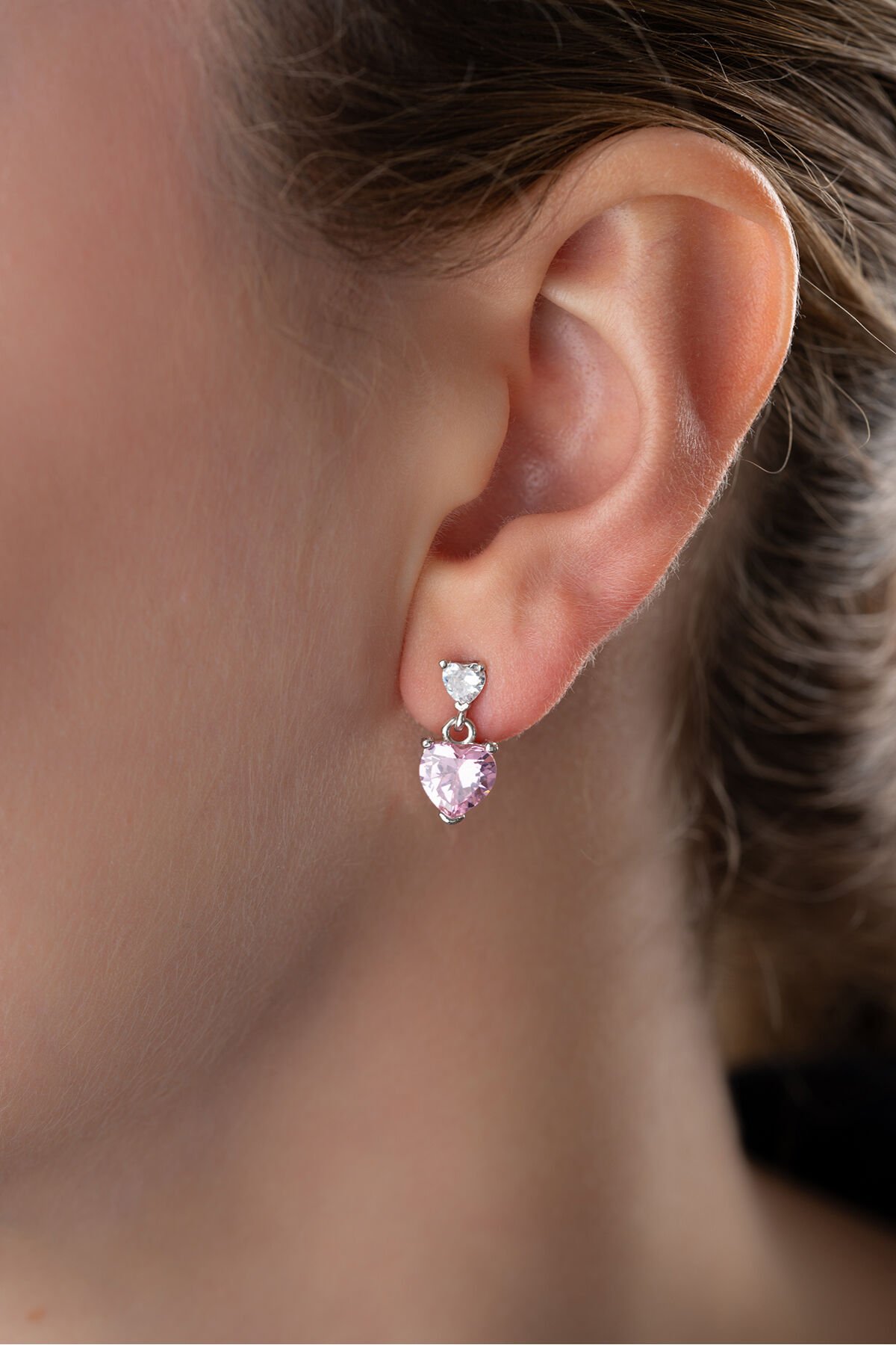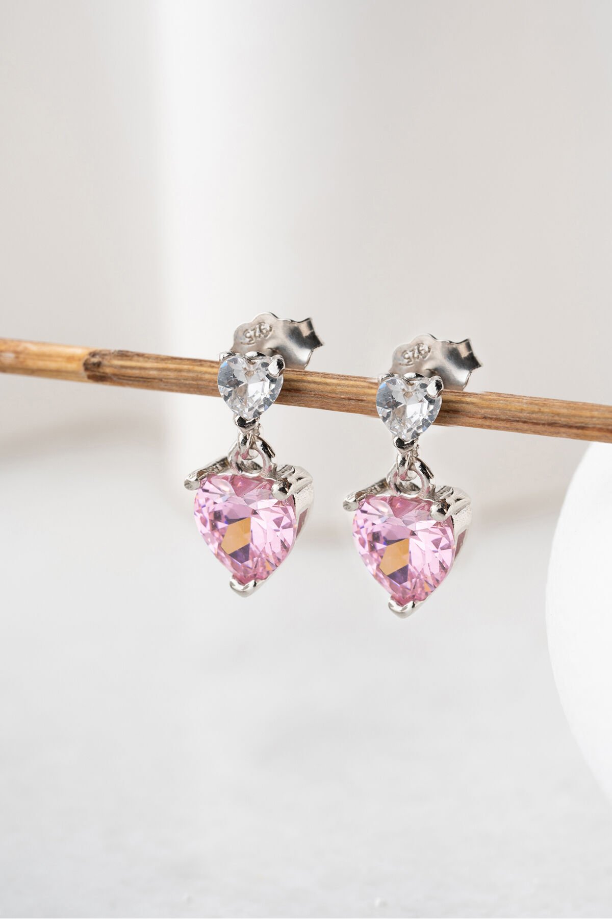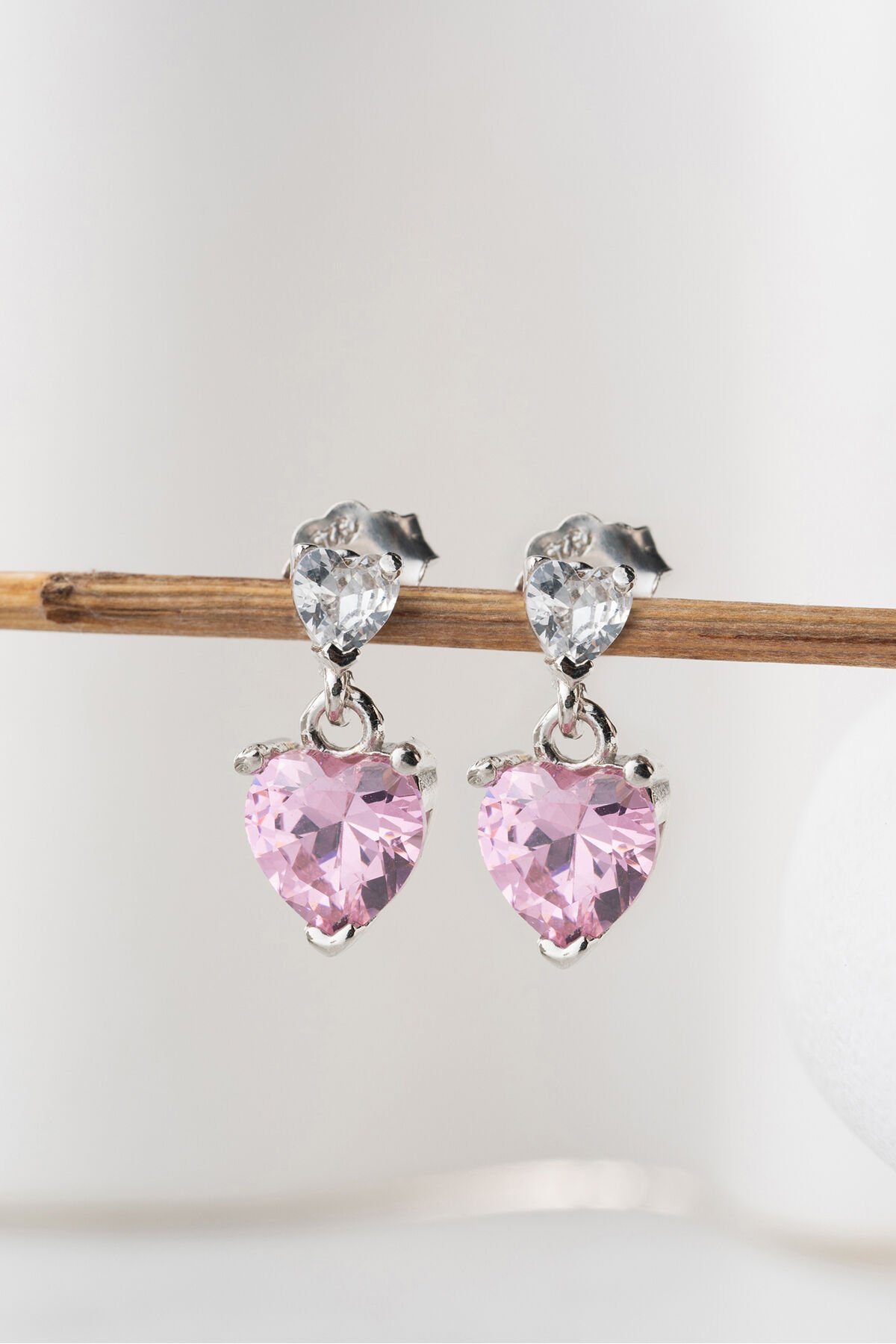 925 Ayar Gümüş Pembe Kalpli Küpe