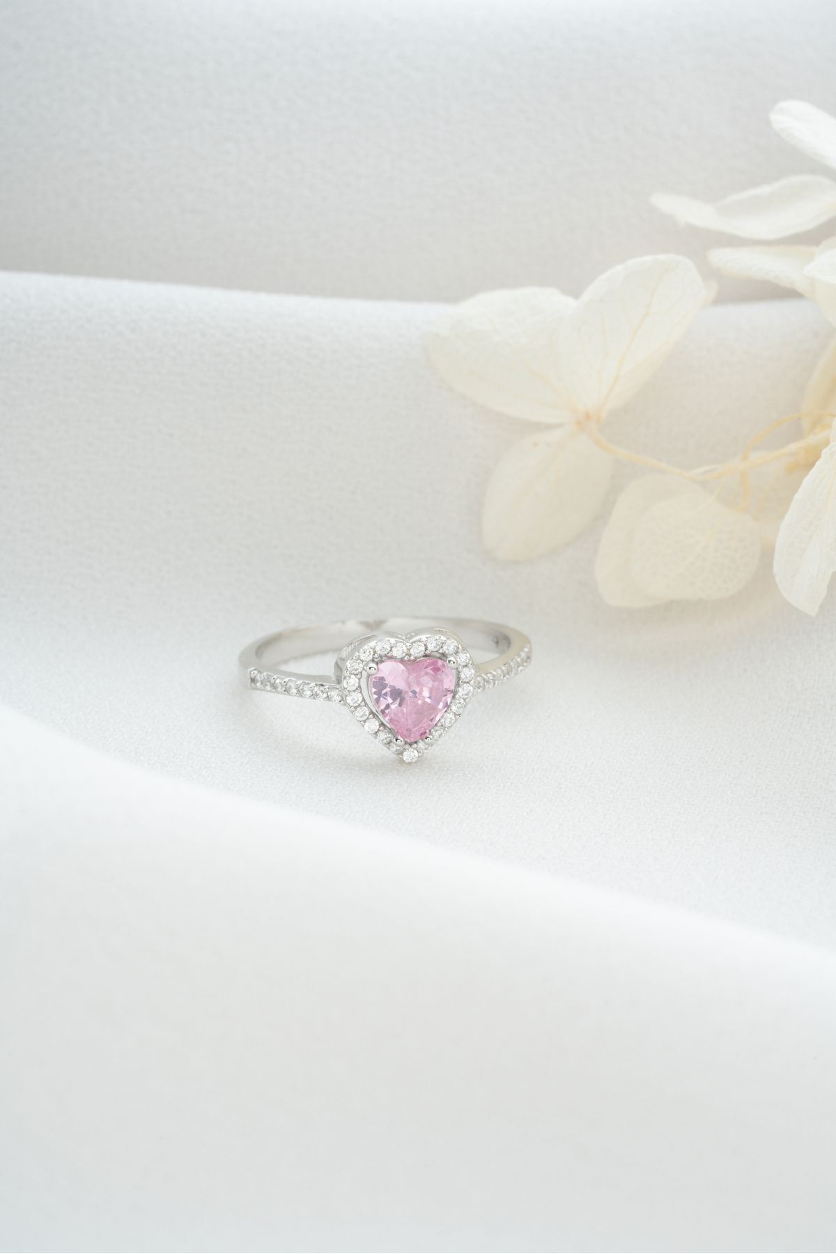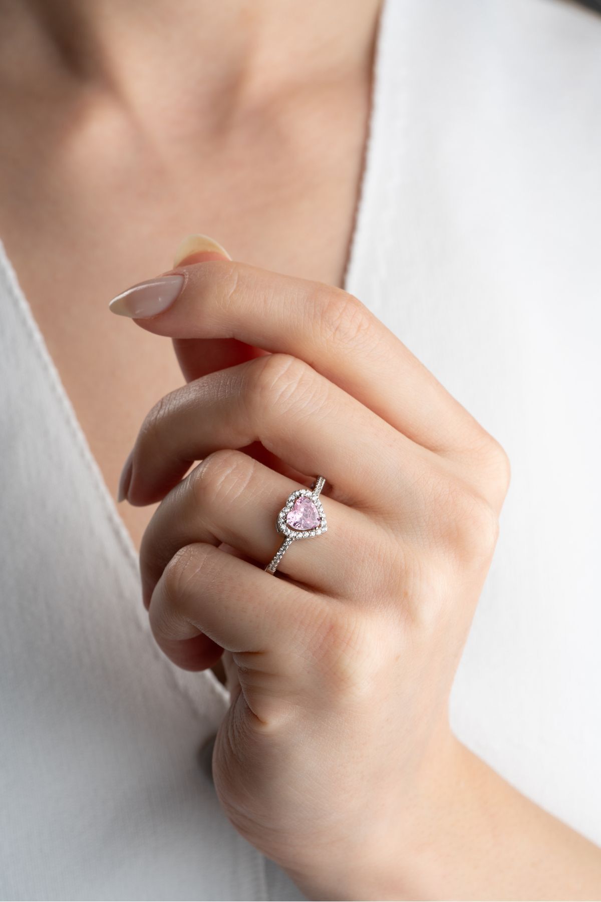 925 Ayar Gümüş Pembe Kalpli Yüzük