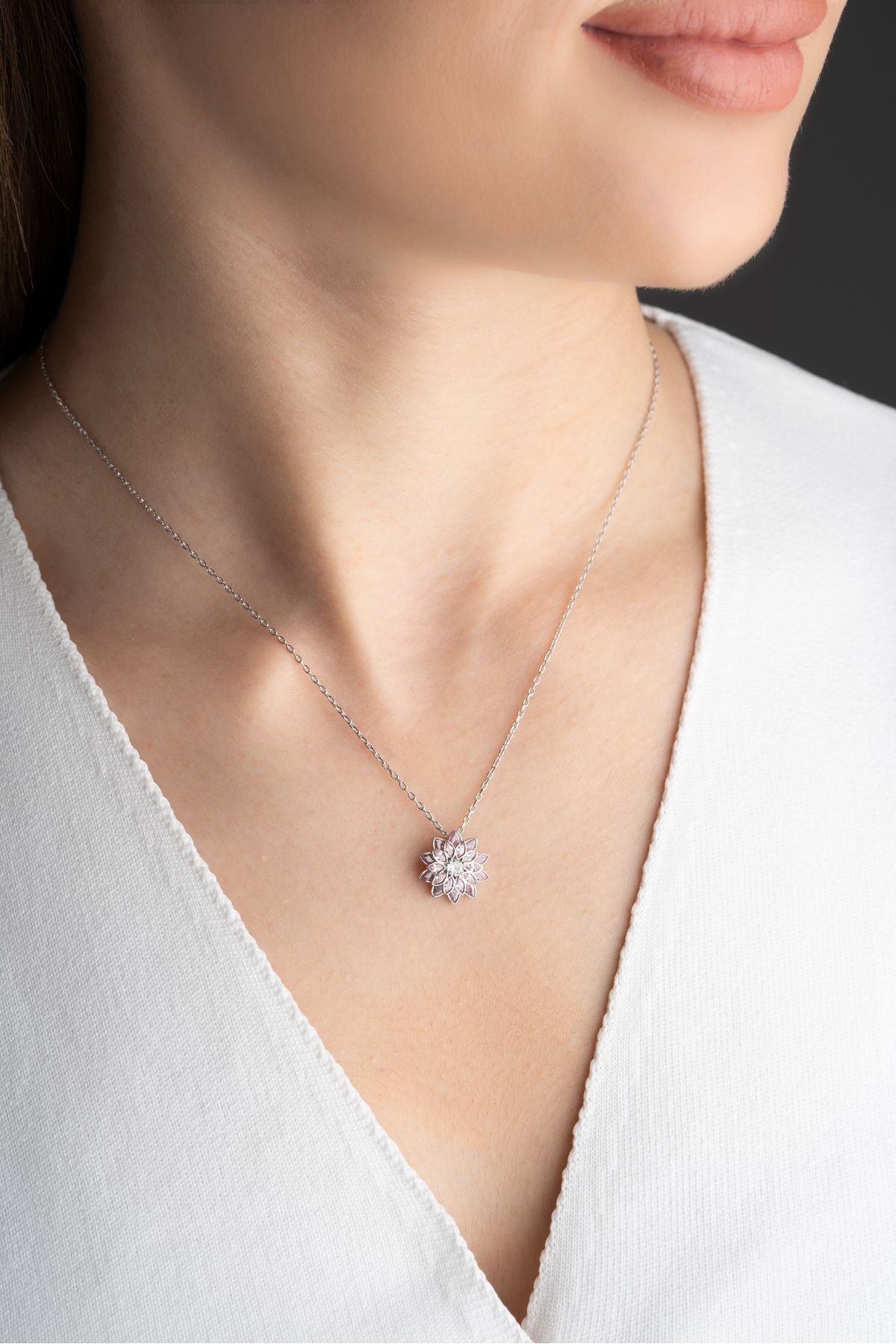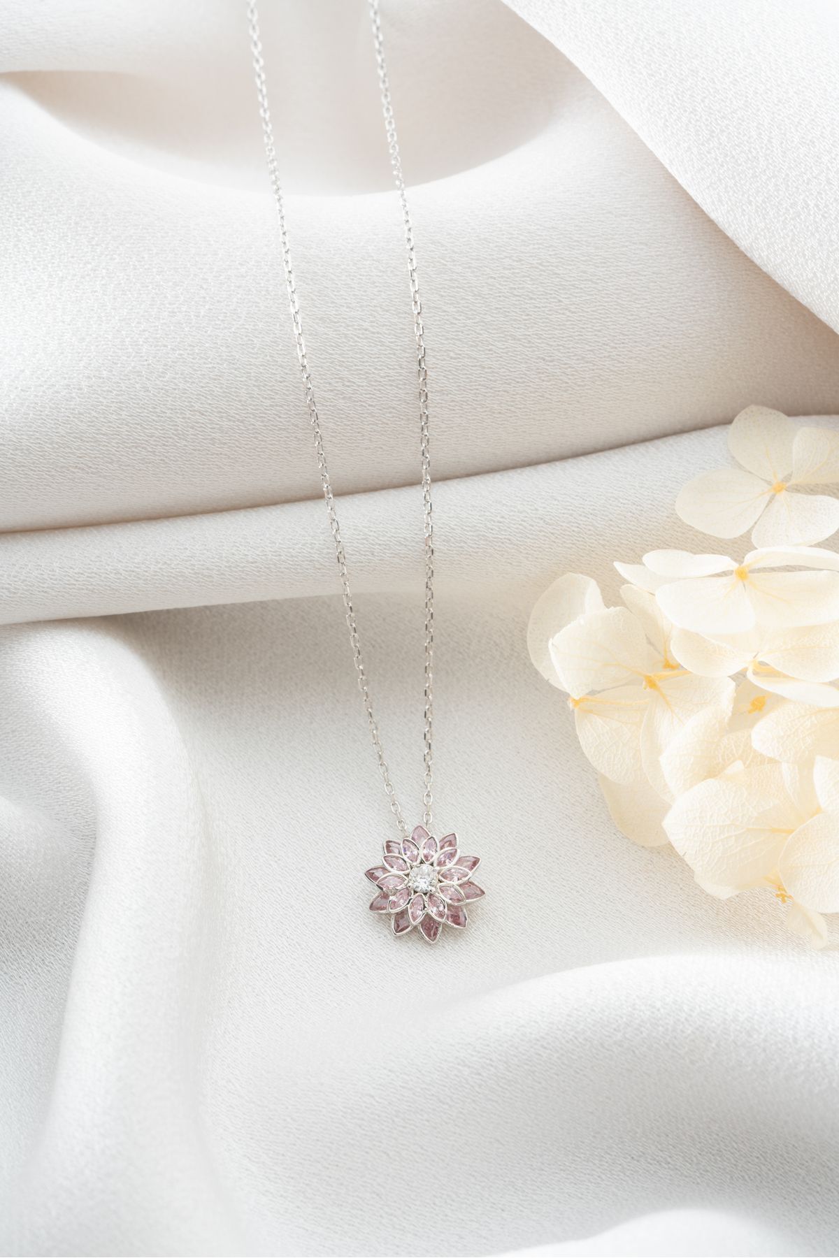 925 Ayar Gümüş Pembe Lotus Çiçeği Kolye