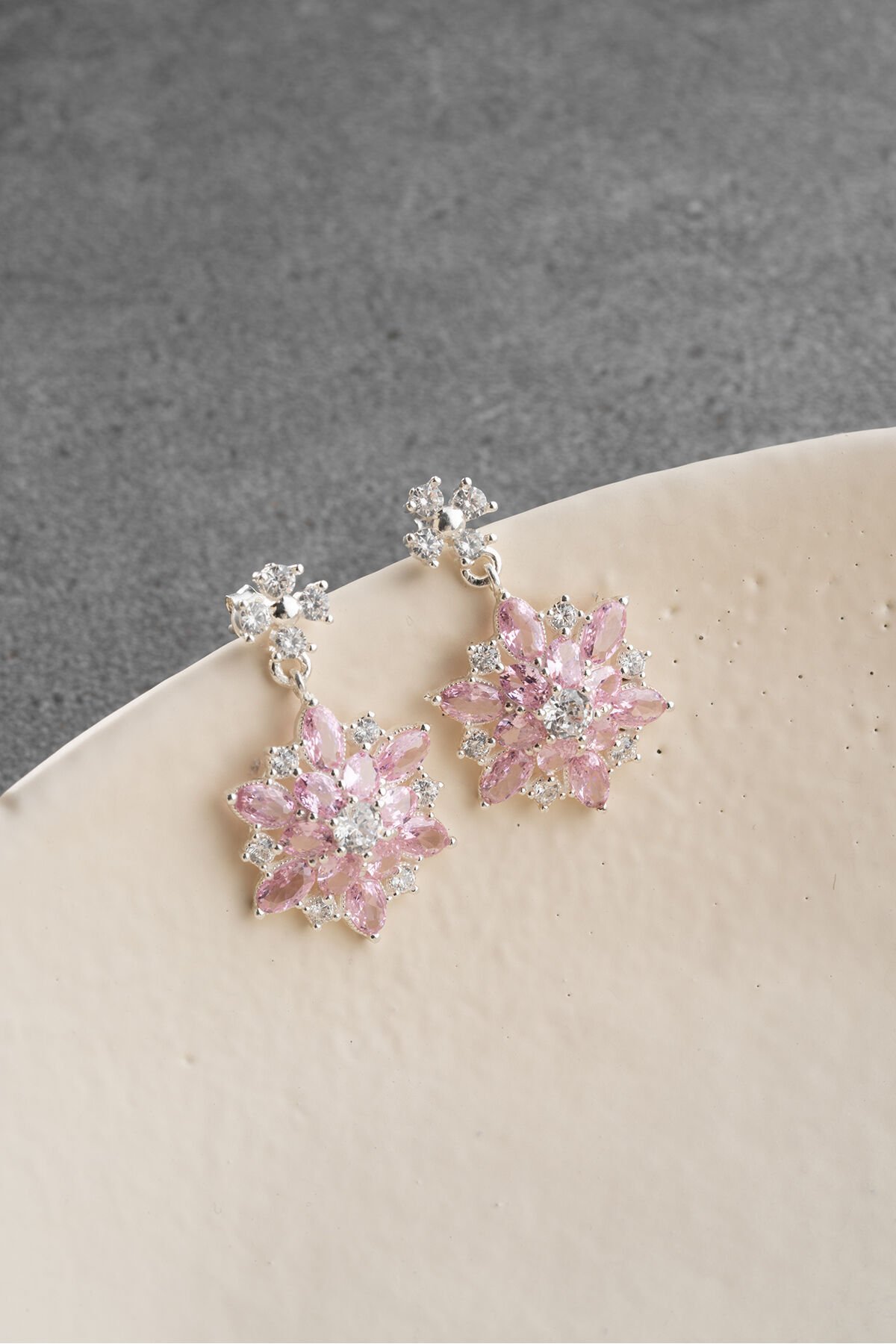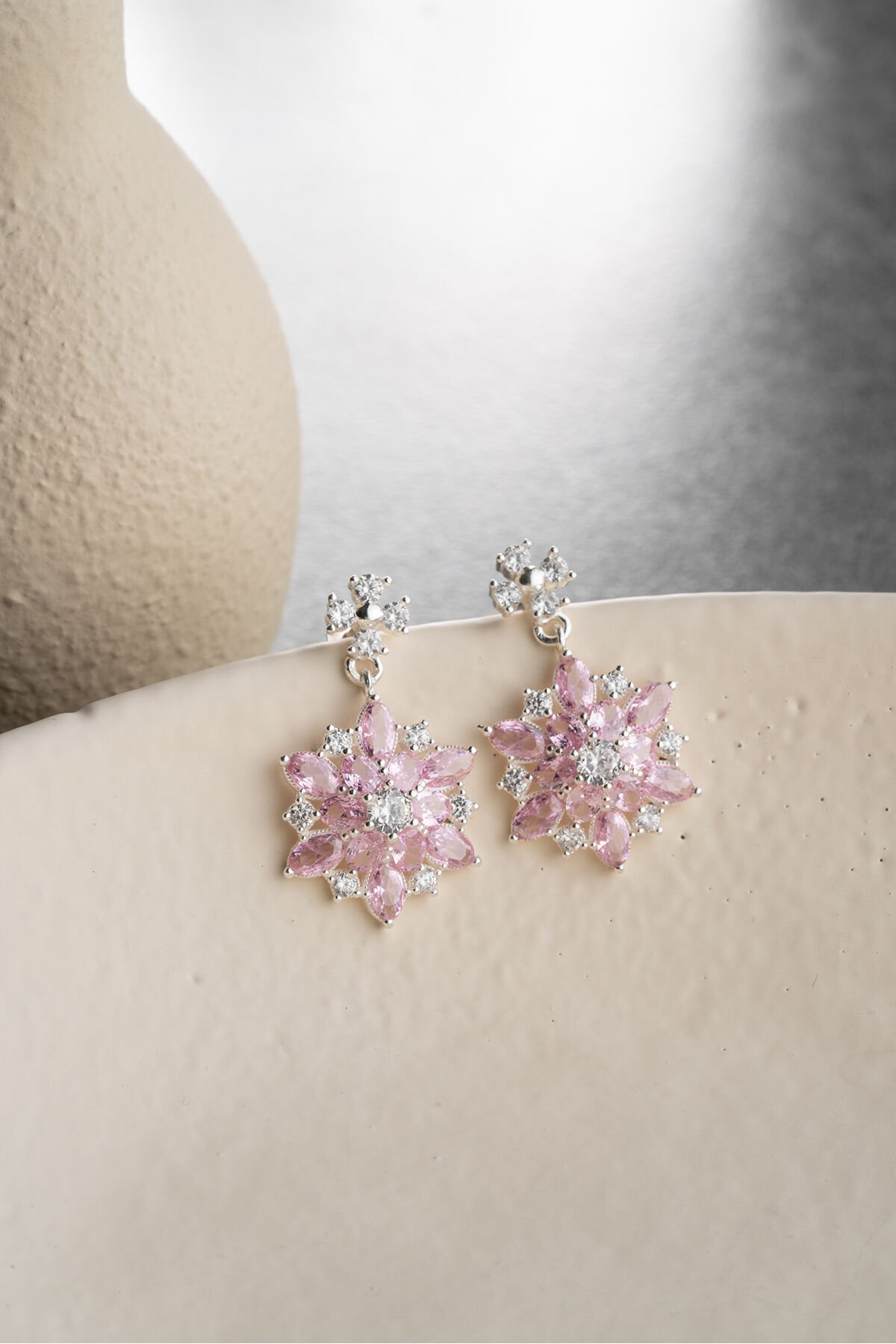 925 Ayar Gümüş Pembe Oval Taşlı Lotus Küpe