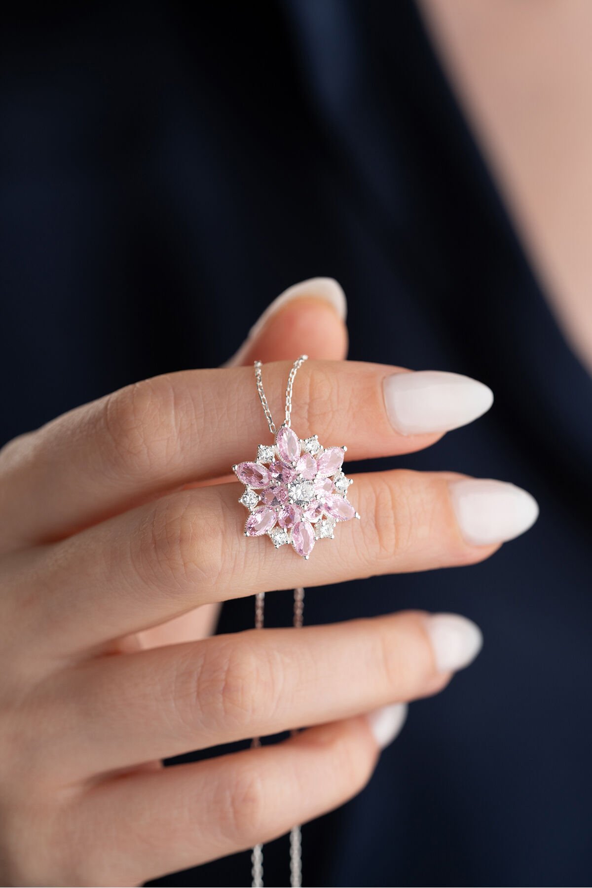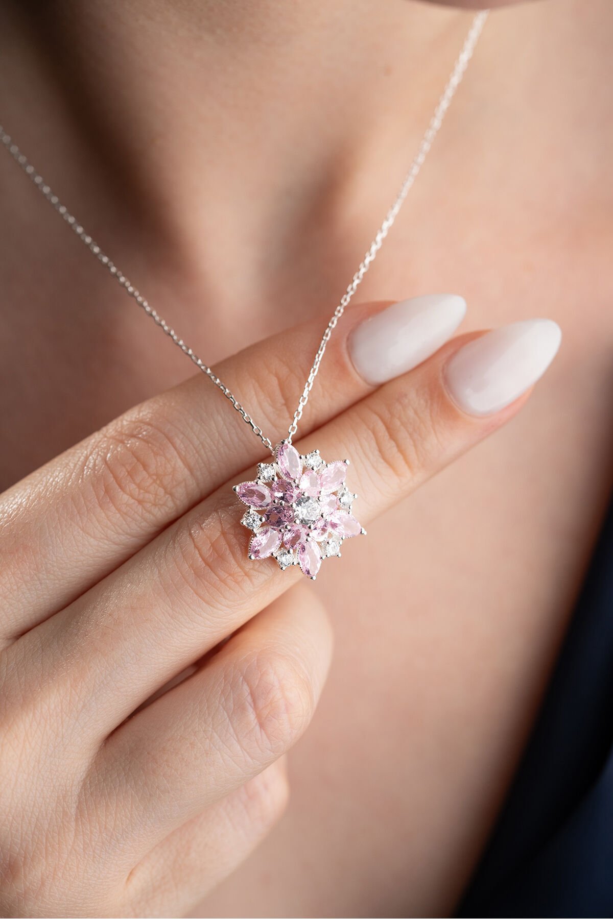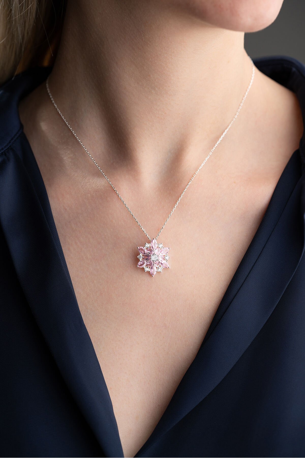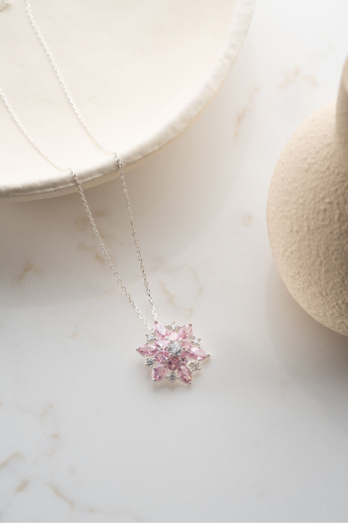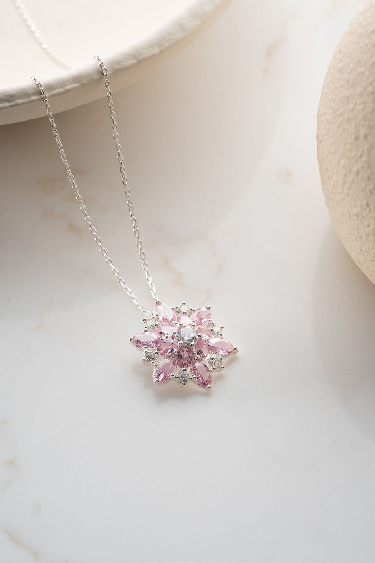925 Ayar Gümüş Pembe Oval Zirkon Taşlı Lotus