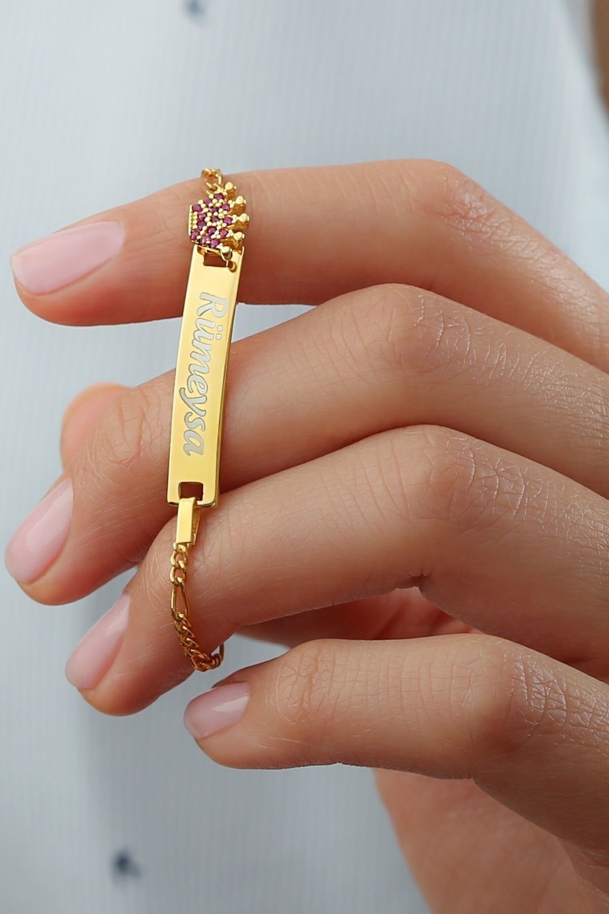 925 Ayar Gümüş Pembe Taçlı Isimli Çocuk Bileklik