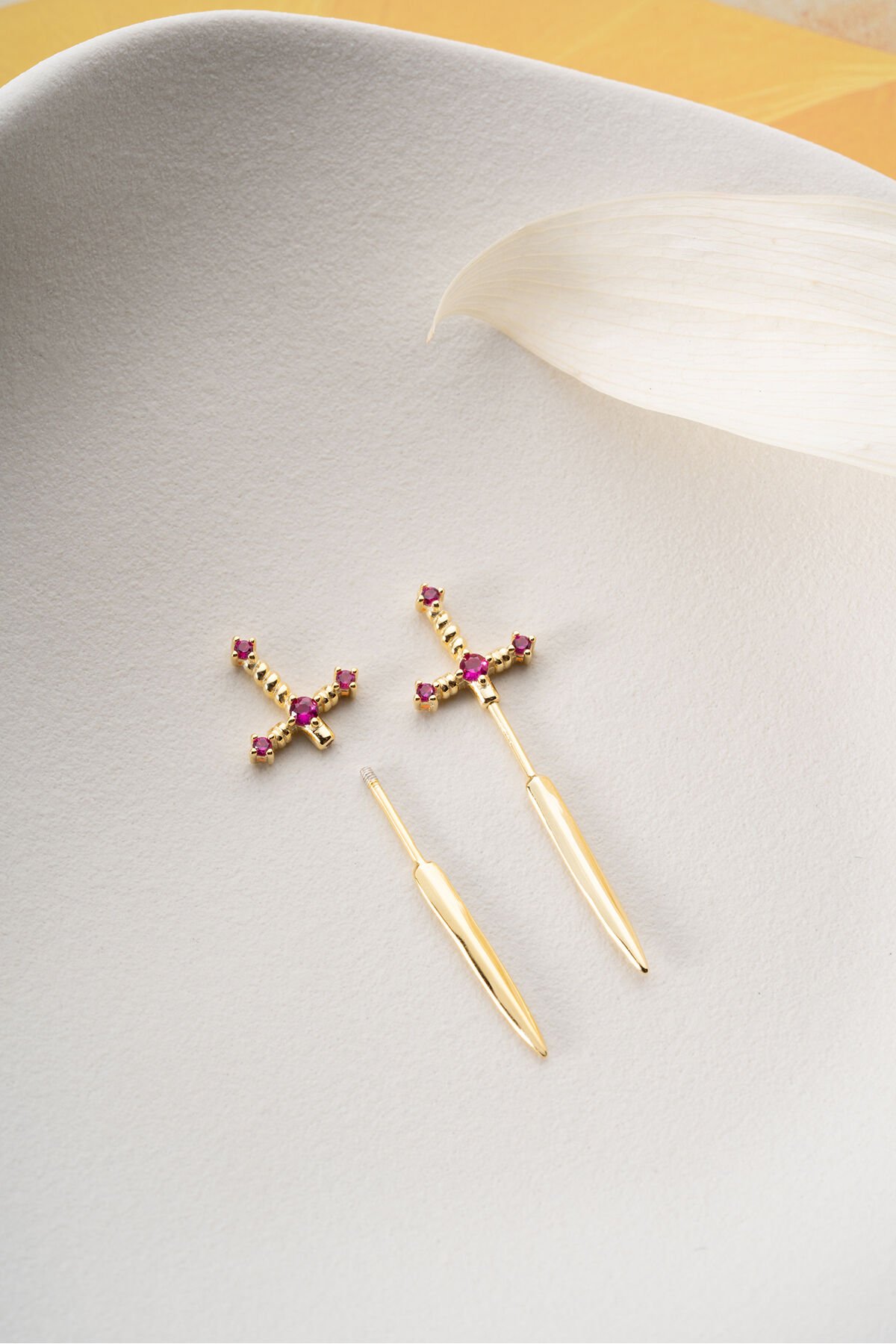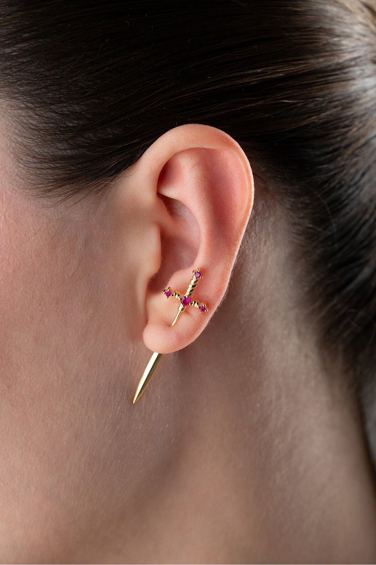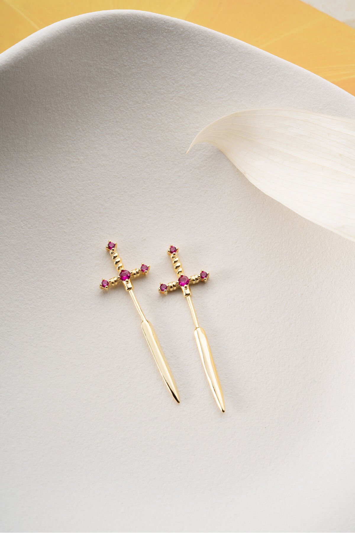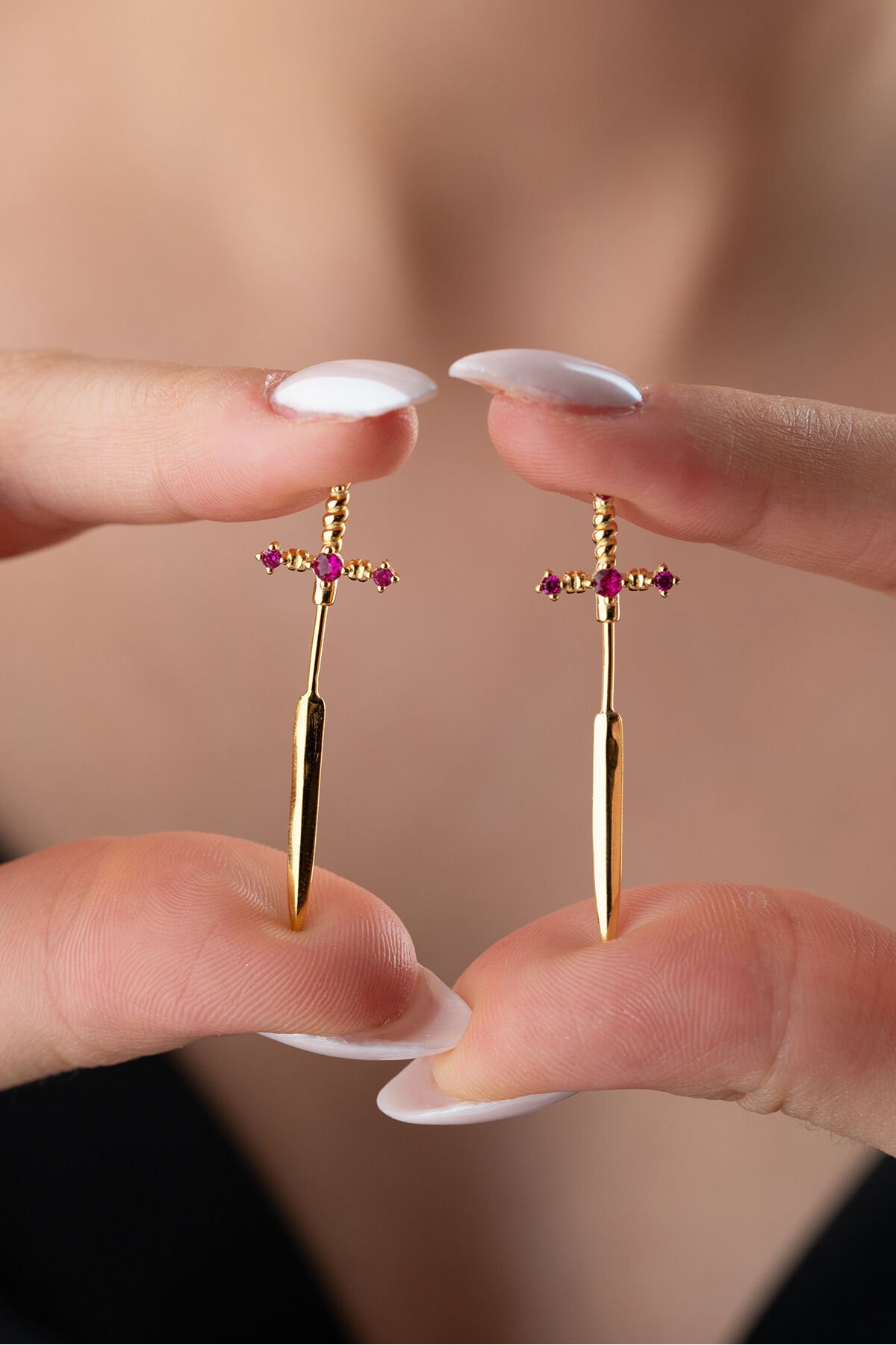 925 Ayar Gümüş Pembe Taşlı Kılıç Küpe
