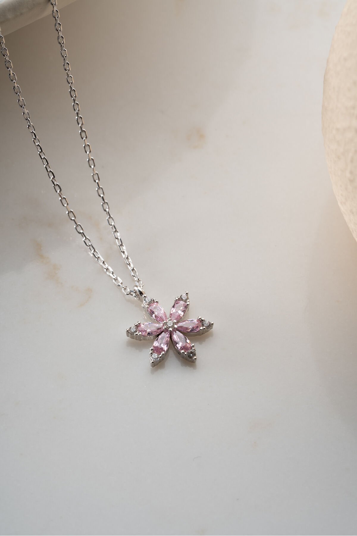 925 Ayar Gümüş Pembe Taşlı Lotus Kolye