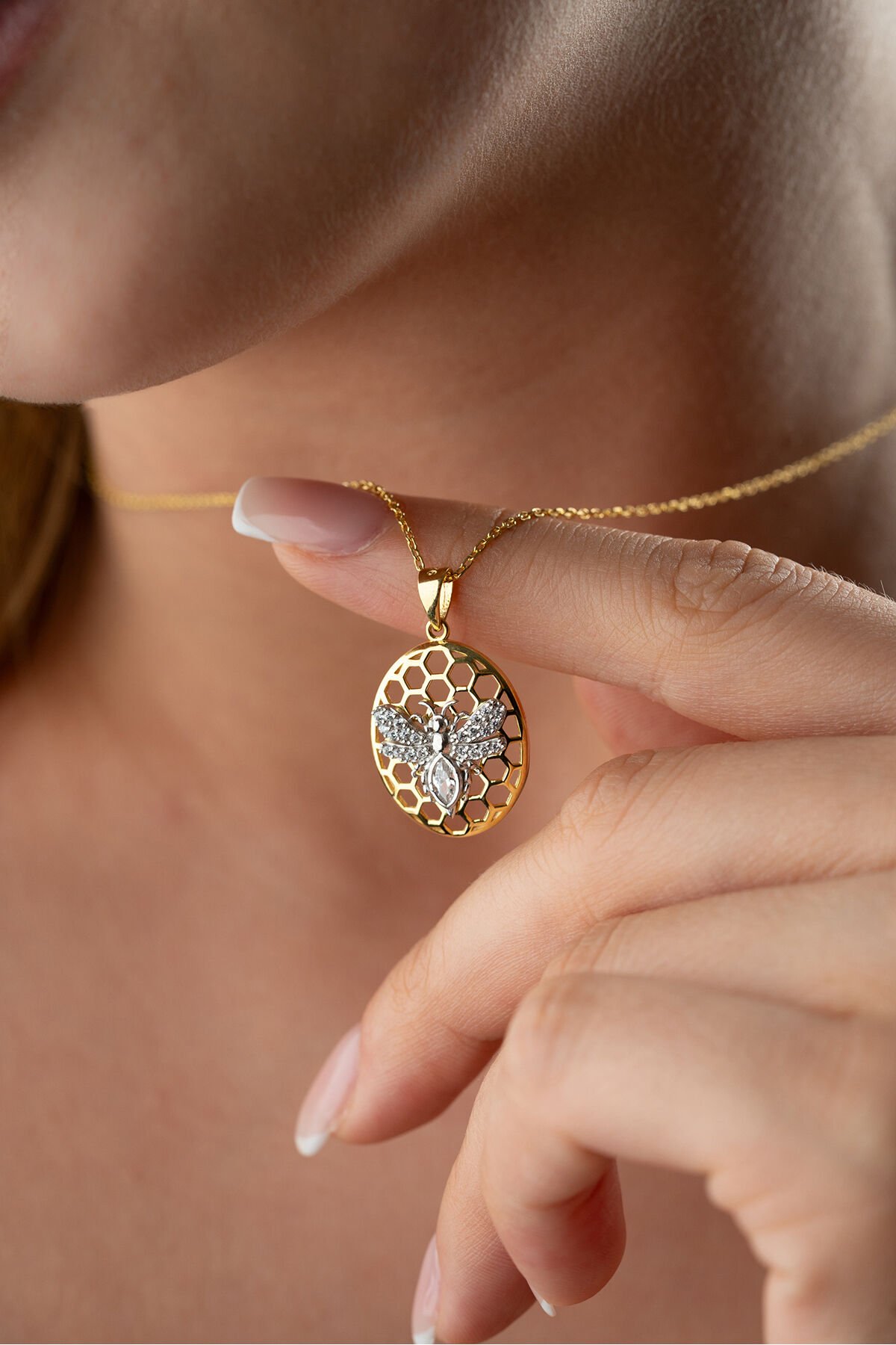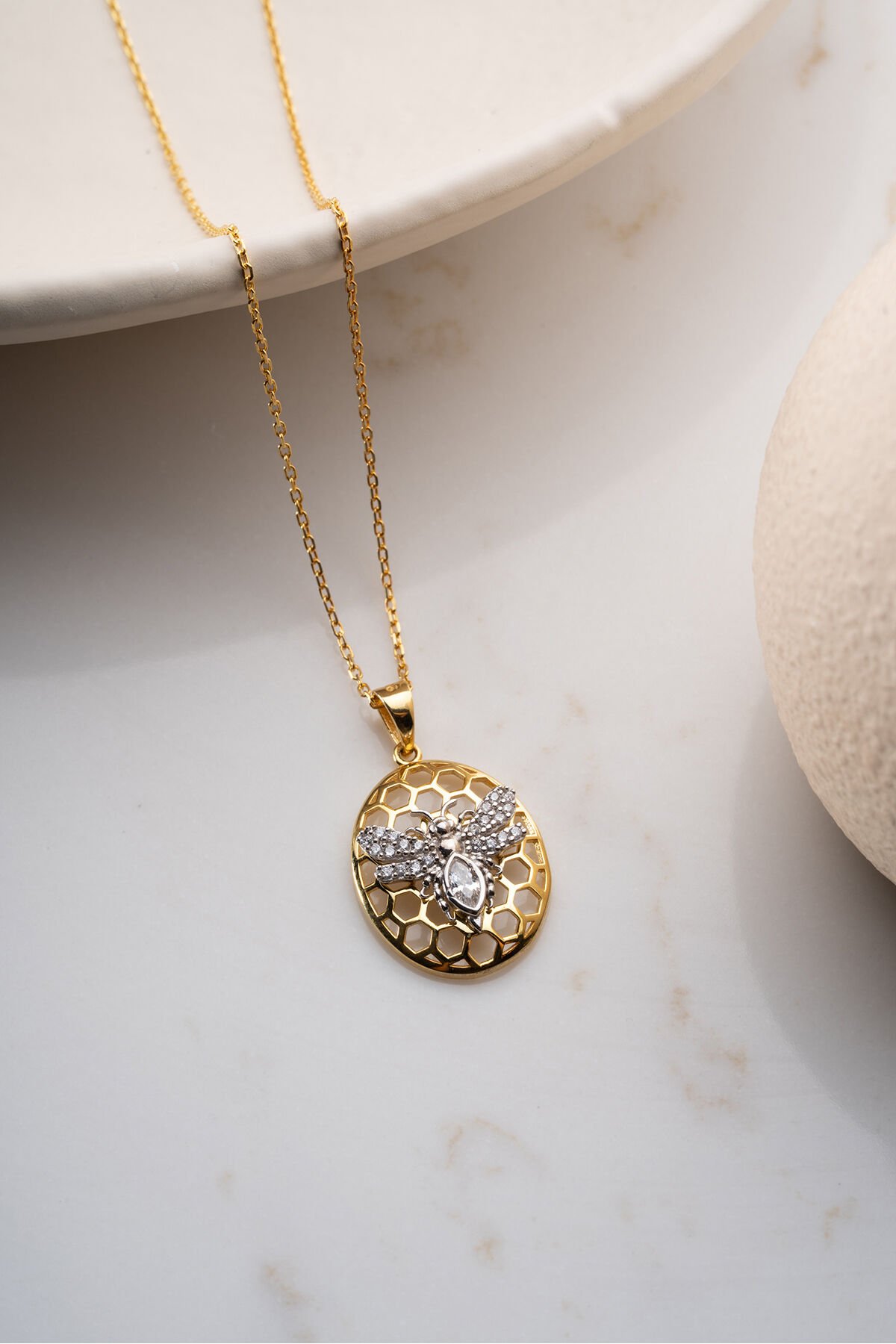925 Ayar Gümüş Petekli Arı Kolye