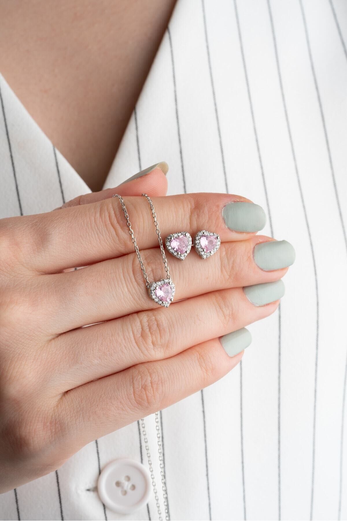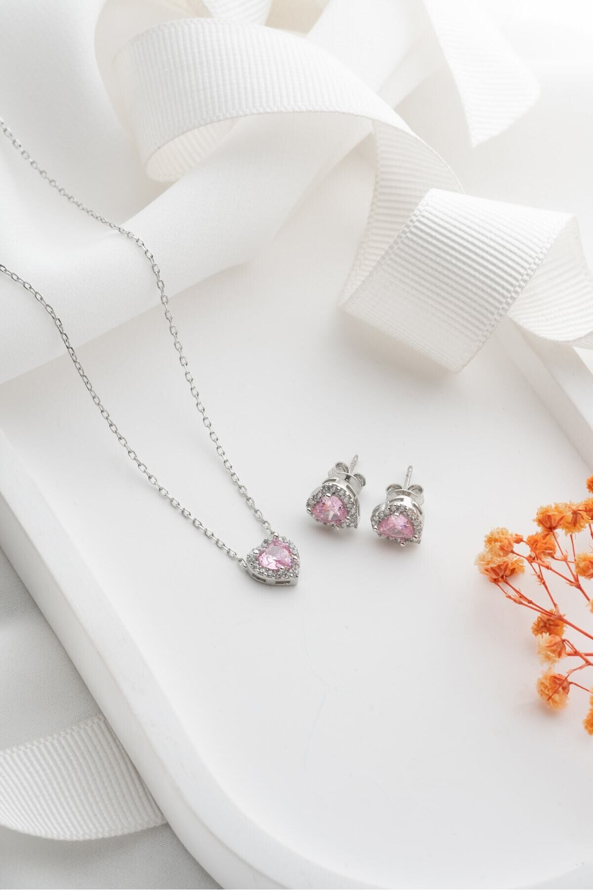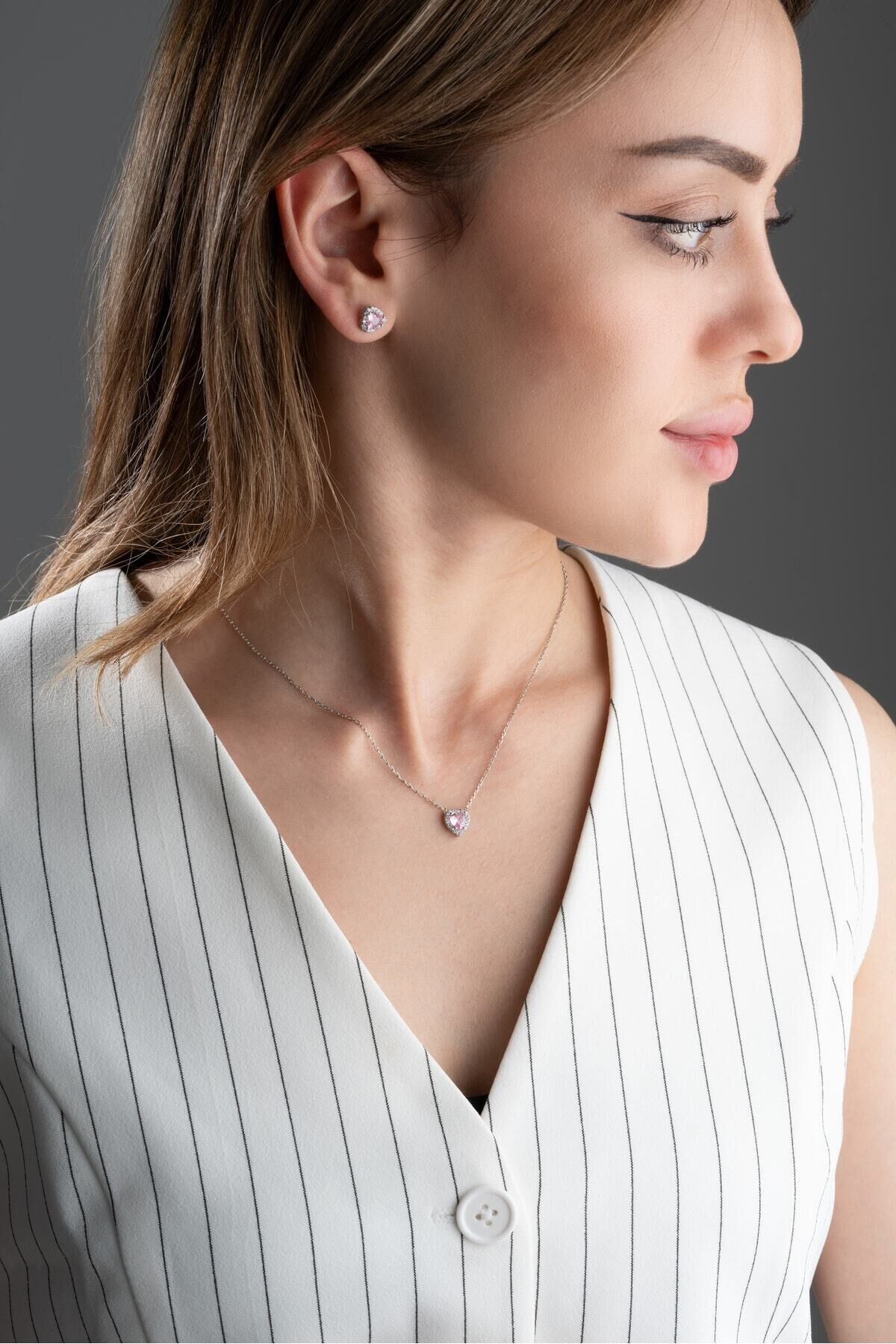 925 Ayar Gümüş Pırlanta Model Zirkon Taşlı Kolye Küpe Seti