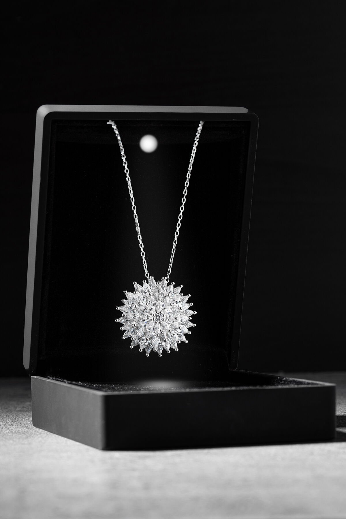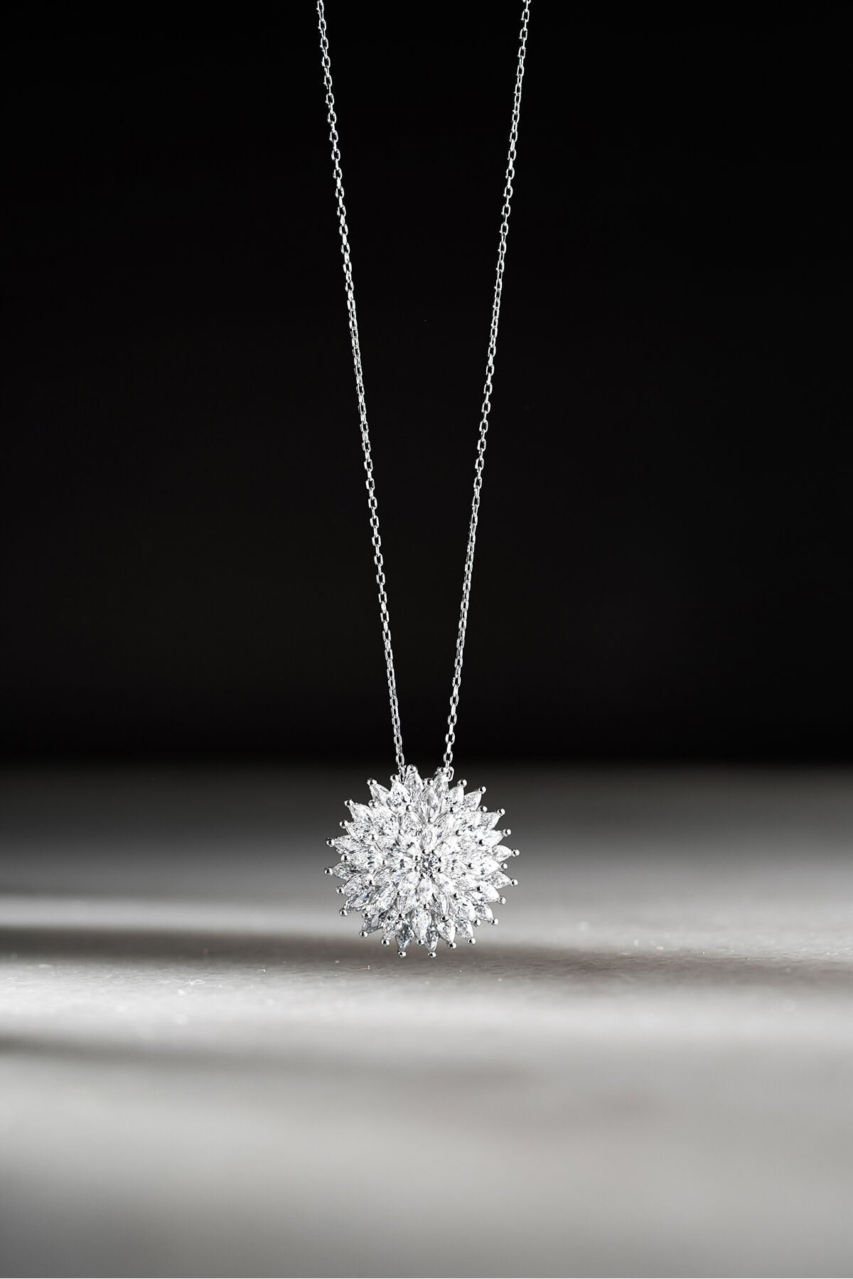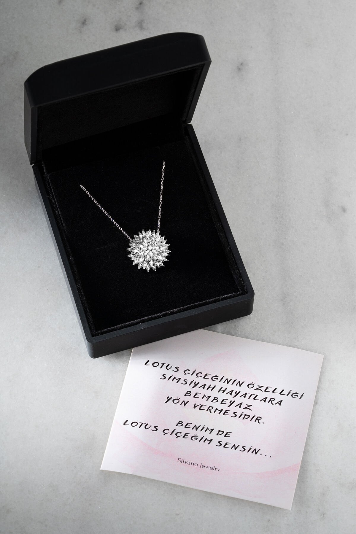 925 Ayar Gümüş Pırlanta Montür Lotus Çiçeği Kolye