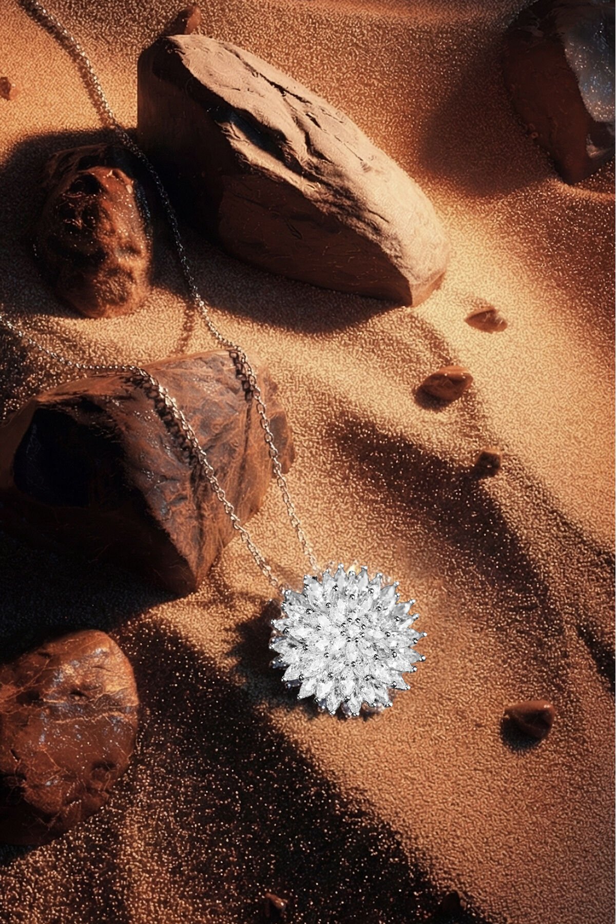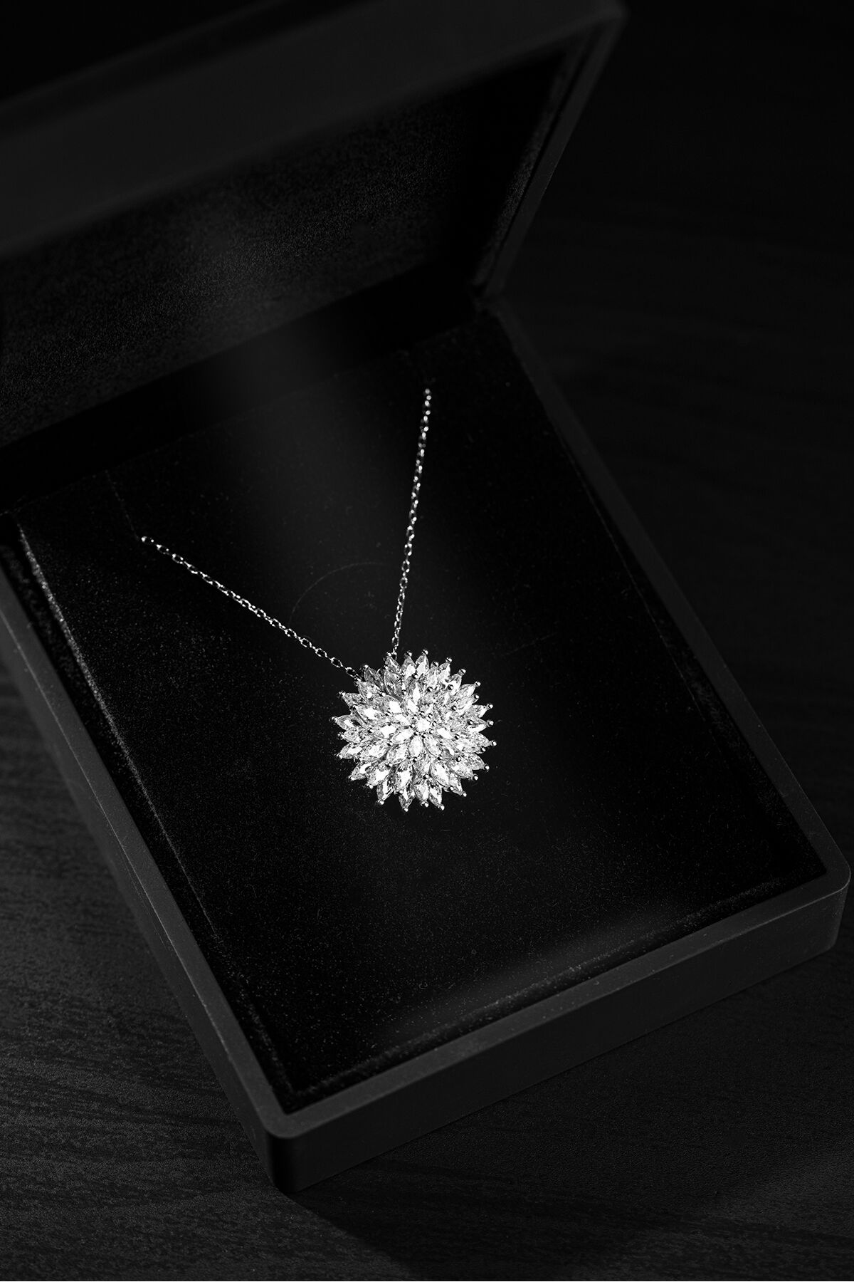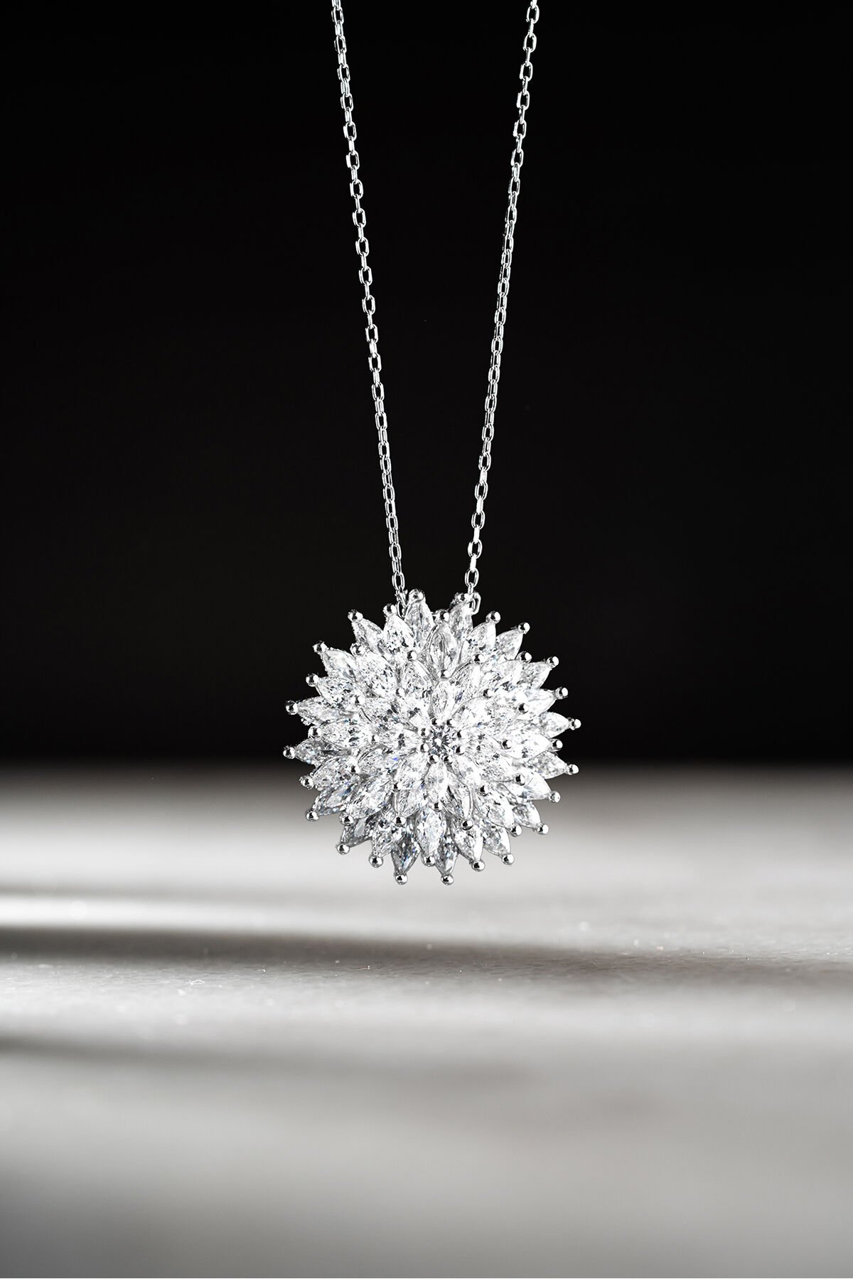 925 Ayar Gümüş Pırlanta Montür Lotus Çiçeği Kolye