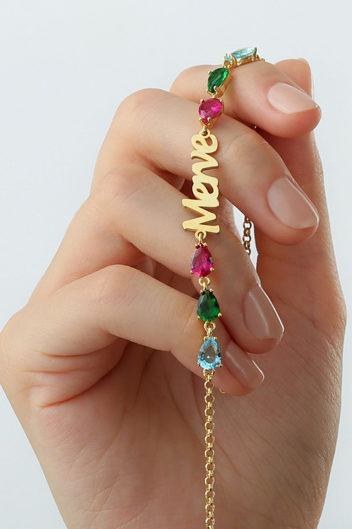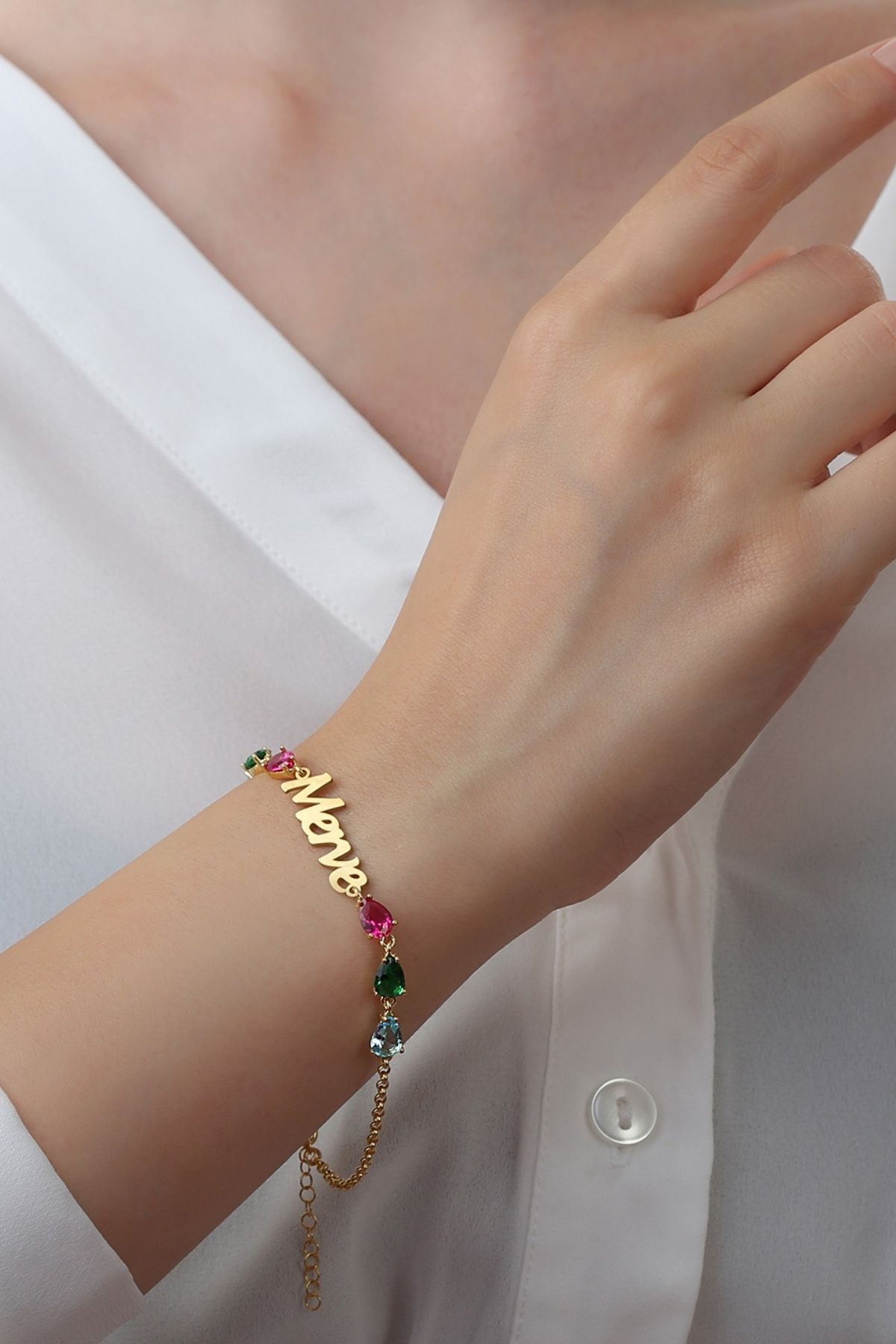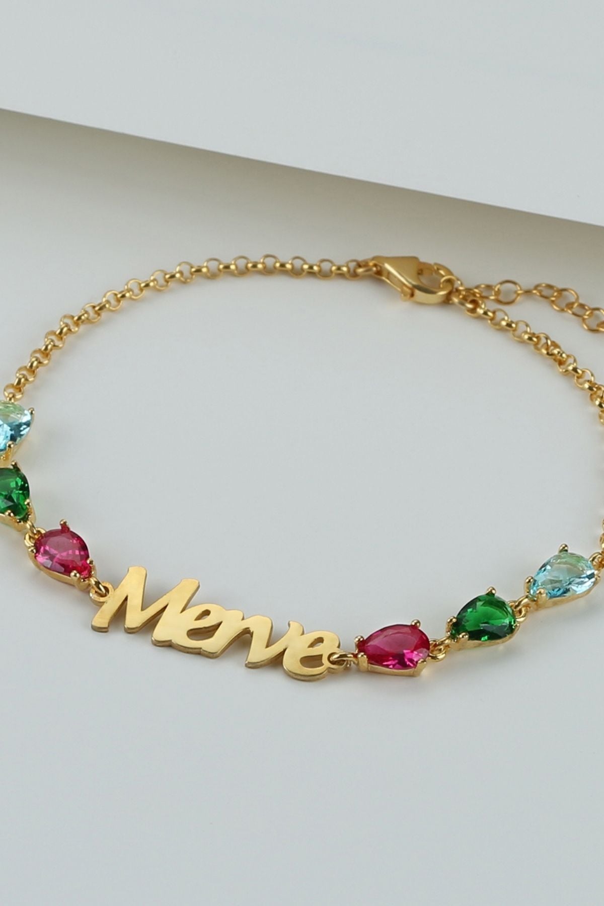 925 Ayar Gümüş Rengarek Taş Detaylı Isimli Bileklik