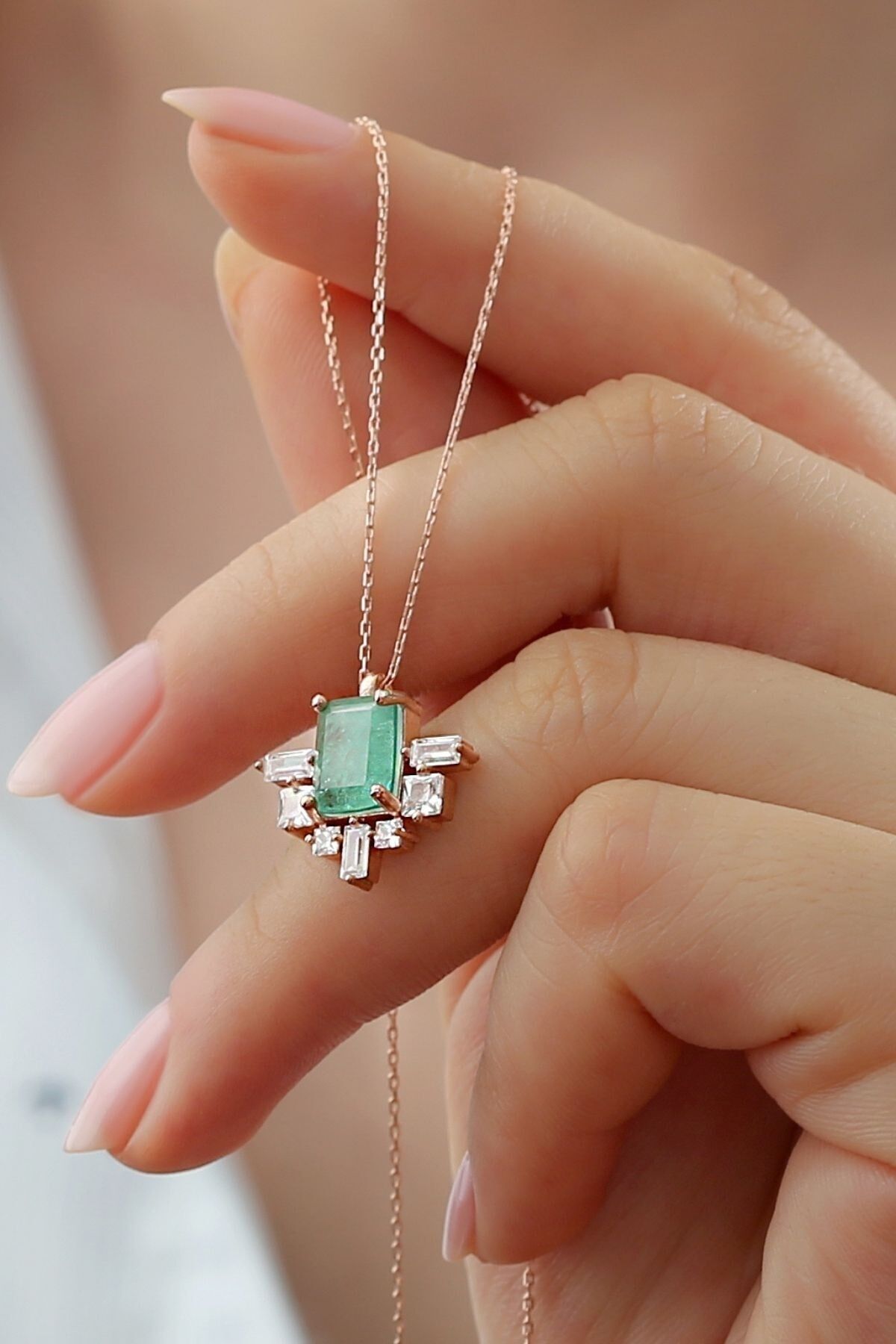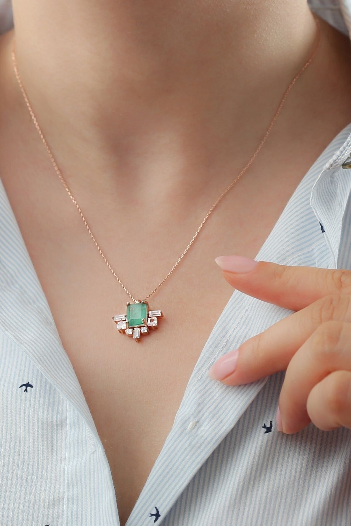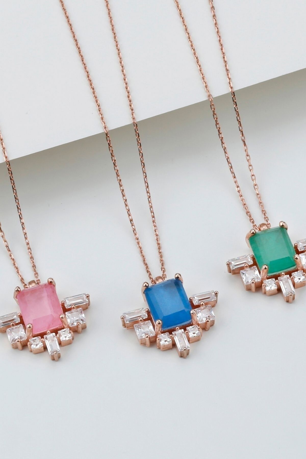 925 Ayar Gümüş Renkli Baget Taşlı Kolye