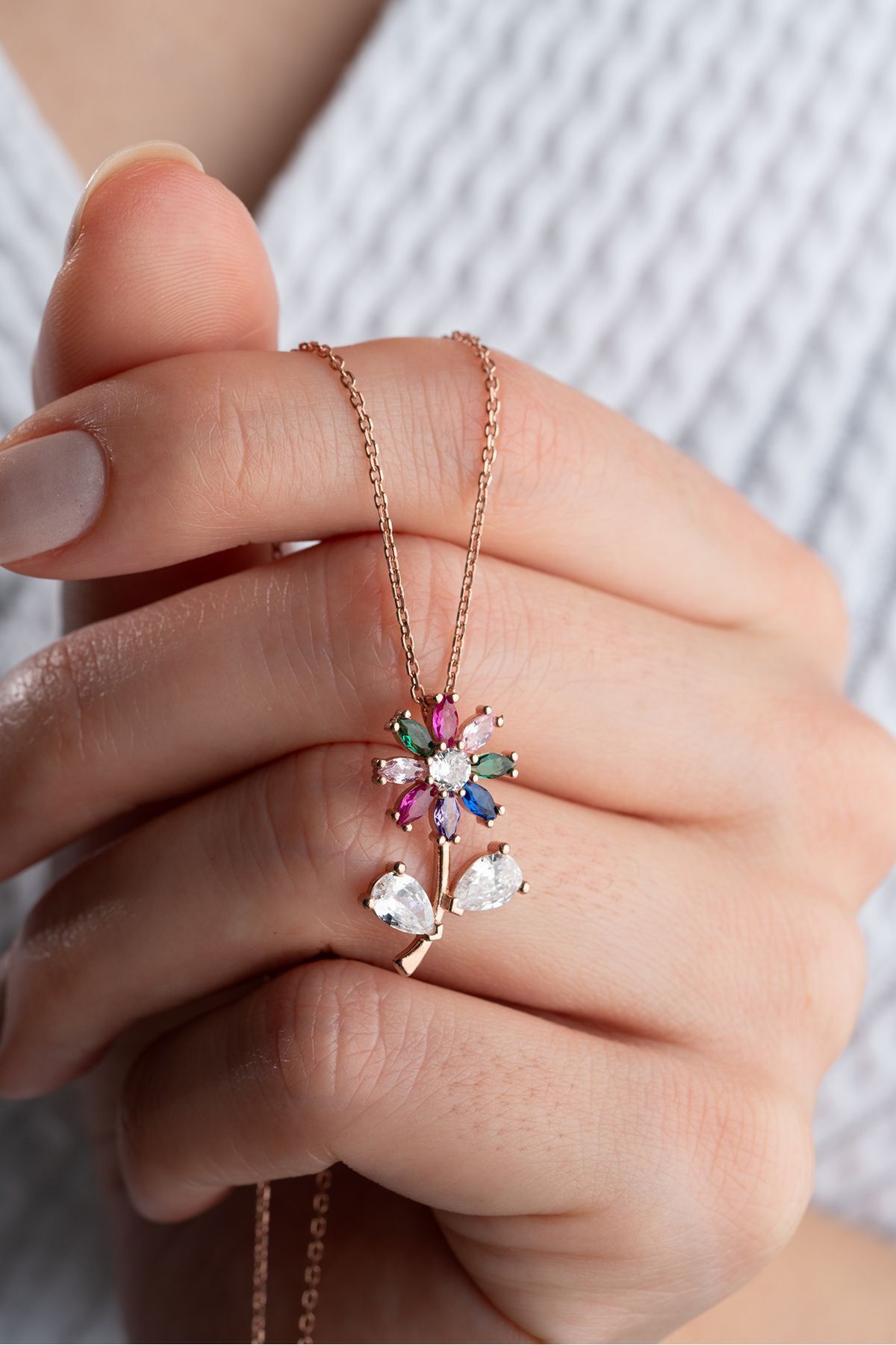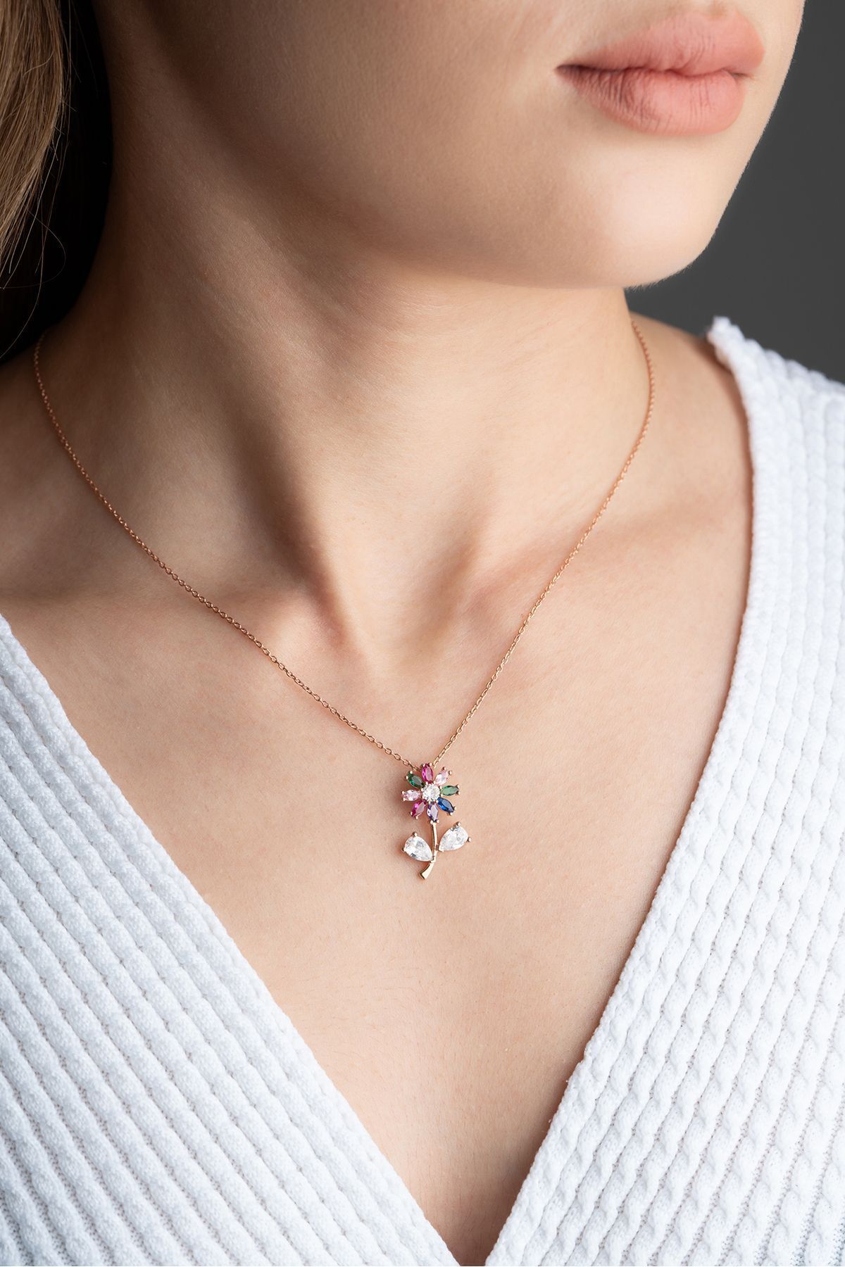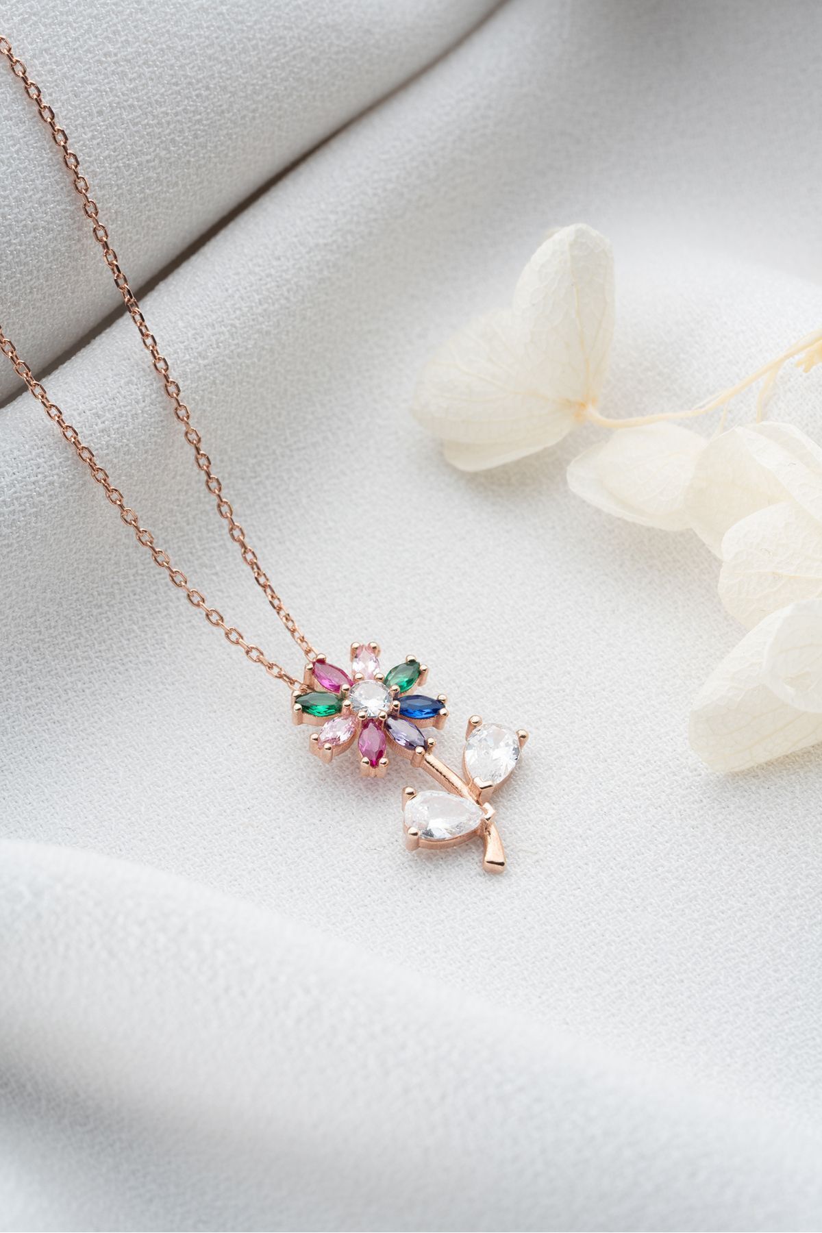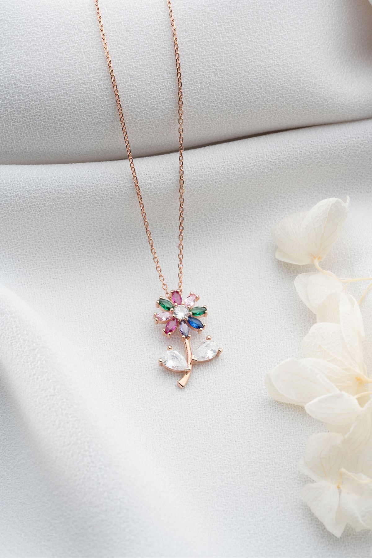 925 Ayar Gümüş Renkli Çiçek Kolye