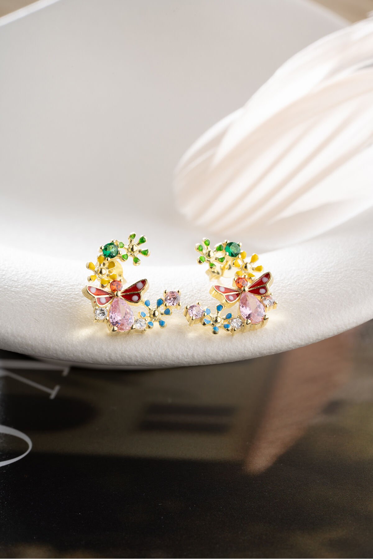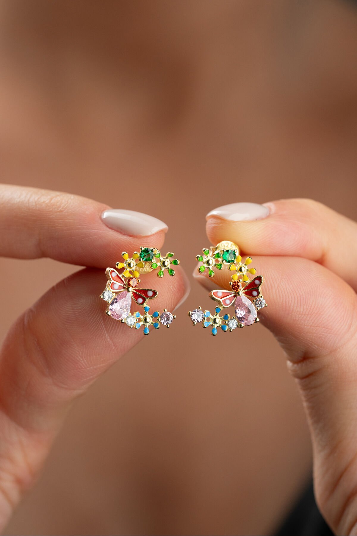 925 Ayar Gümüş Renkli Çivili Mineli Küpe